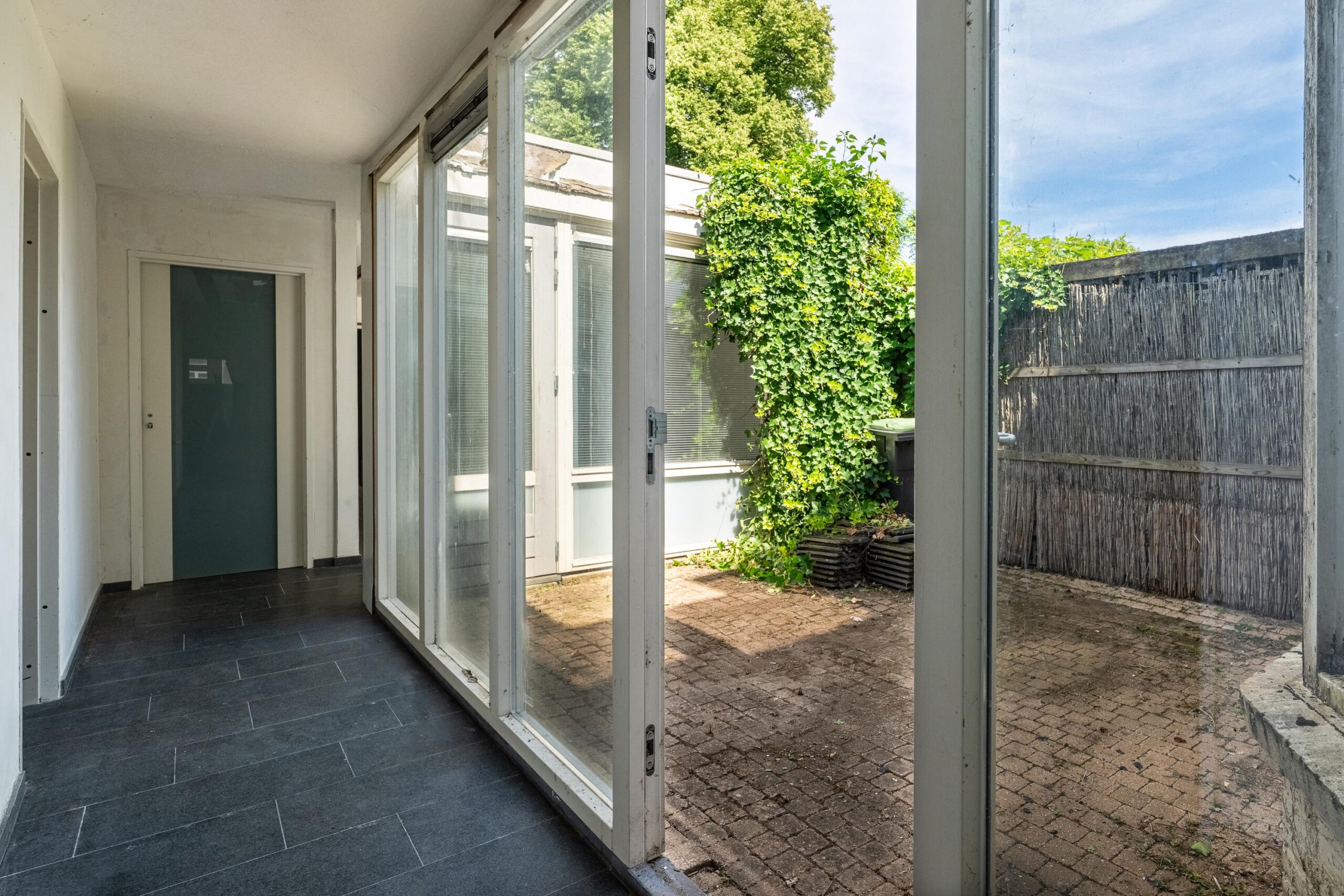 Via de verdeelhal – met een karakteristieke lichtstraat – bereikt u de eerste besloten patio. Hieraan grenzen onder meer een bijkeuken met witgoedaansluiting, een separaat tweede toilet en een aparte cv-ruimte.