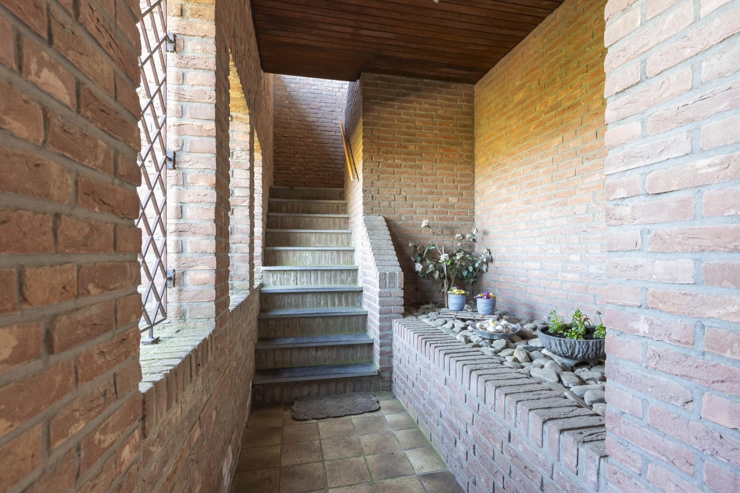 Op souterrain-niveau gelegen ruime oprit met toegang tot de overdekte entree met trapopgang naar het bordes met toegang tot de woning.