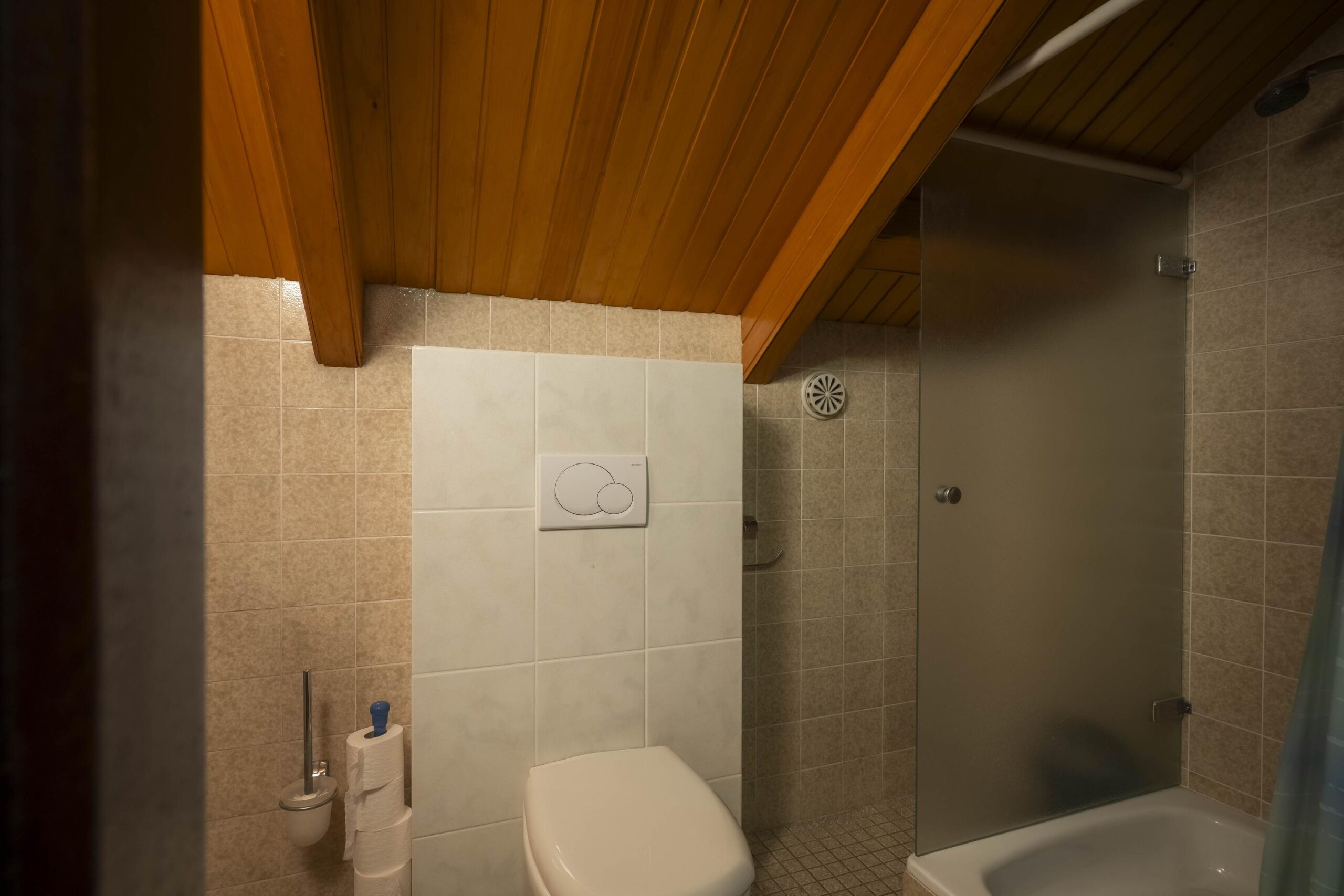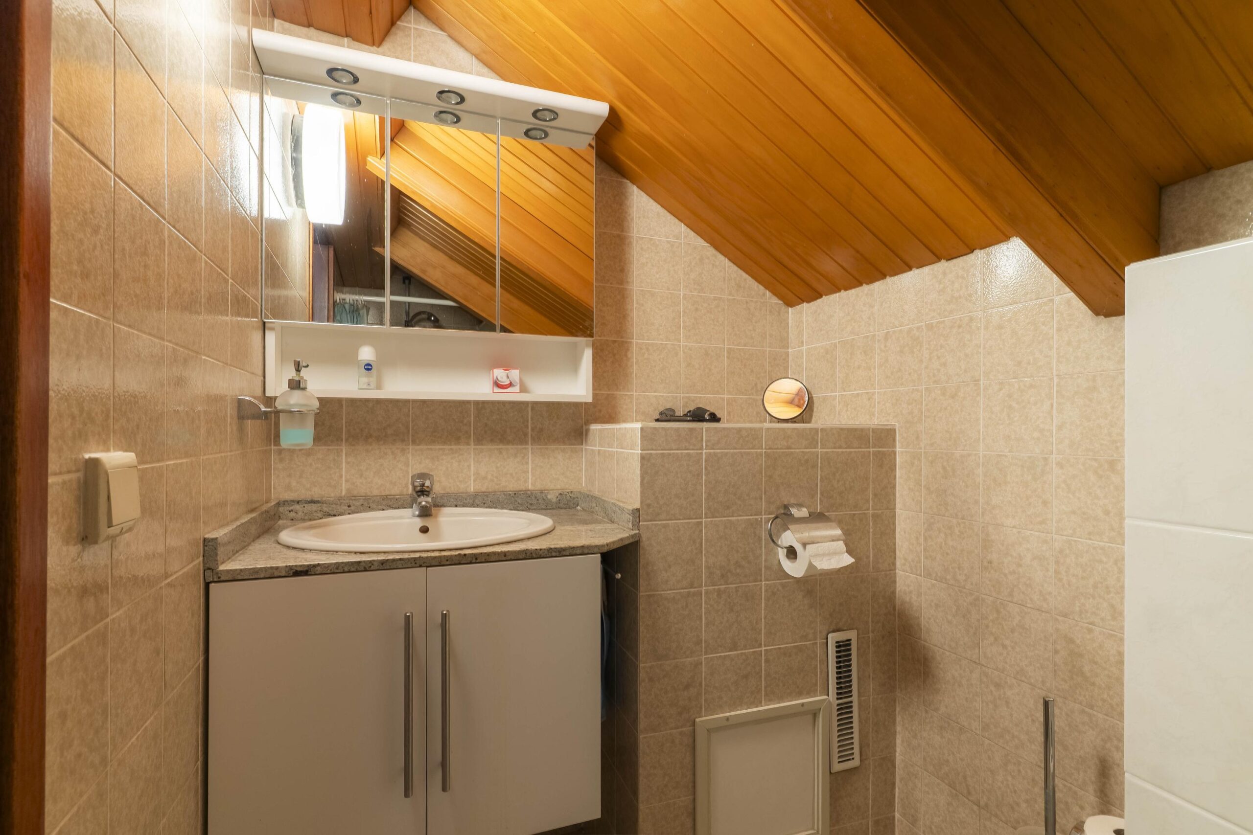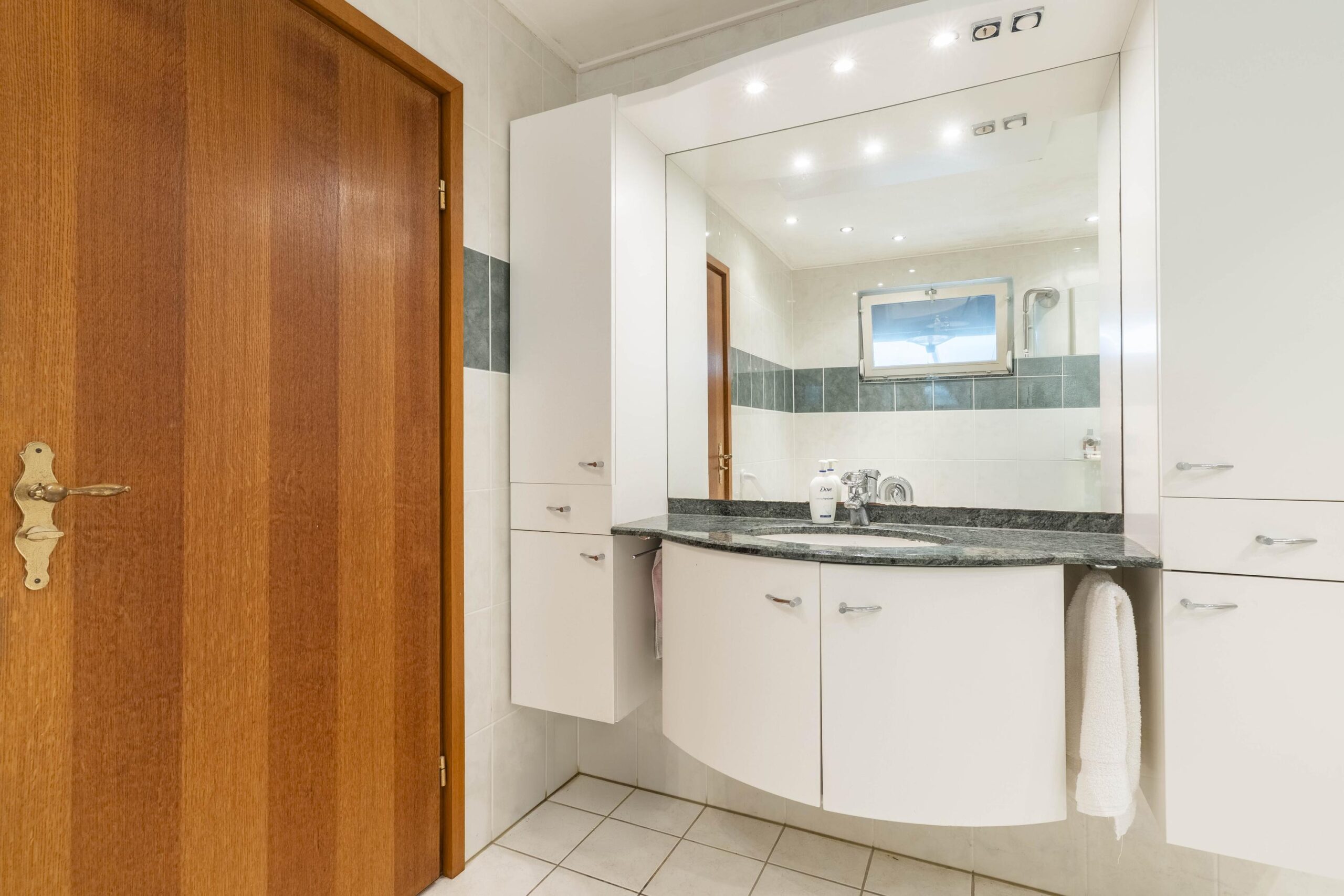 De badkamer is groot ca. 4,5 m² en is voorzien van een douche, wastafel en zwevend toilet.