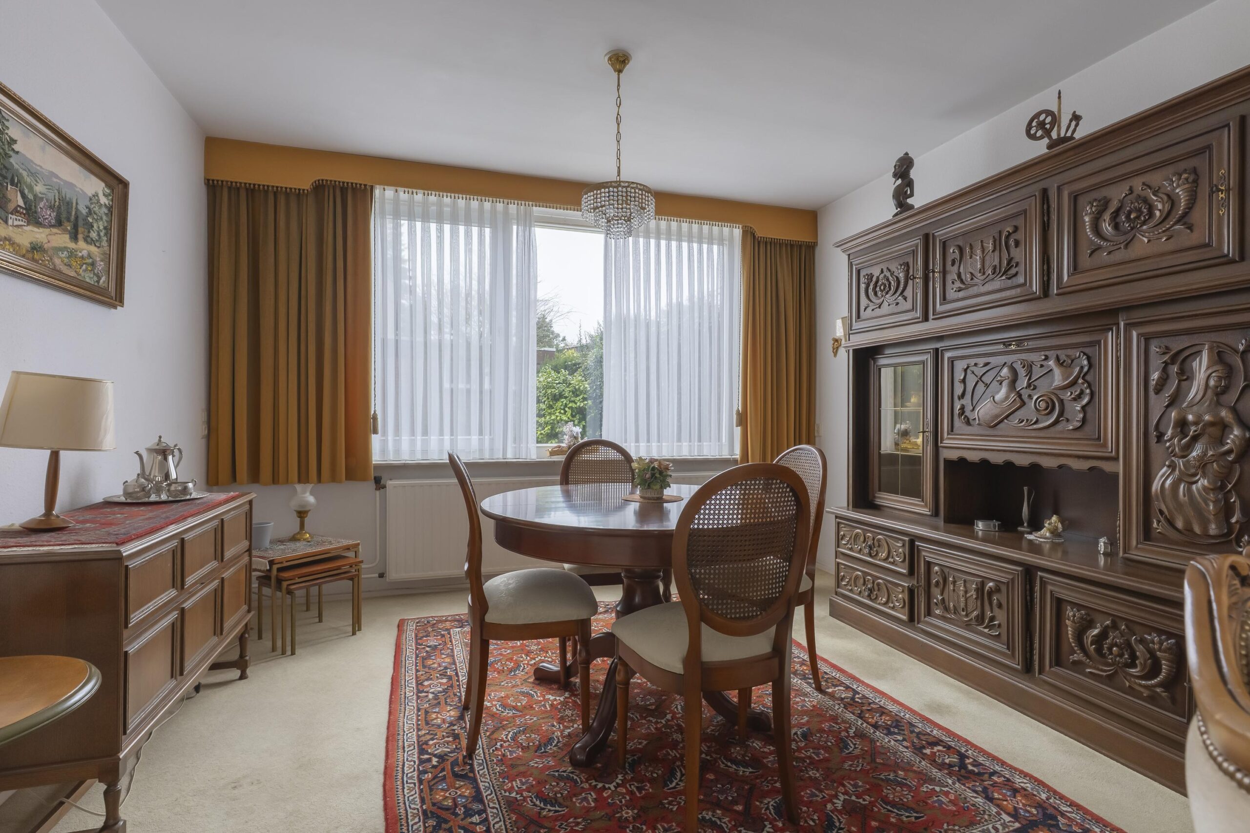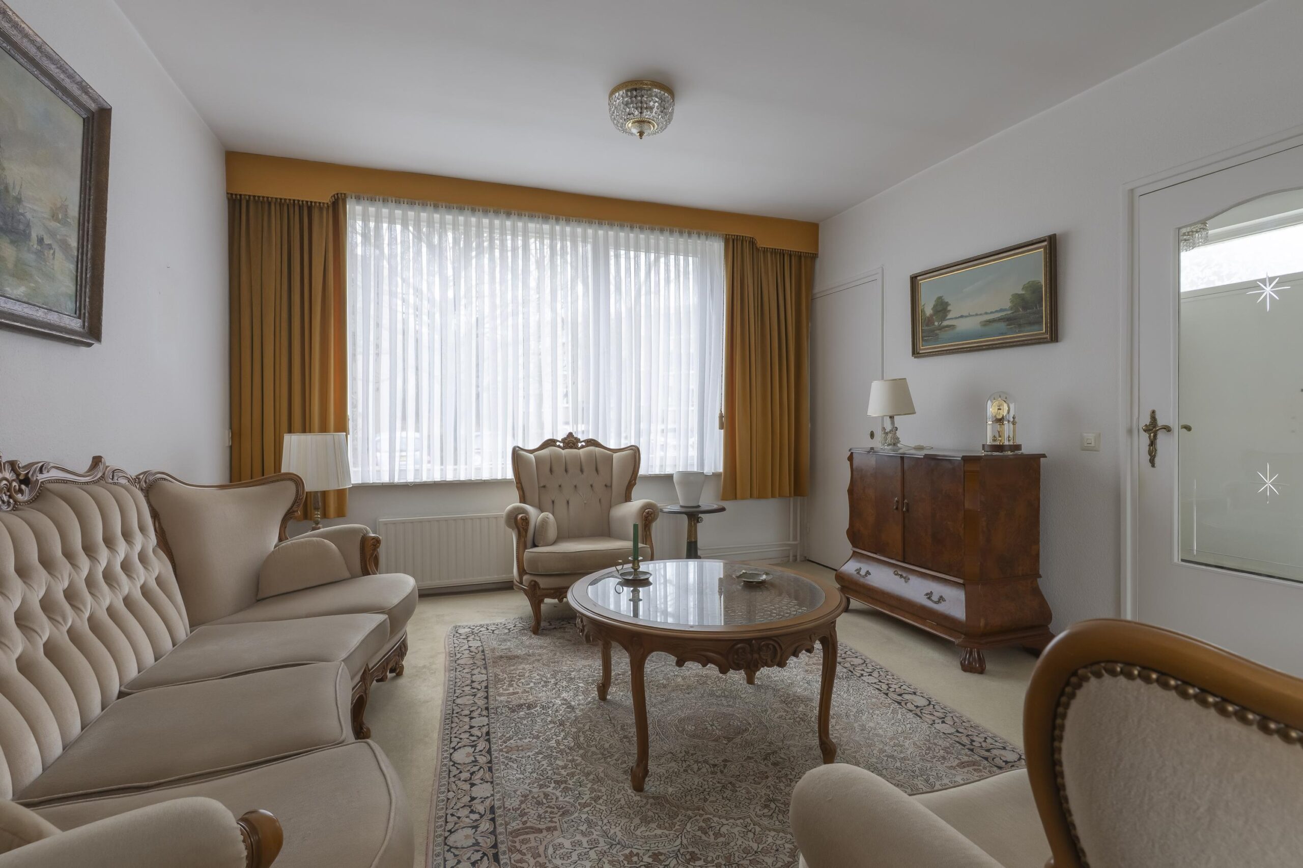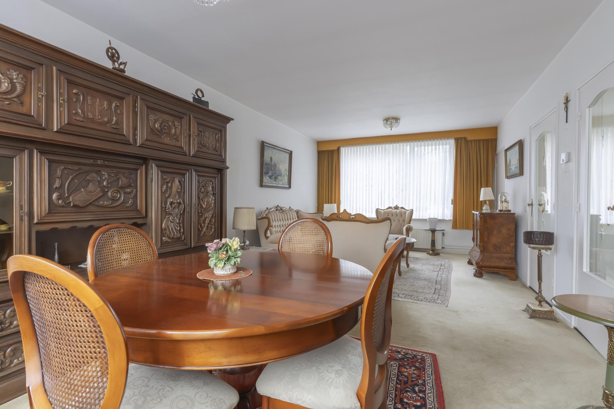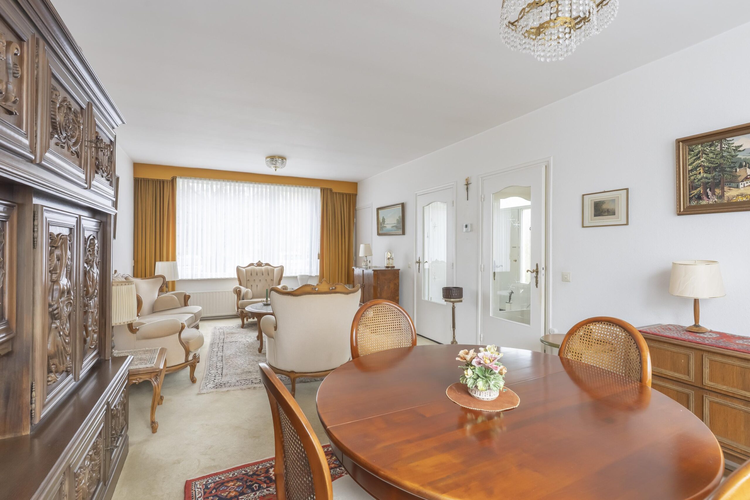 De doorzon woonkamer met grote raampartijen is groot ca. 30 m² en is voorzien van vloerbedekking.