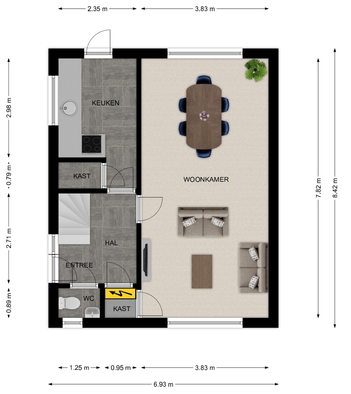 Tevens is er in de keuken een ruime trapkast aanwezig.
