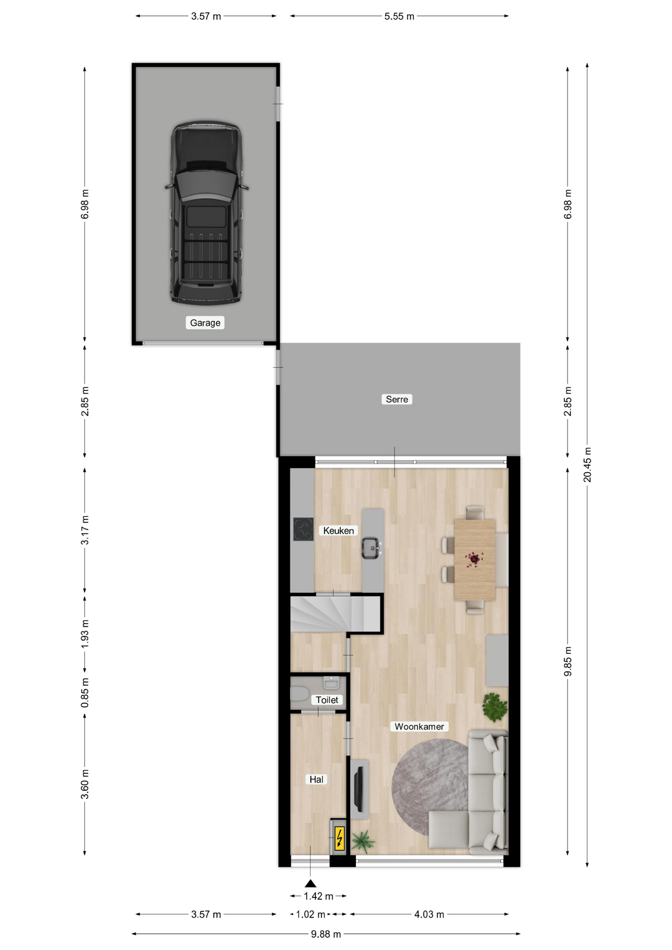 – Oprit en garage geschikt voor het plaatsen van 3 auto’s;