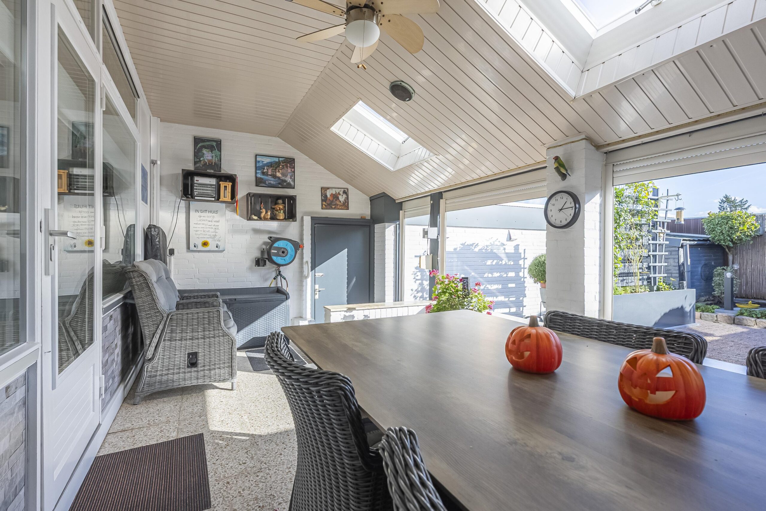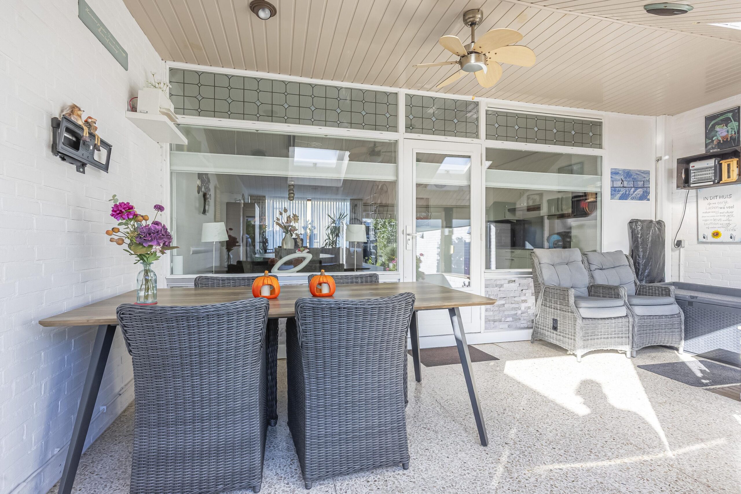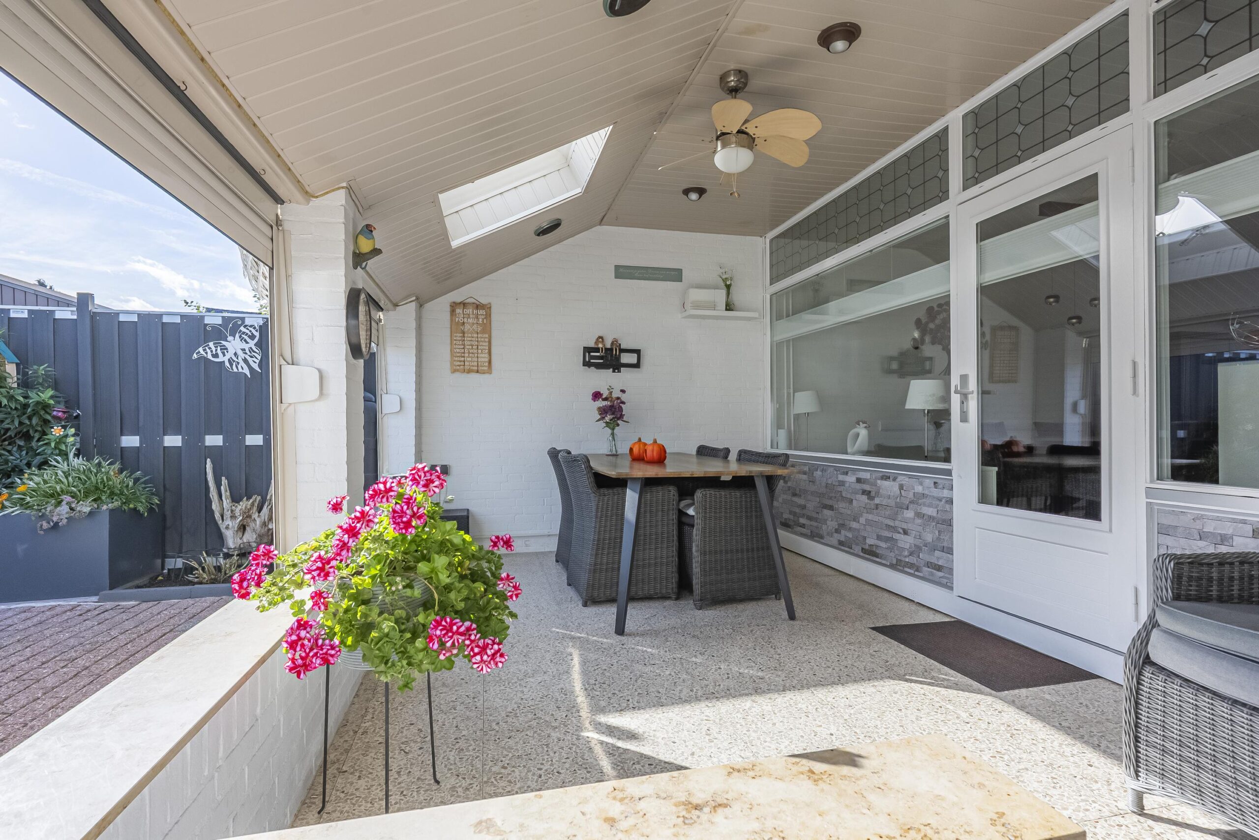 Via de woonkamer bereikt u de royale overkapping waar u ook bij minder mooi weer heerlijk kunt vertoeven.