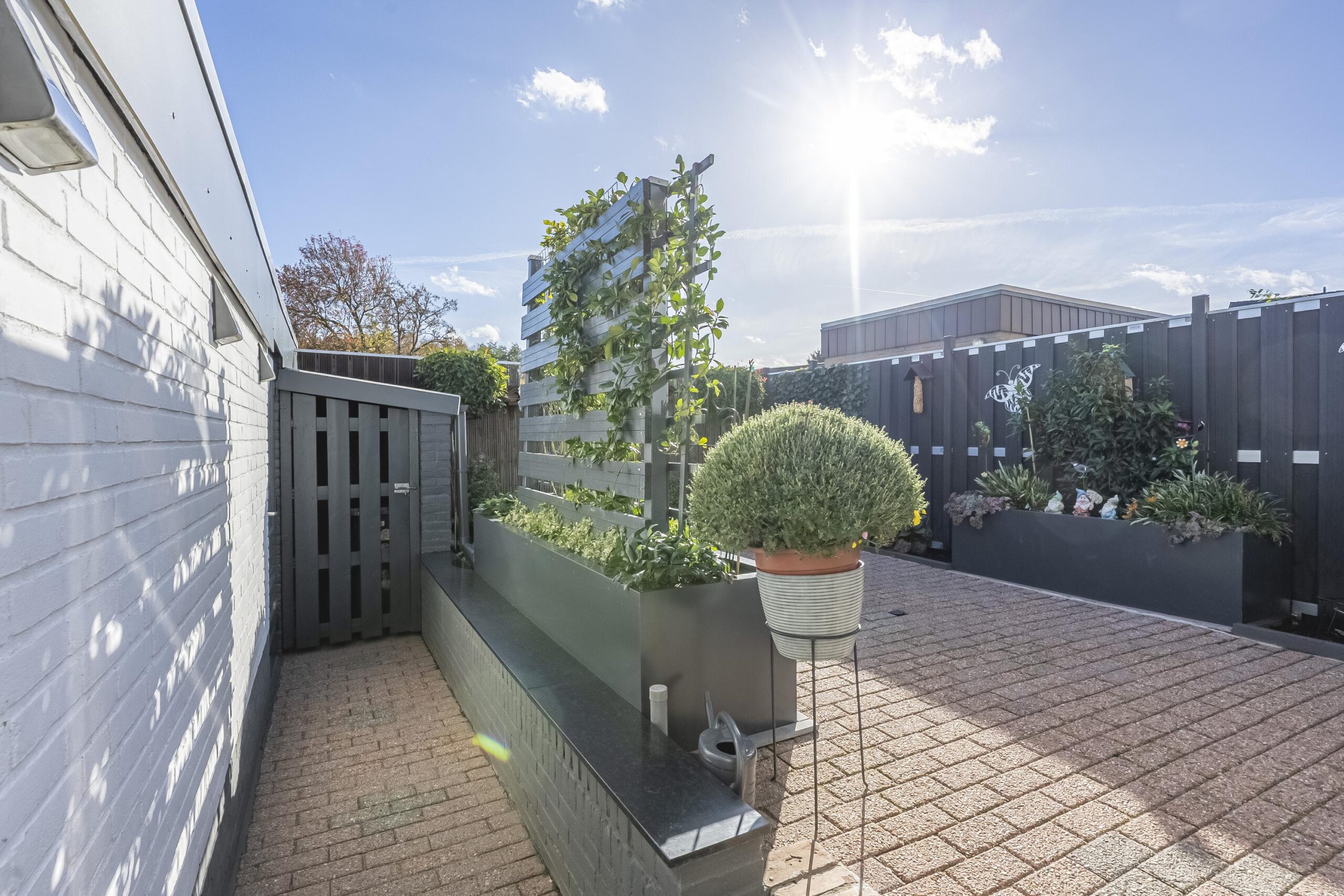 De fraai aangelegde, grotendeels onderhoudsvrije achtertuin is gelegen op het zuiden en biedt daardoor een goede bezonning. De tuin beschikt over twee fraaie bloembakken, een praktische containeropslag en biedt veel privacy.