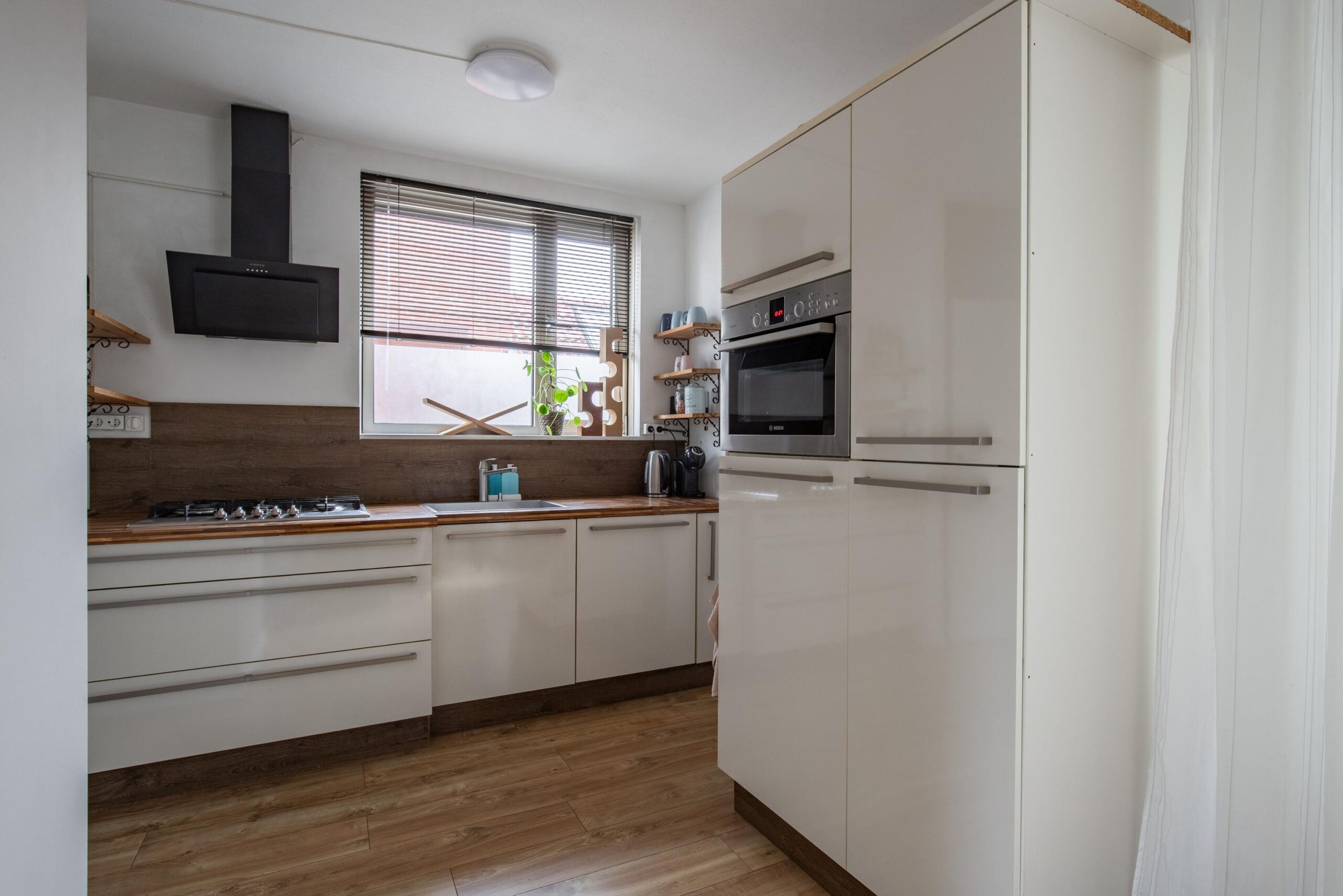 De hele begane grond is voorzien van een eigentijdse laminaatvloer, deze vormt een goede basis voor elke inrichting.