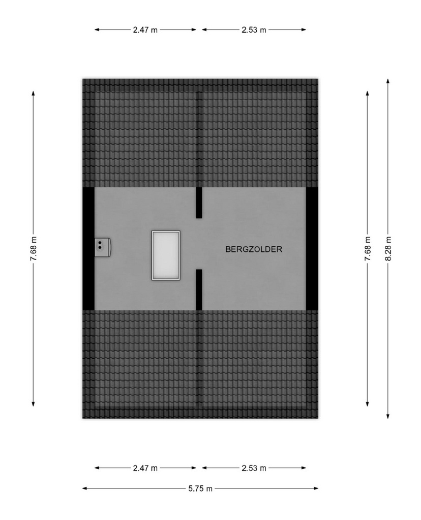 Tweede verdieping: middels vlizotrap te bereiken en verdeeld in twee gedeeltes, één als overloop met C.V.- en mechanische ventilatie installatie en een grote ruimte die nu fungeert als bergzolder maar na het realiseren van een vaste trap een extra slaapkamer wordt.