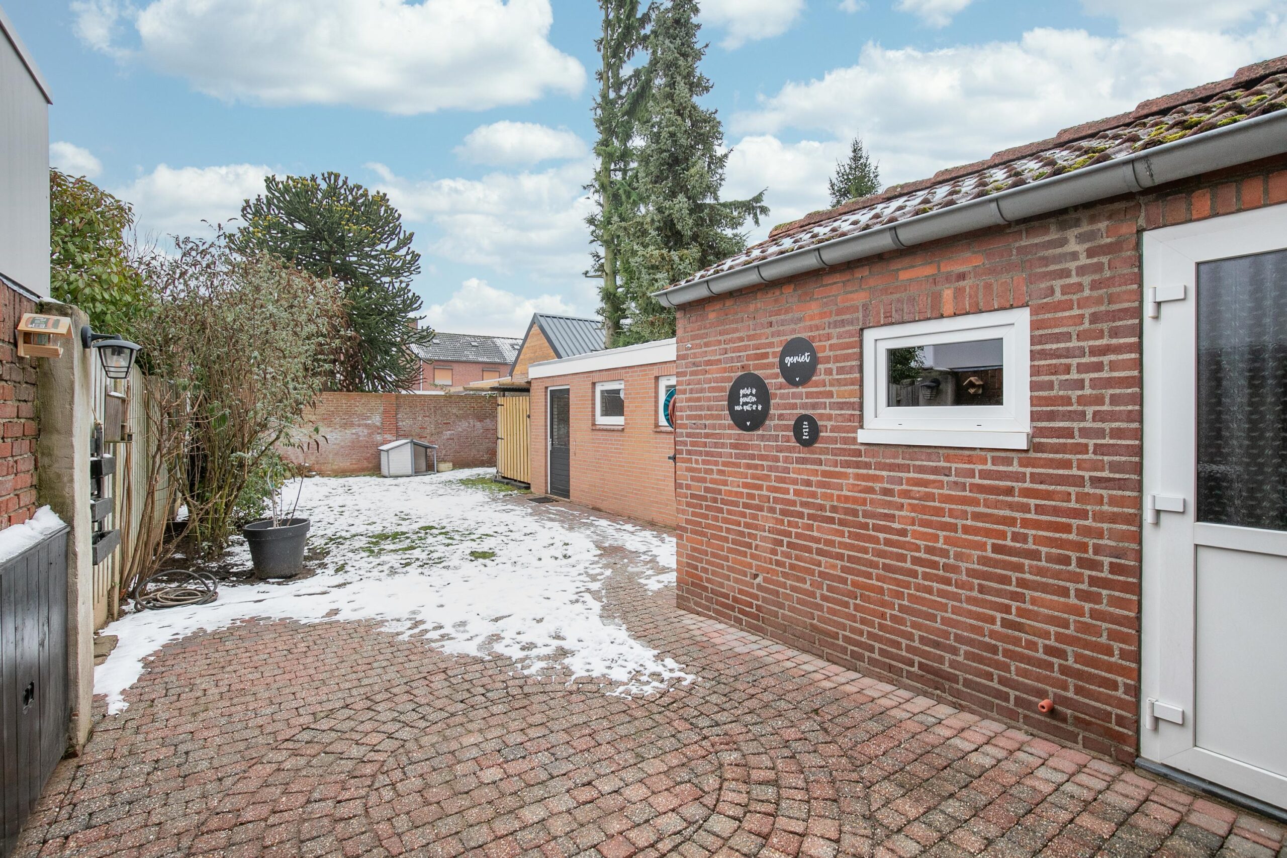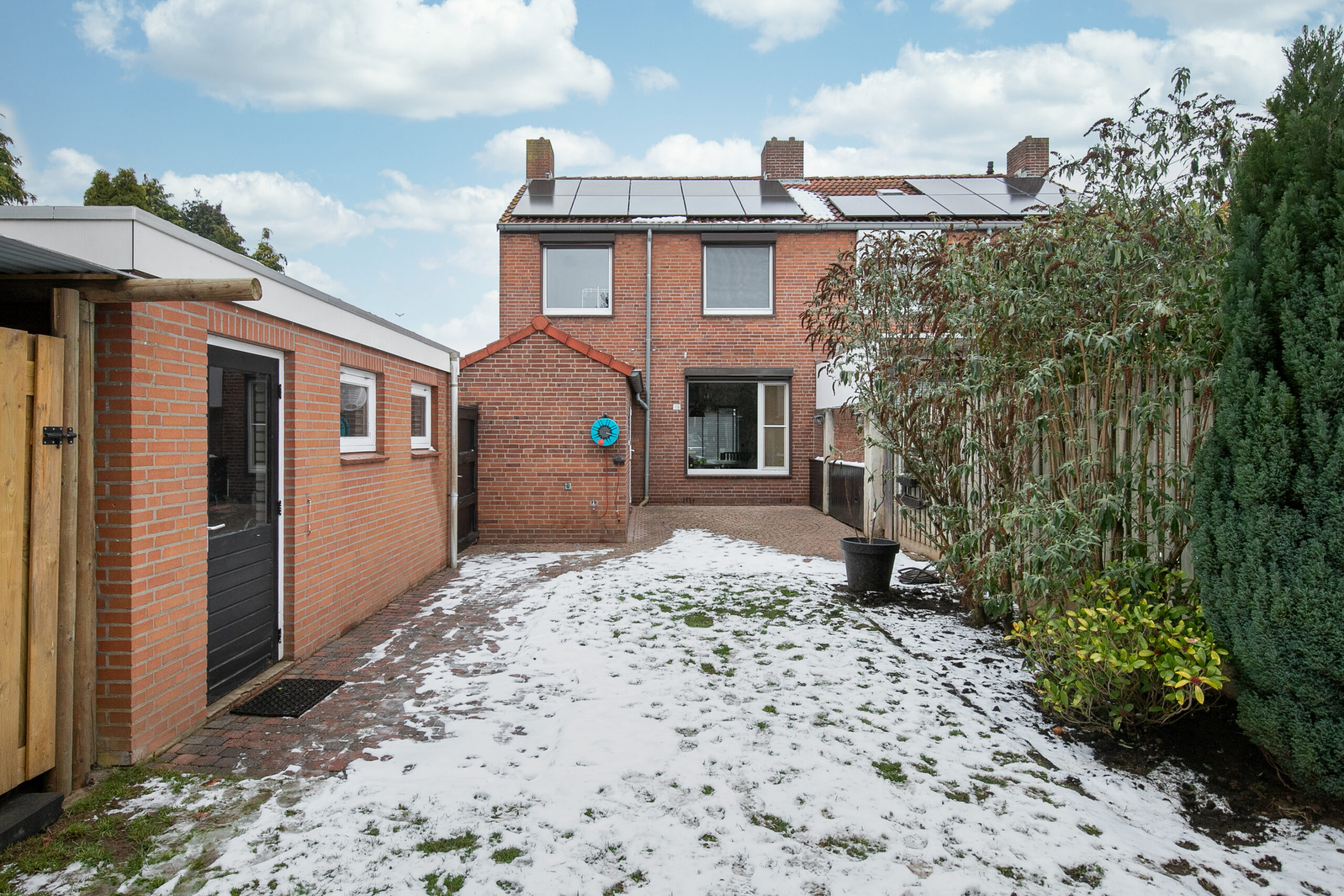 De achtertuin is verzorgd aangelegd met een combinatie van terras en gazon. De zeer ruime garage biedt volop mogelijkheden voor opslag of hobby en beschikt over een extra berging aan de achterzijde, ideaal voor fietsen of tuingereedschap.
