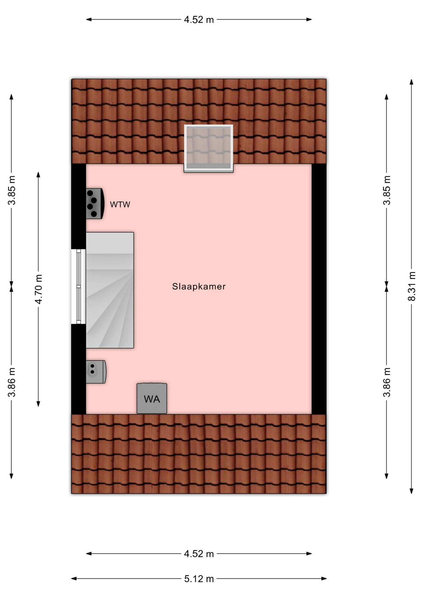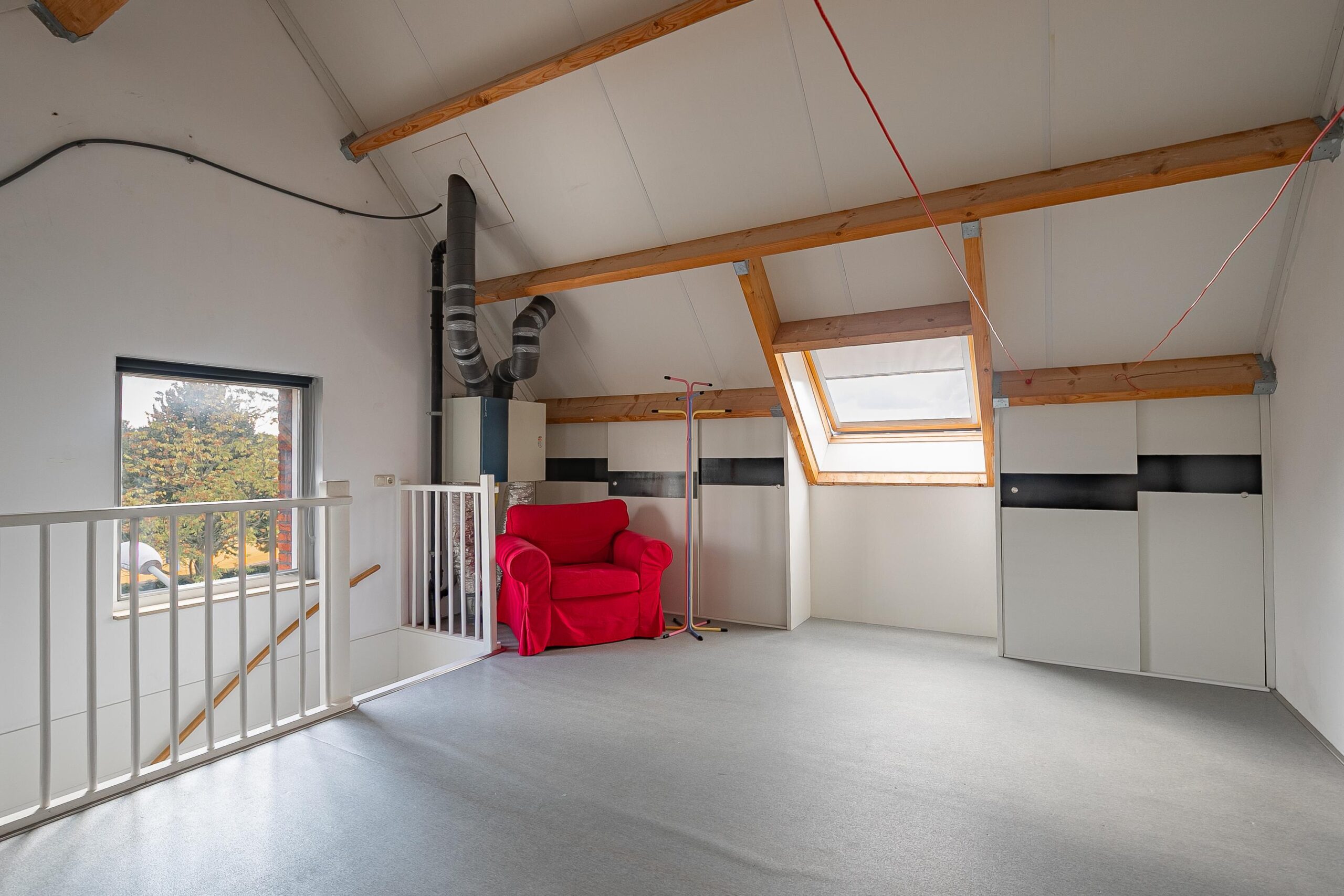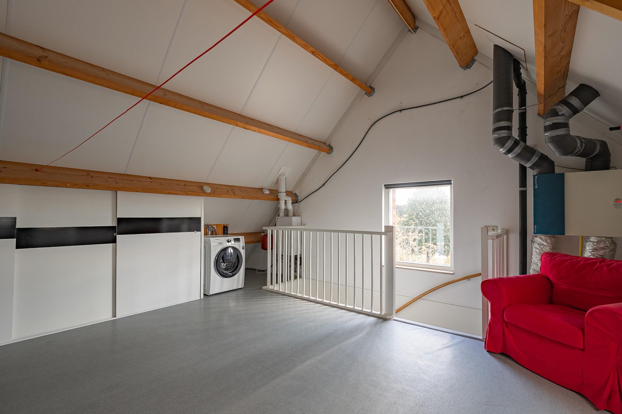 Via vaste trap bereikbare ruime zolderverdieping (ca. 22 m²) met een nokhoogte van 4,00 m. Hier bevinden zich de CV-installatie (Intergas, eigendom, 2024), de witgoedaansluitingen en de WTW-installatie. Dankzij het Velux dakraam is er veel daglicht. De ruimte is afgewerkt met een vinylvloer en biedt volop bergruimte.