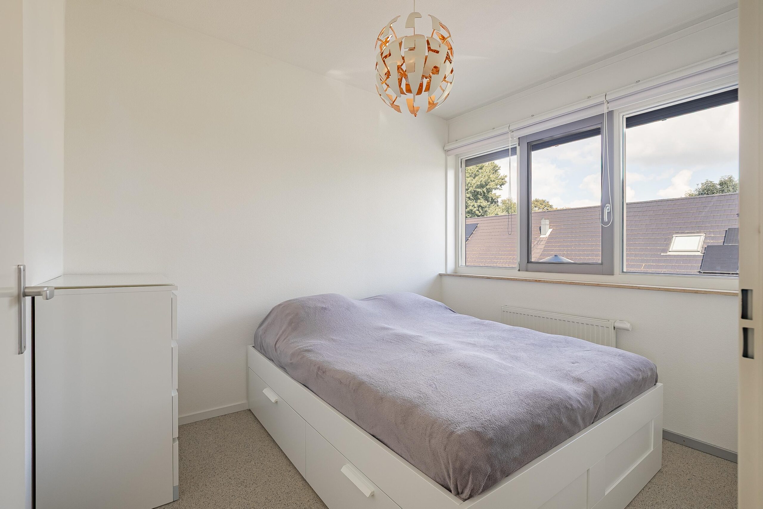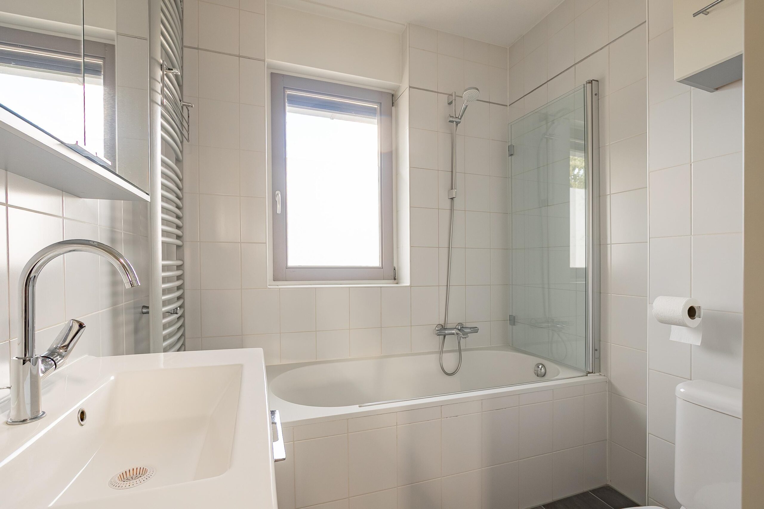 Overloop met trapopgang naar de zolder en toegang tot drie slaapkamers (ca. 6, 8 en 12 m²) en de badkamer. De slaapkamers zijn voorzien van grindvloeren en hardhouten kozijnen met isolerende beglazing; alle kamers beschikken over elektrische rolluiken. De badkamer (ca. 4 m²) is volledig betegeld en uitgerust met een ligbad/douchecombinatie, tweede toilet, vaste wastafel met onderkast en spiegel.