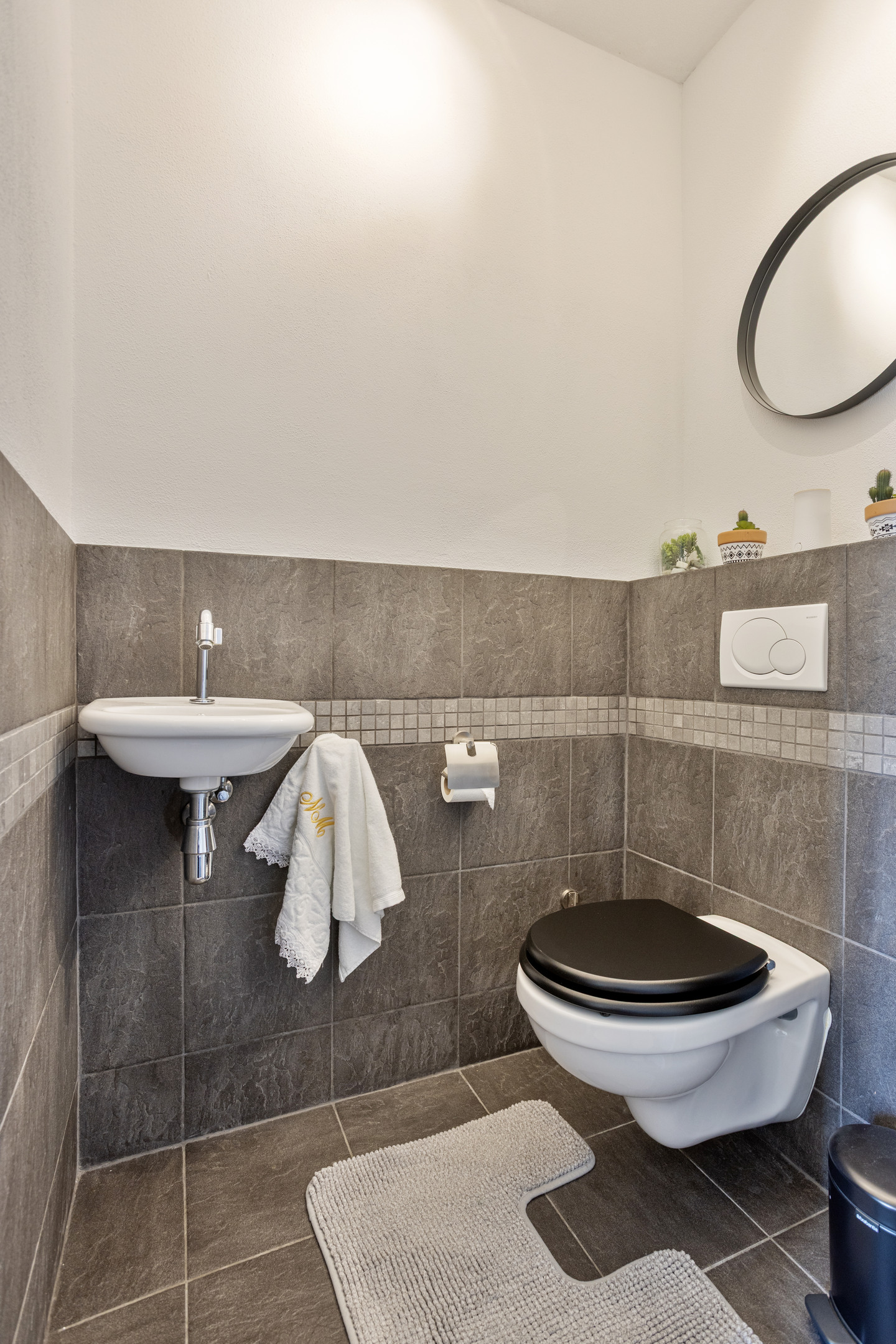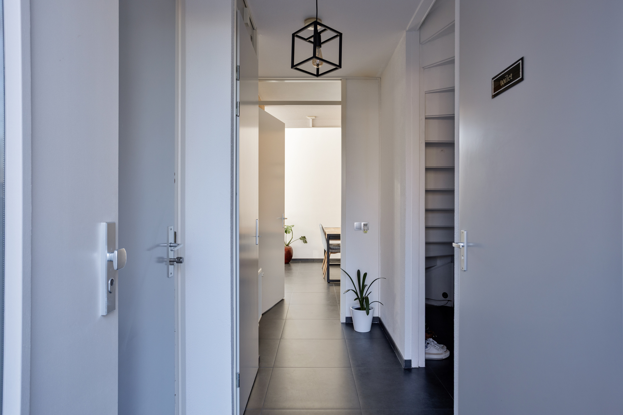Hal/entree voorzien van separaat toilet met fonteintje, en met toegang tot de inpandige garage.