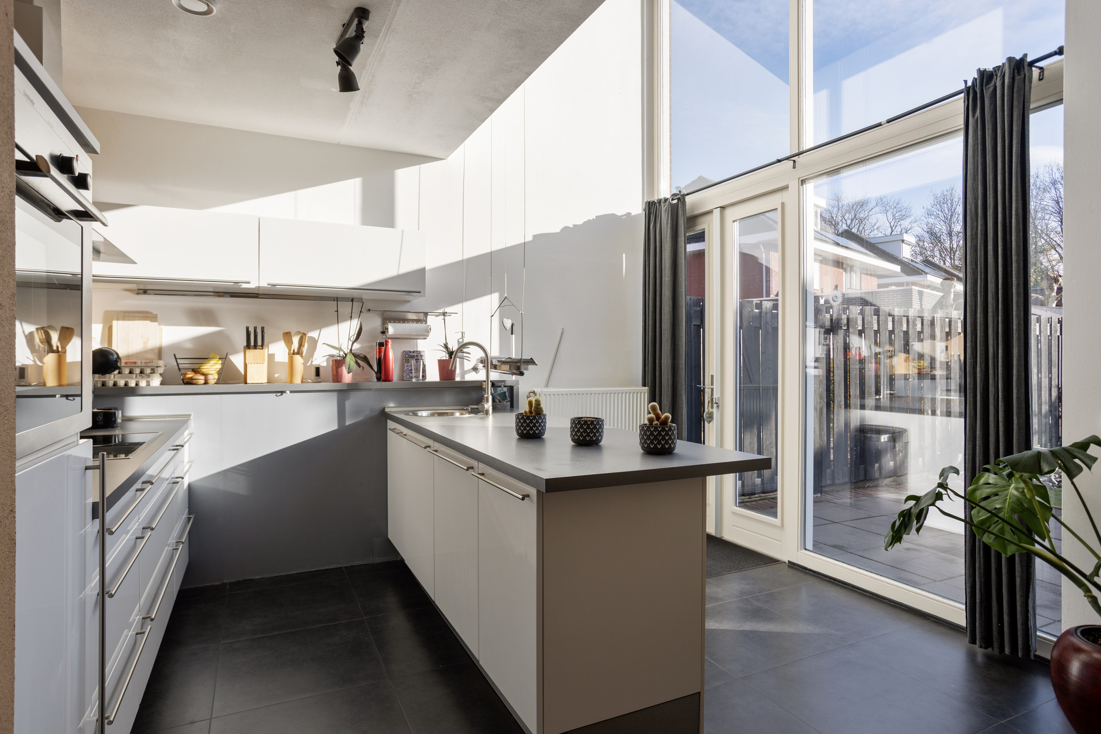 Deze modern afgewerkte woning biedt een unieke indeling, veel licht en optimaal wooncomfort. De parterre beschikt over een royale voortuin met parkeerplek, een hal met toilet, een inpandige garage en een moderne halfopen keuken met openslaande deuren naar de zonnige, onderhoudsvriendelijke tuin met tuinhuis. Dankzij de uitstekende isolatie, hardhouten kozijnen met HR++ glas, een WTW-systeem en zonnepanelen is de woning uiterst energiezuinig en toekomstgericht.