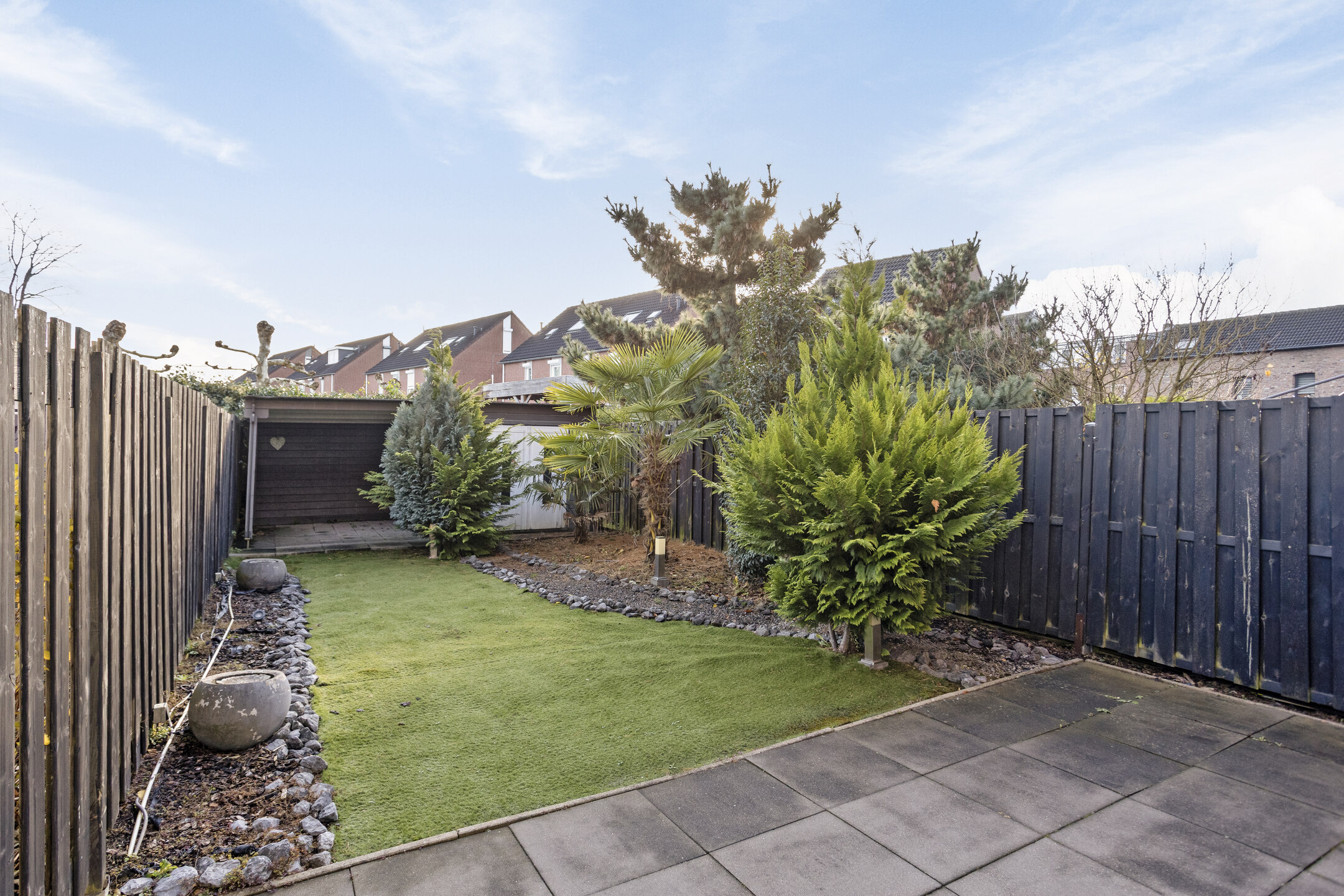 Royale voortuin, geheel bestrate inrit, alwaar een auto geparkeerd kan worden.