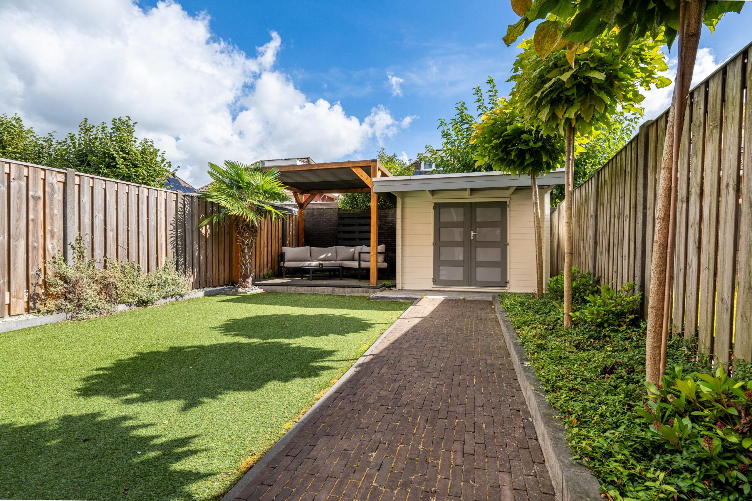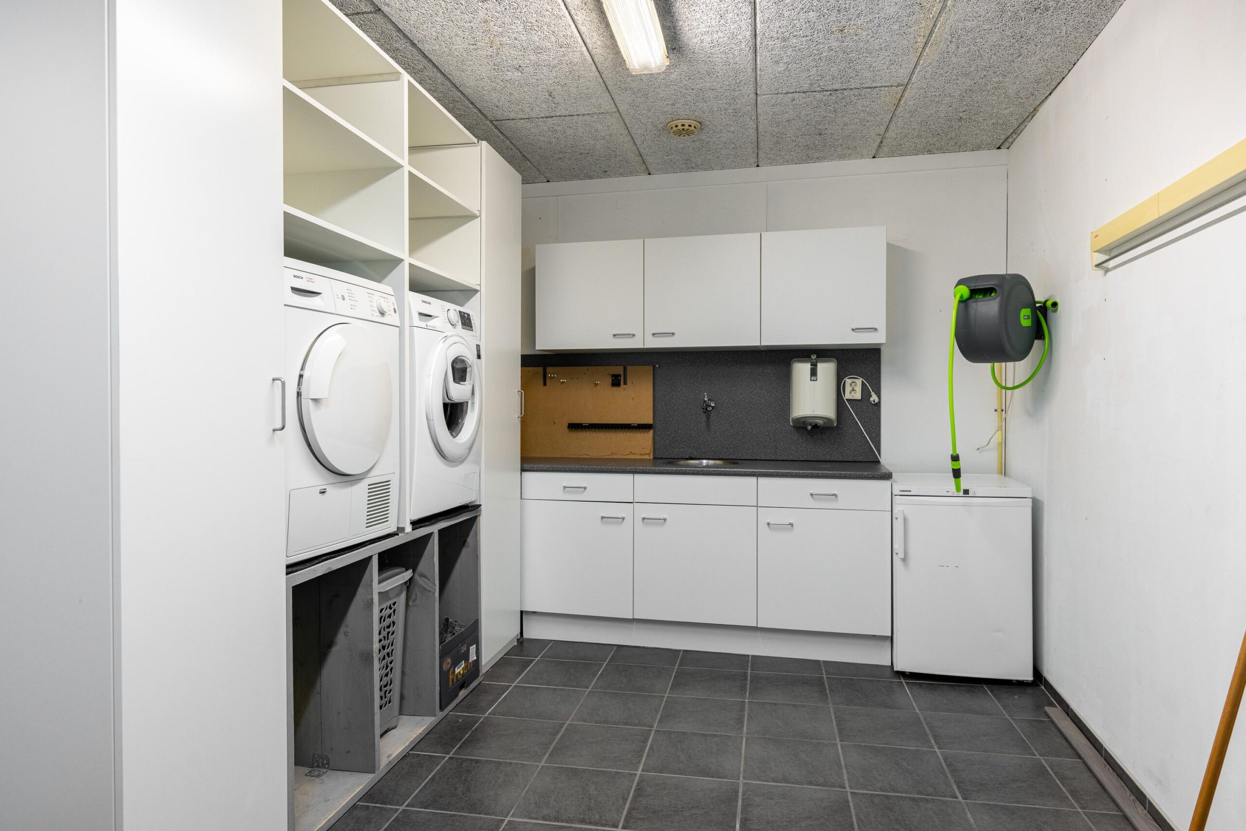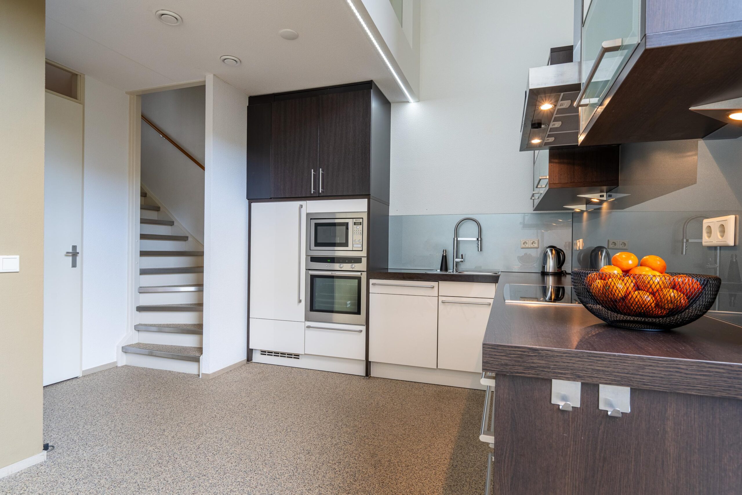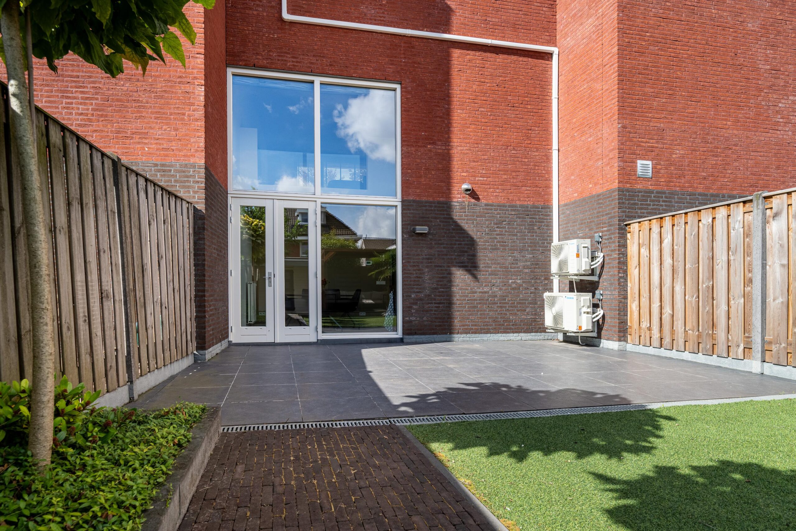 Begane grond: oprit met laadpaal, entree, hal met garderobe-nis, geheel betegeld zwevend toilet, bergkast onder de trap en moderne meterkast. De inpandig bereikbare garage heeft een kantelpoort, keukenblok en wasmachine-aansluiting. De leefkeuken is op de begane grond gesitueerd en heeft een doorlopende grindvloer met vloerverwarming en is ingericht met een moderne keuken-installatie in hoekopstelling voorzien van de volgende apparatuur; inductiekookplaat, oven, magnetron, afzuigkap, vaatwasser en koelkast. Tevens is er airco en heeft de keuken veel lichtinval door de hoge raampartij en openslaande deuren naar de tuin. De onderhoudsvriendelijke tuin is op het Zuiden gelegen en ingericht met een terras, gazon en een vrijstaand houten tuinhuis met overkapping.