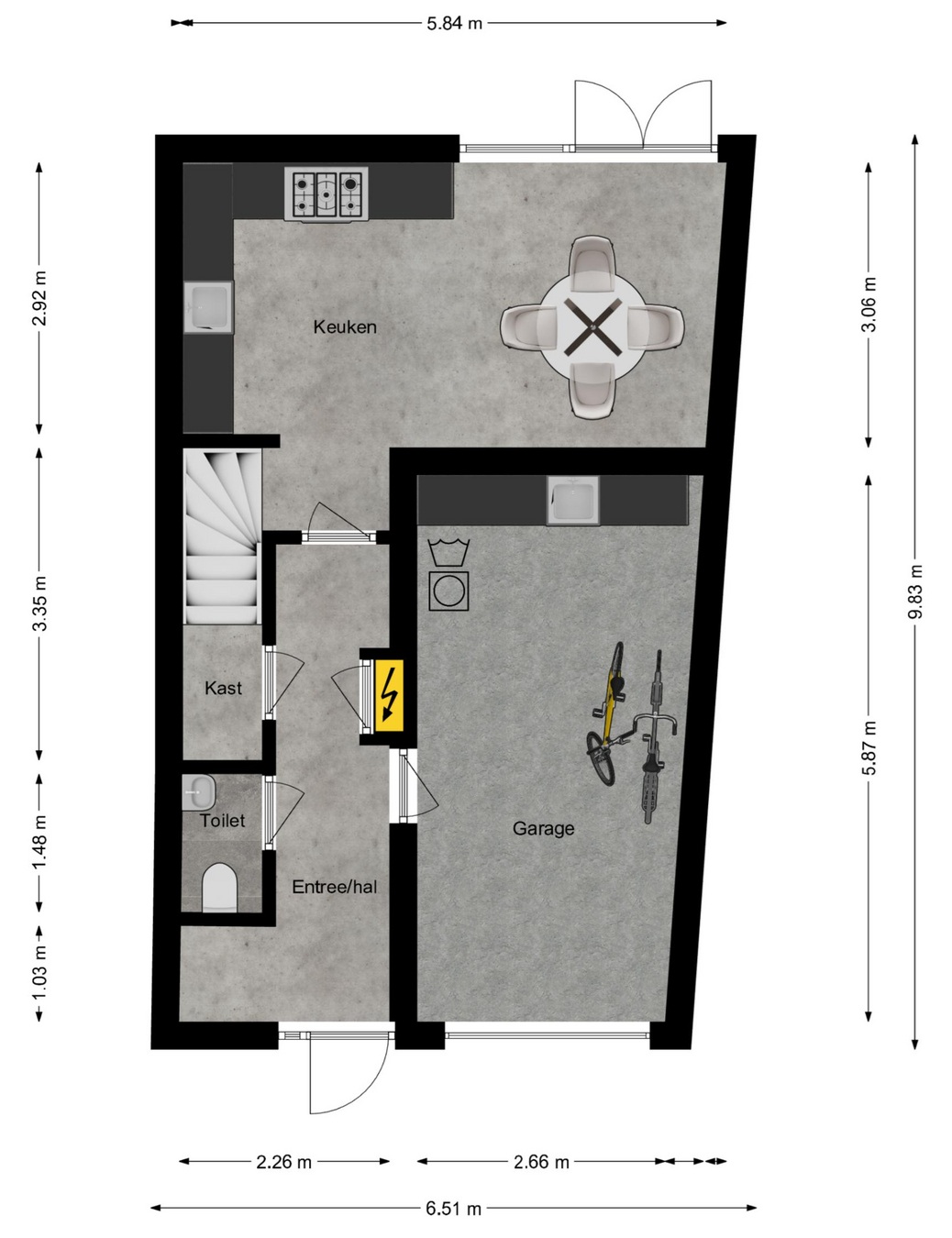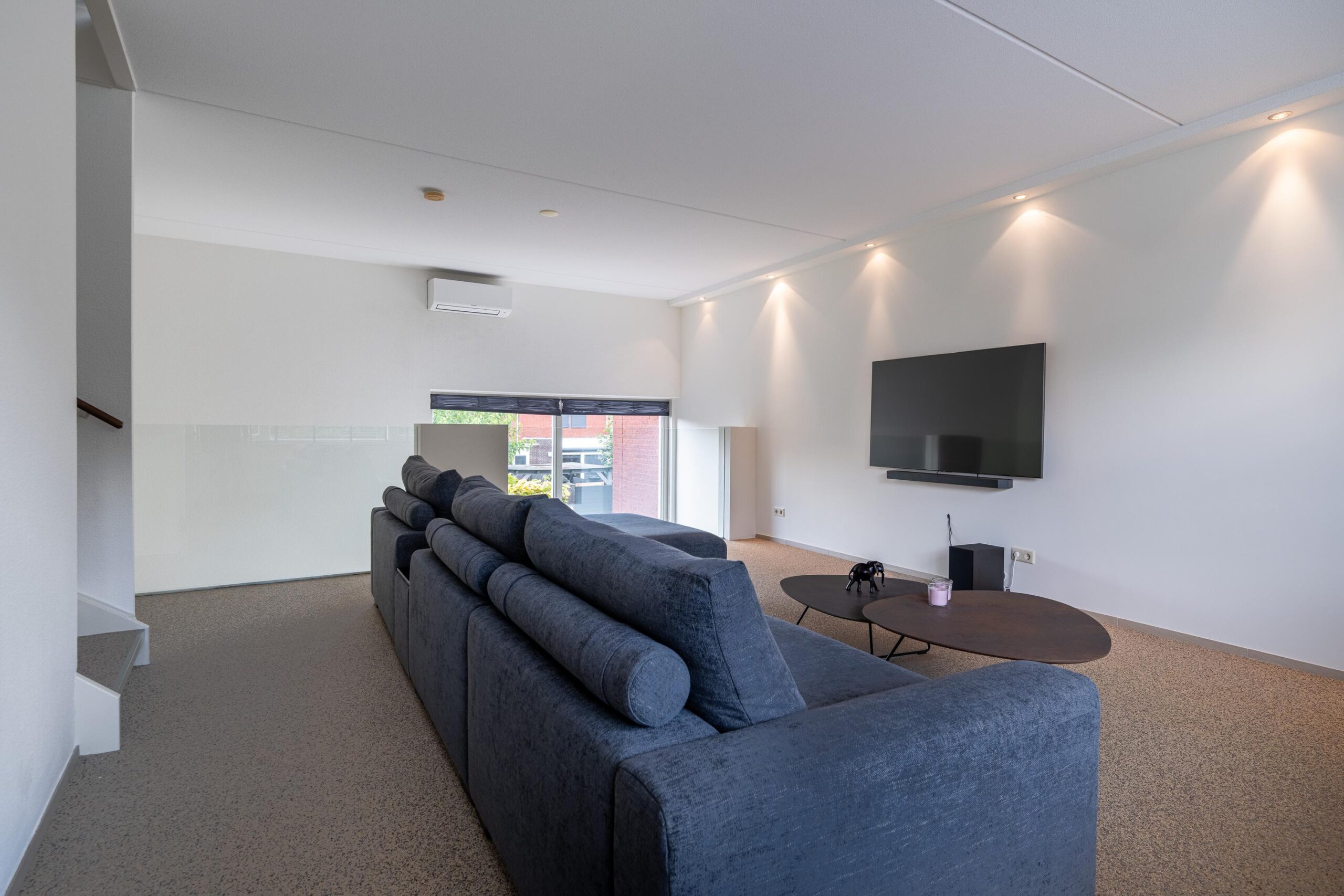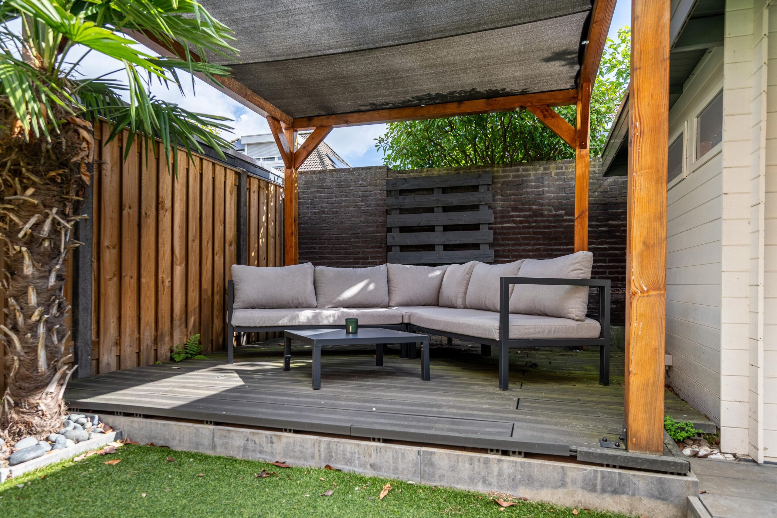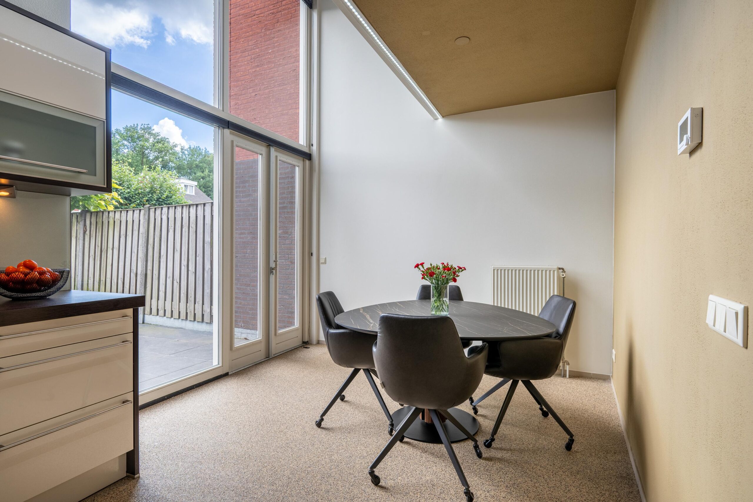 Begane grond: oprit met laadpaal, entree, hal met garderobe-nis, geheel betegeld zwevend toilet, bergkast onder de trap en moderne meterkast. De inpandig bereikbare garage heeft een kantelpoort, keukenblok en wasmachine-aansluiting. De leefkeuken is op de begane grond gesitueerd en heeft een doorlopende grindvloer met vloerverwarming en is ingericht met een moderne keuken-installatie in hoekopstelling voorzien van de volgende apparatuur; inductiekookplaat, oven, magnetron, afzuigkap, vaatwasser en koelkast. Tevens is er airco en heeft de keuken veel lichtinval door de hoge raampartij en openslaande deuren naar de tuin. De onderhoudsvriendelijke tuin is op het Zuiden gelegen en ingericht met een terras, gazon en een vrijstaand houten tuinhuis met overkapping.