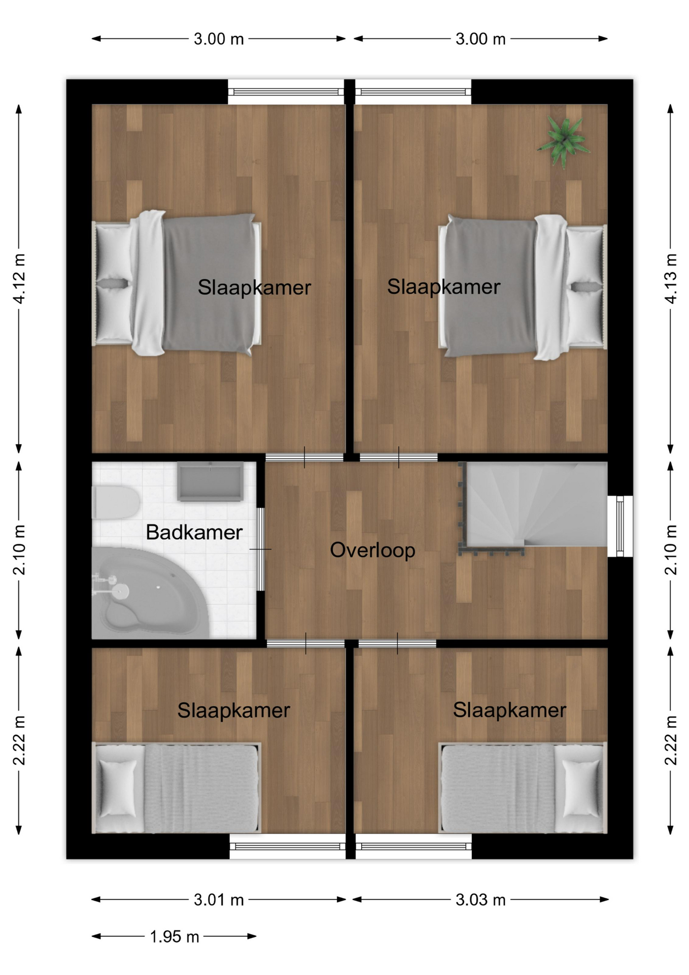 – Vier slaapkamers op de eerste verdieping;