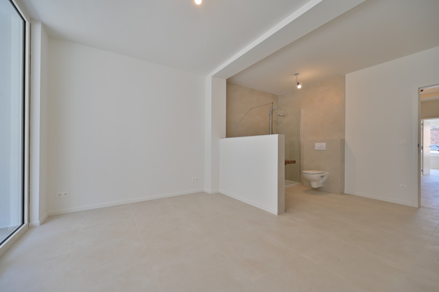 Je betreedt het appartement via de inkomhal met een apart gastentoilet. In de lichtrijke leefruimte kan je dankzij de grote ramen genieten van een warme, open sfeer. In de leefruimte bevindt zich ook de open keuken uitgerust met kookplaat, afzuigkap, combi oven, vaatwasser, koelkast met kleine diepvries. De eerste royale slaapkamer met eigen badkamer(inloopdouche en wastafel), situeert zich aan de achterkant: privacy en comfort. De tweede slaapkamer bevindt zich aan de voorzijde en heeft naast de eigen badkamer en toilet ook een inpandig terras. Over het hele appartement bevindt zich vloerverwarming via warmtepomp (Vaillant): duurzaam, energiezuinig en heerlijk behaaglijk.