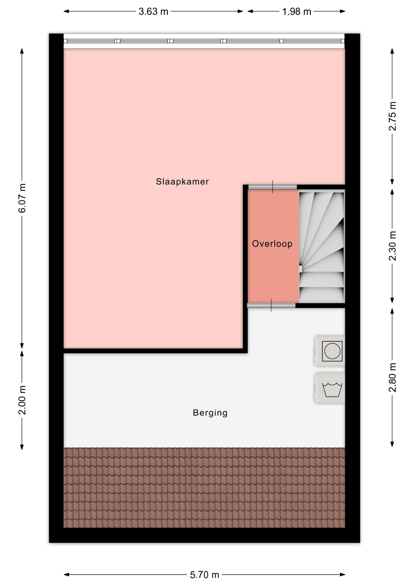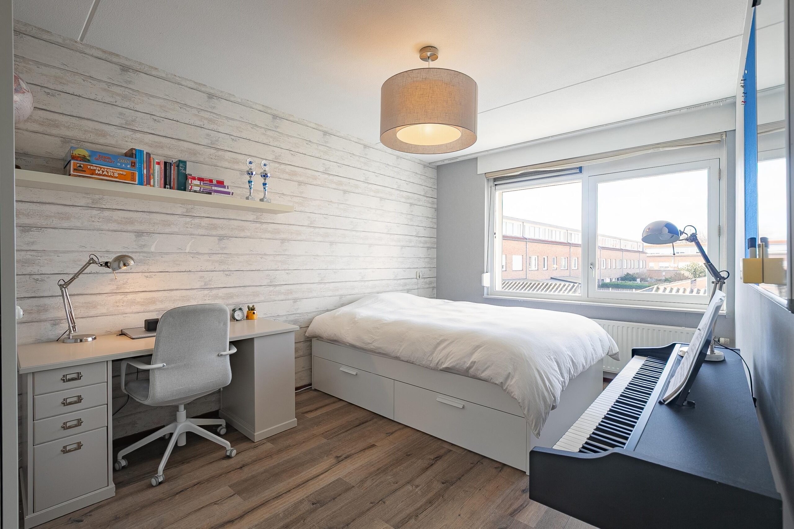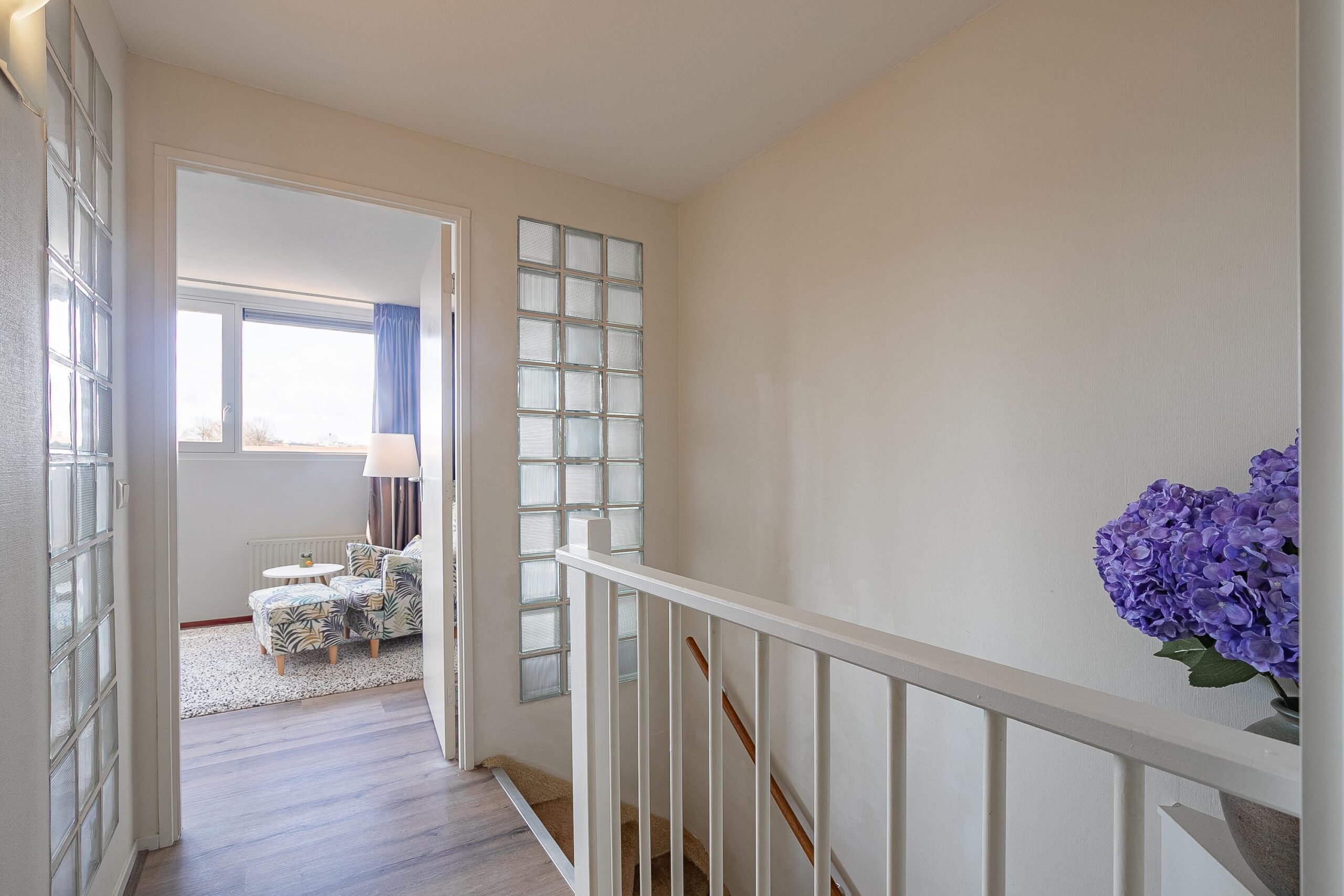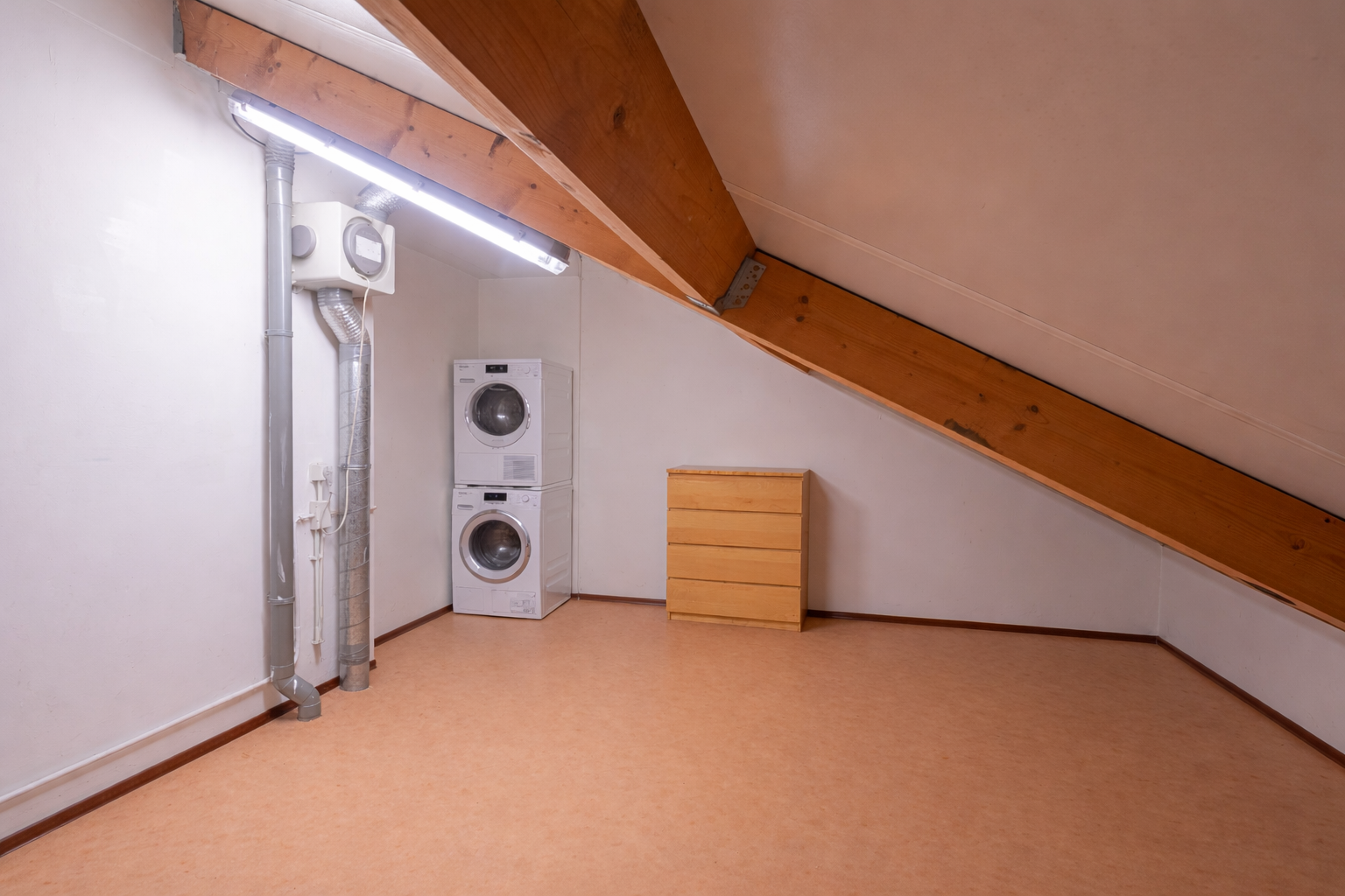 Via een vaste trap te bereiken overloop op de tweede verdieping welke toegang biedt tot de 4e slaapkamer en een inpandige bergruimte. De slaapkamer (ca. 27,5m²) is aan de achterzijde van de woning gelegen en is voorzien van een mooie laminaatvloer, glad gestucte wanden en een grote raampartij met isolerende HR++ beglazing over de gehele breedte van de kamer. De bergruimte (ca. 13m²) is te bereiken vanaf de overloop en beschikt over de witgoedaansluitingen en de unit voor de mechanische ventilatie.