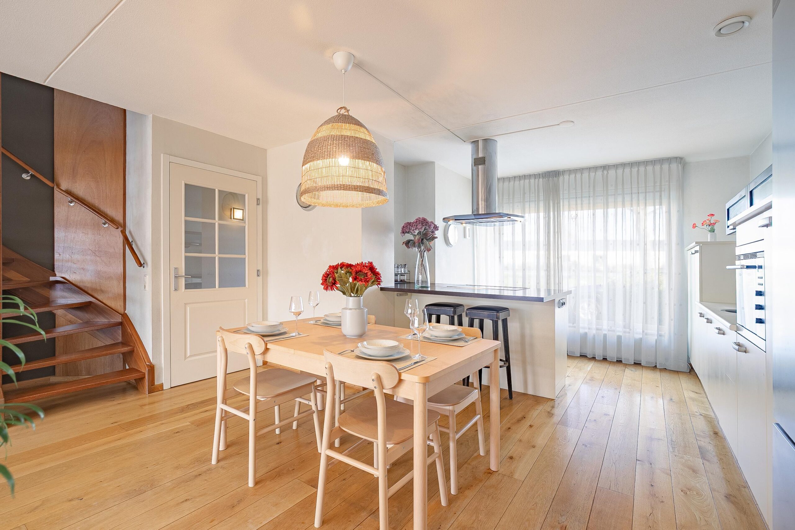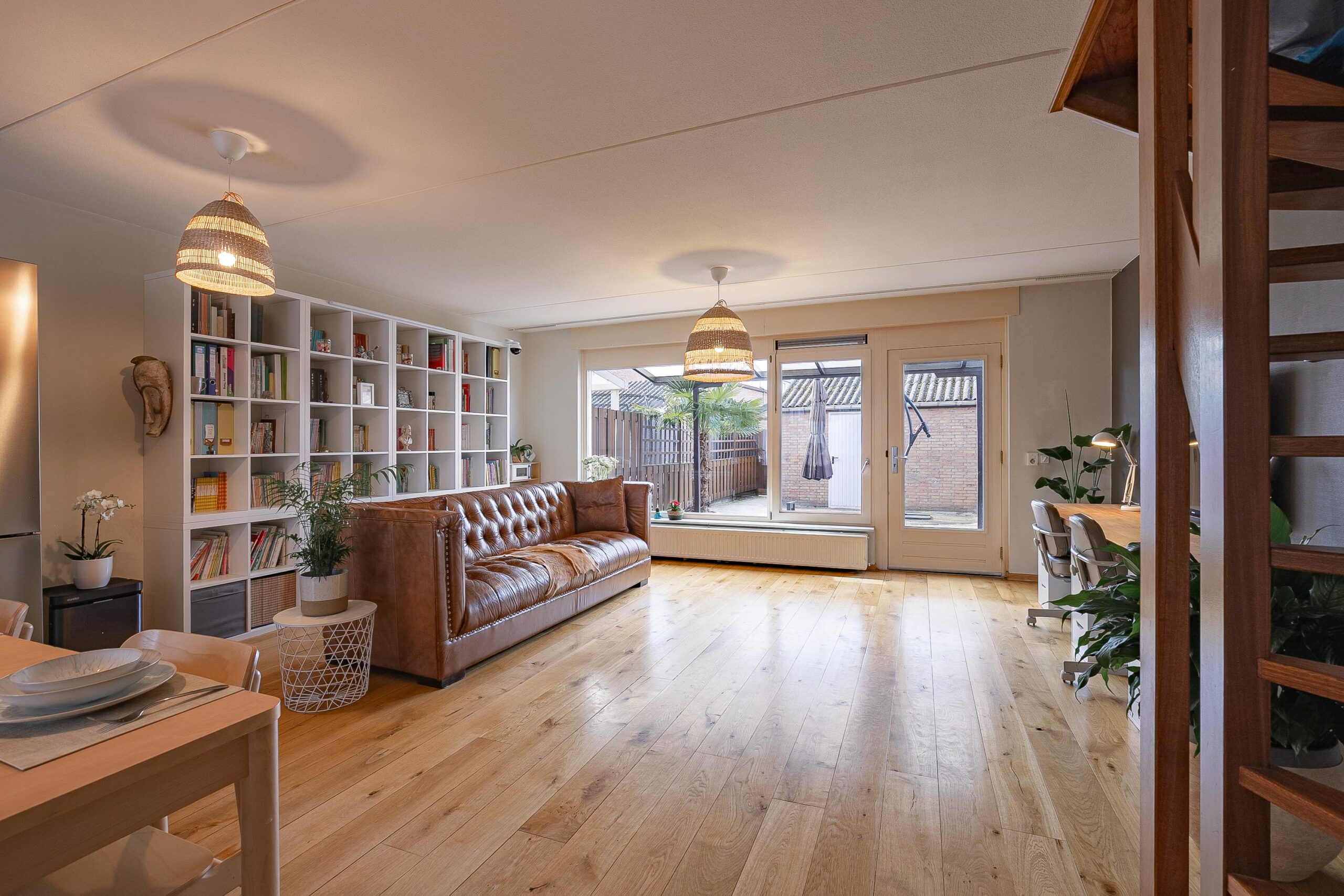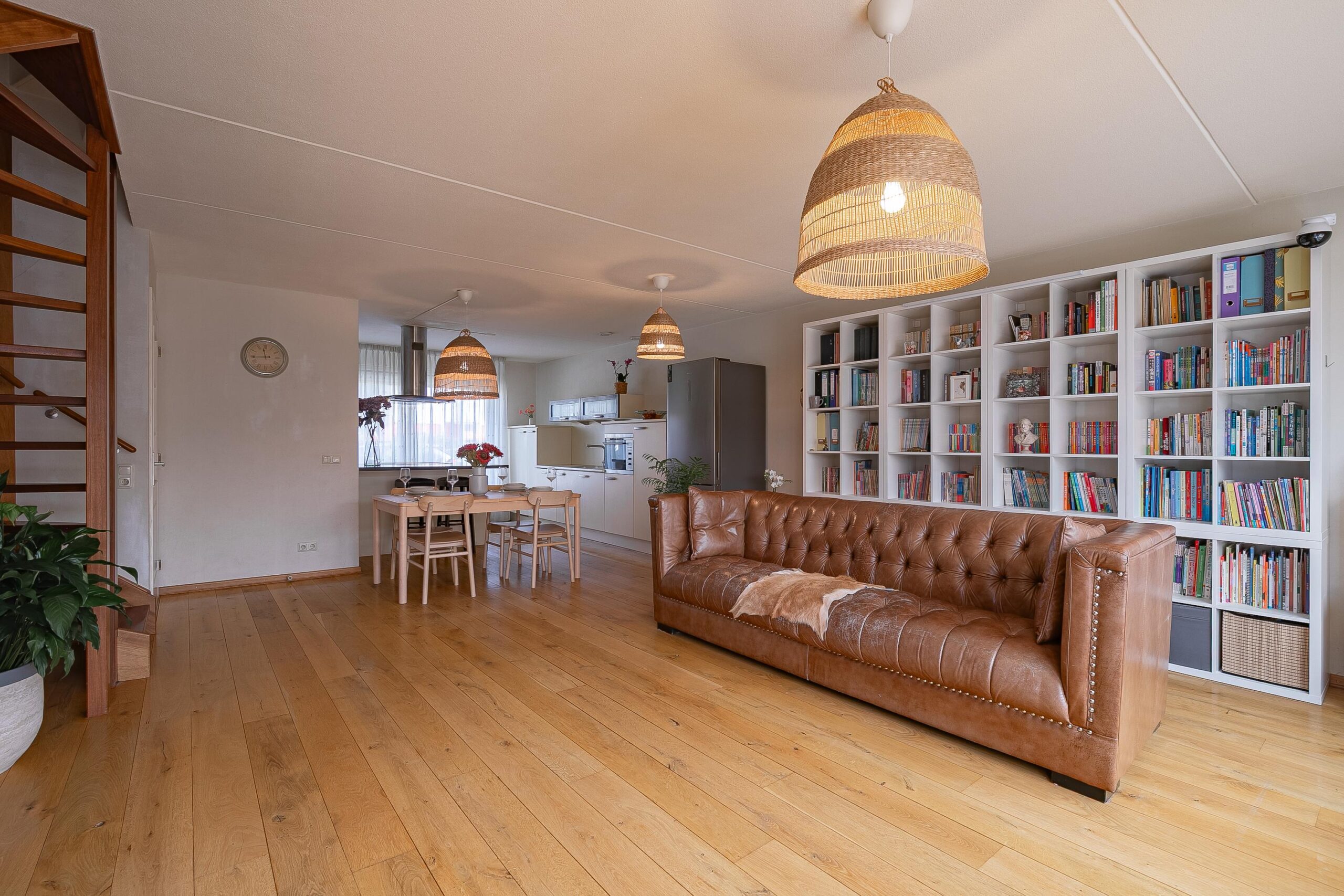 De gehele begane grond (m.u.v. het toilet) is voorzien van een eikenhouten parketvloer.