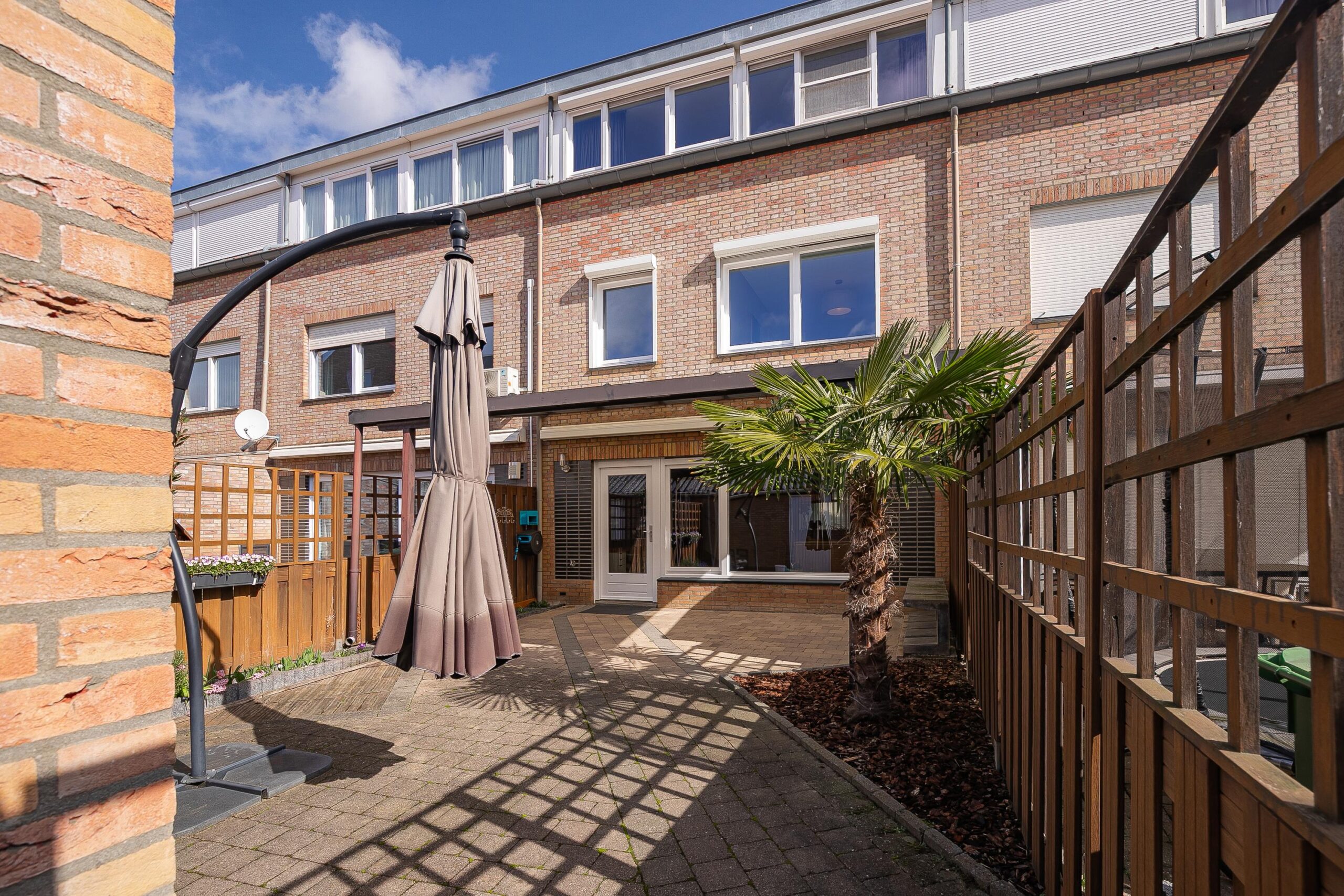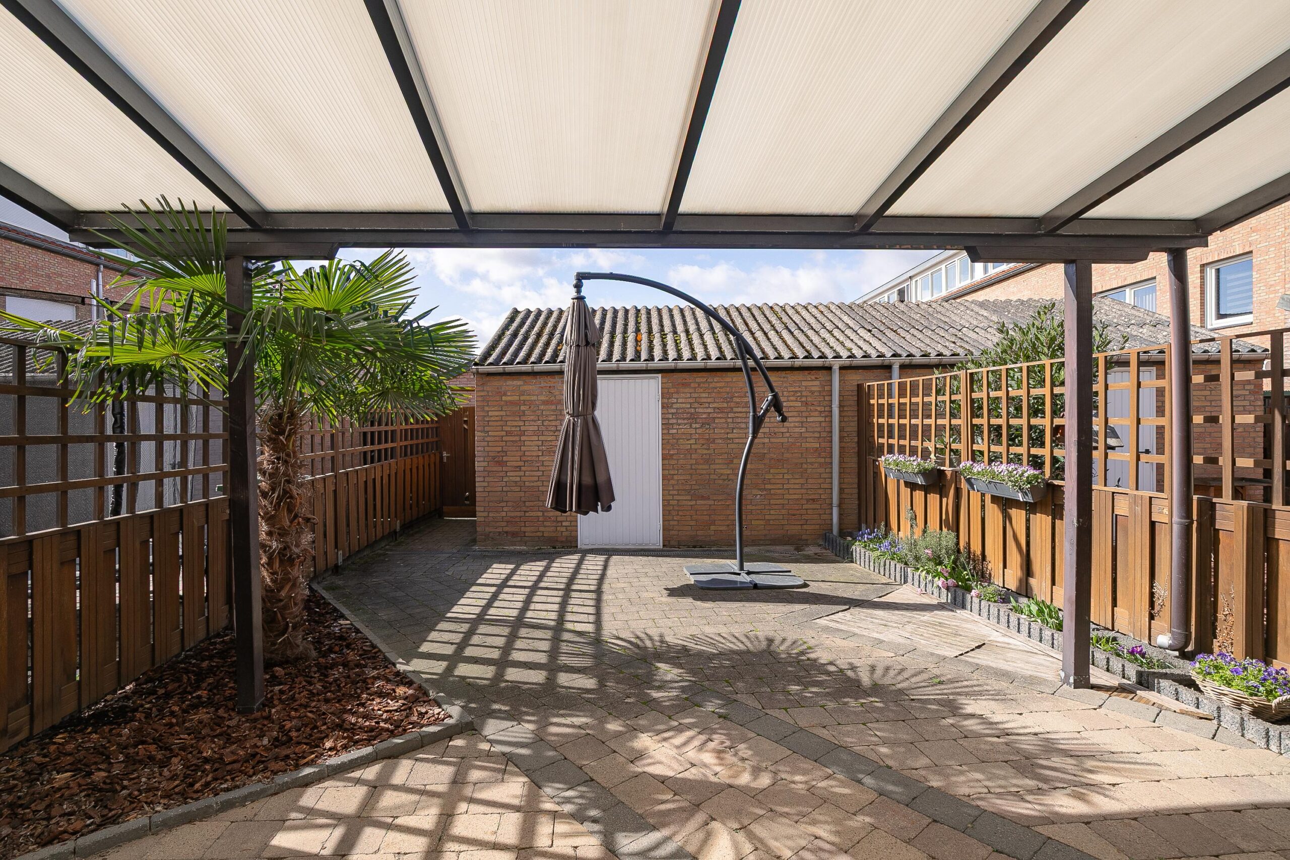 Sfeervolle en onderhoudsvriendelijke achtertuin (ca. 50m²), georiënteerd op het zuidwesten. De tuin beschikt over een externe berging (ca. 10m²), een achterom en een terrasoverkapping (ca. 22m²) met een elektrisch bedienbaar zonnescherm.