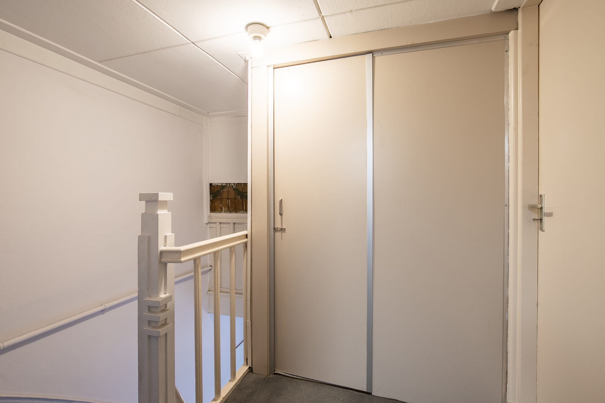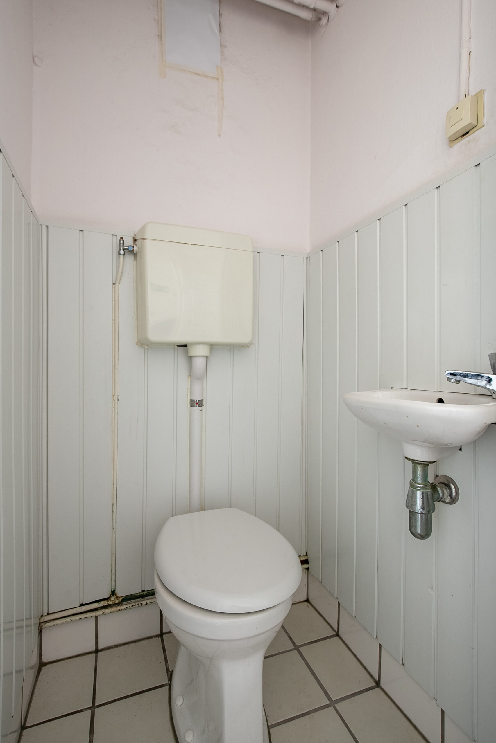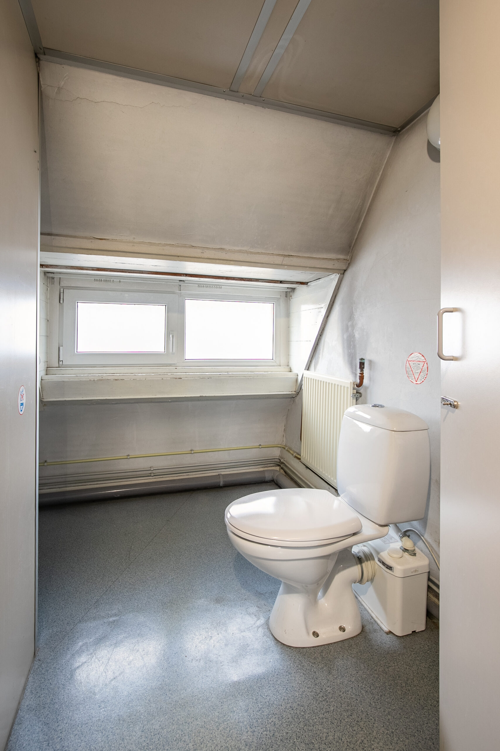 Overloop met toegang tot de vijfde slaapkamer (ca. 10m2) en separate toiletruimte met sanibroyeur en waterfontein. Eveneens bergruimte alwaar de Bosch cv-installatie zich bevindt.