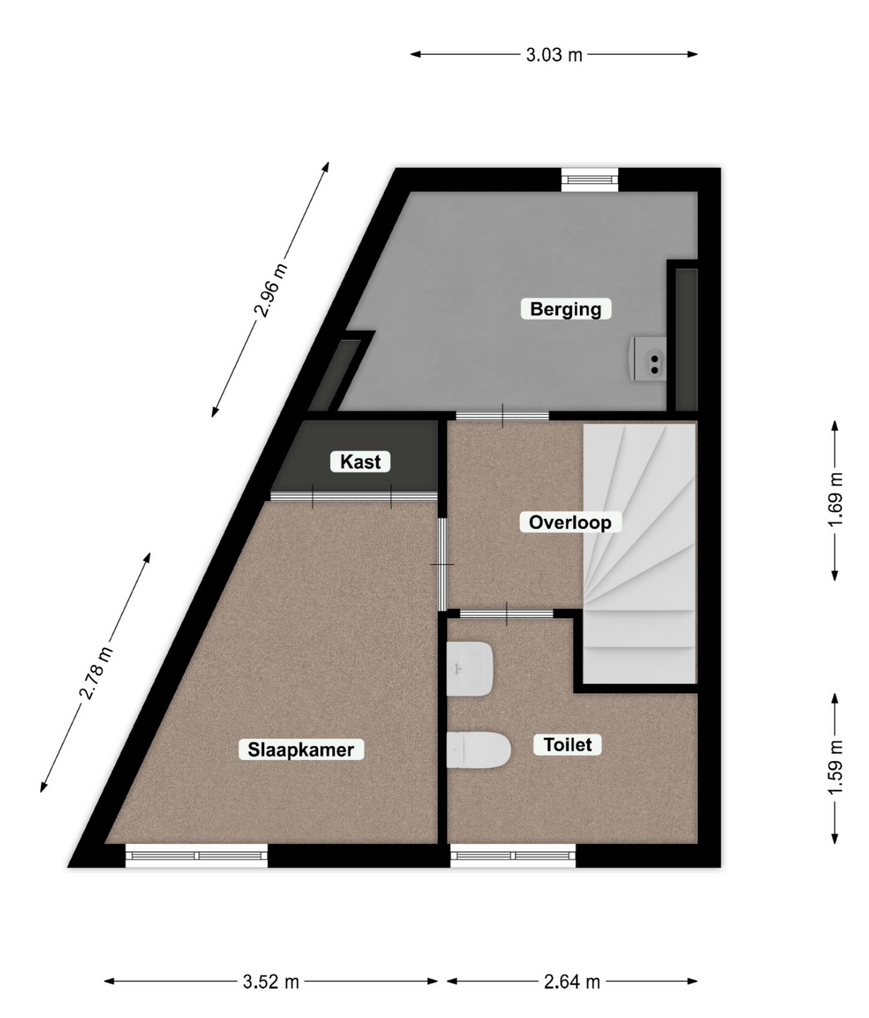 - Oppervlakte gebouwgebonden ca. 2 m2