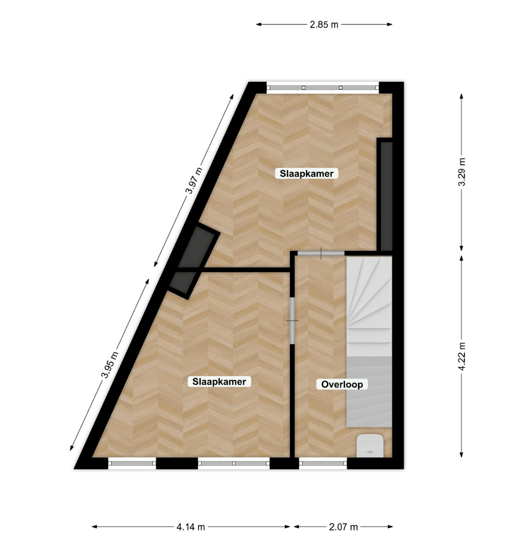 Vanuit de overloop te bereiken slaapkamers welke respectievelijk ca. 11m2 en 11m2 groot zijn.