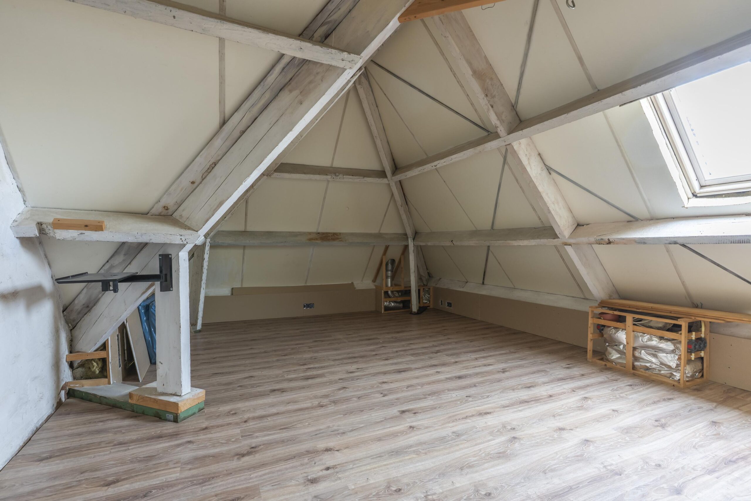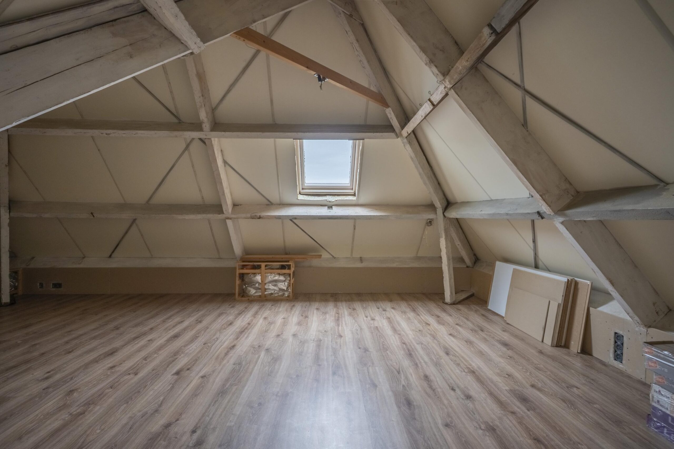 Tweede verdieping: vaste trap naar de zolderverdieping. Twee ruimtes met een geïsoleerd hoofddak en 2 Velux-ramen. Voorzien van laminaatvloeren.