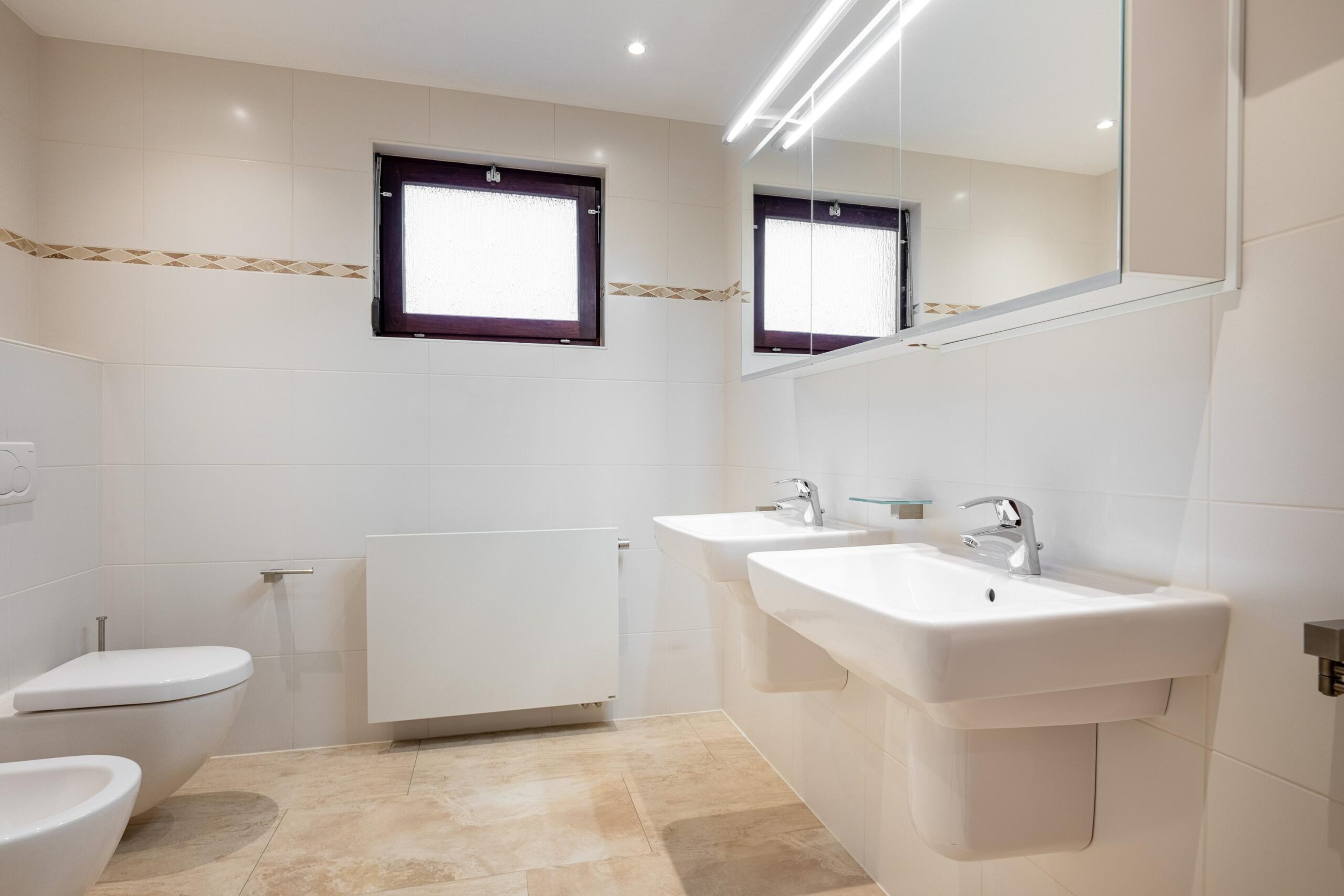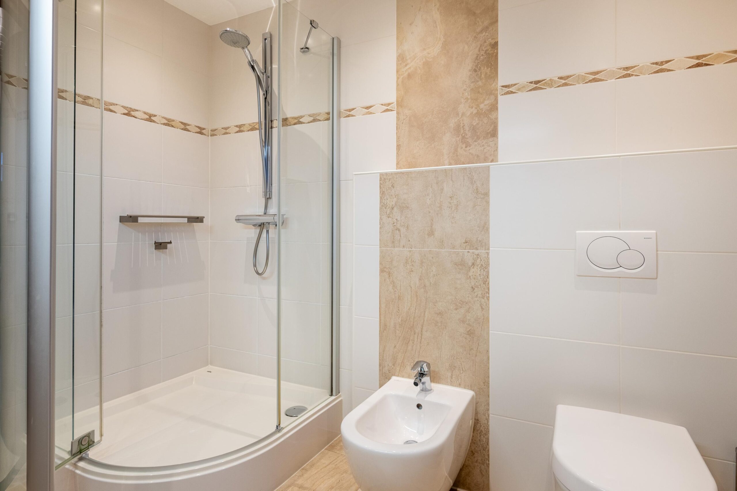 - Badkamervoorzieningen Toilet, douche, bidet, dubbele wastafel