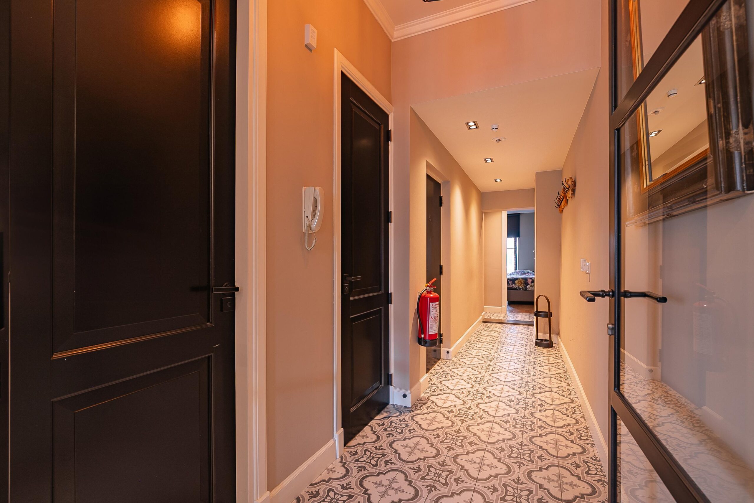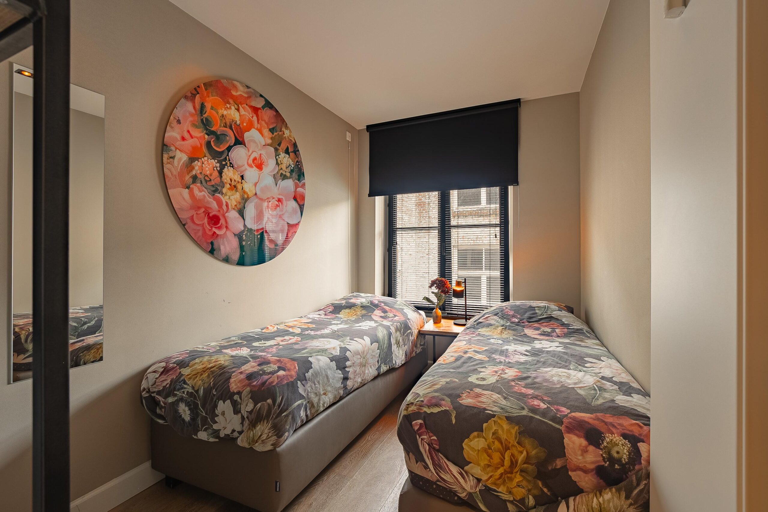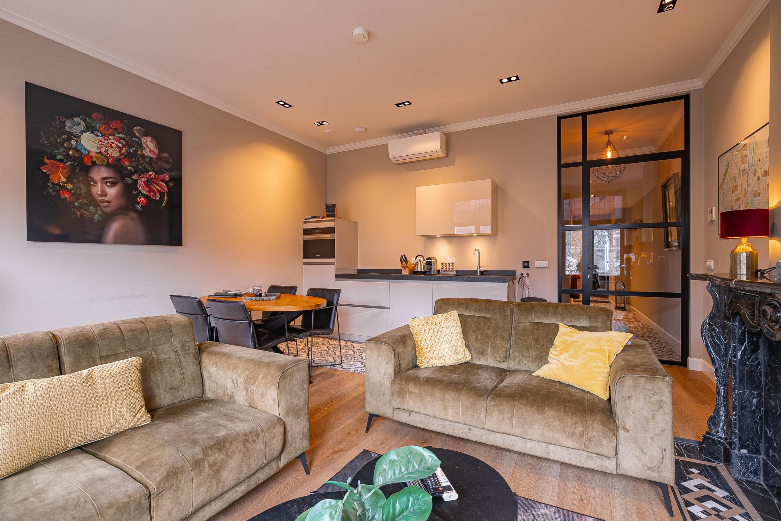 Dit luxe appartement bevindt zich op de tweede verdieping van het pand. Het is stijlvol gerenoveerd in 2019 en uitgerust met een luxe badkamer, separaat toilet, twee slaapkamers en een woonkeuken. De woonkeuken heeft een oppervlakte van circa 26m² en is in een brocante stijl afgewerkt. De ruimte is voorzien van airconditioning die zowel kan koelen als verwarmen. De hoogwaardige keuken is uitgerust met een vaatwasser, 4-zone inductiekookplaat met geïntegreerde afzuiging, combimagnetronoven, koelkast en spoelbak. In de keuken ligt vloerverwarming, evenals in de badkamer.