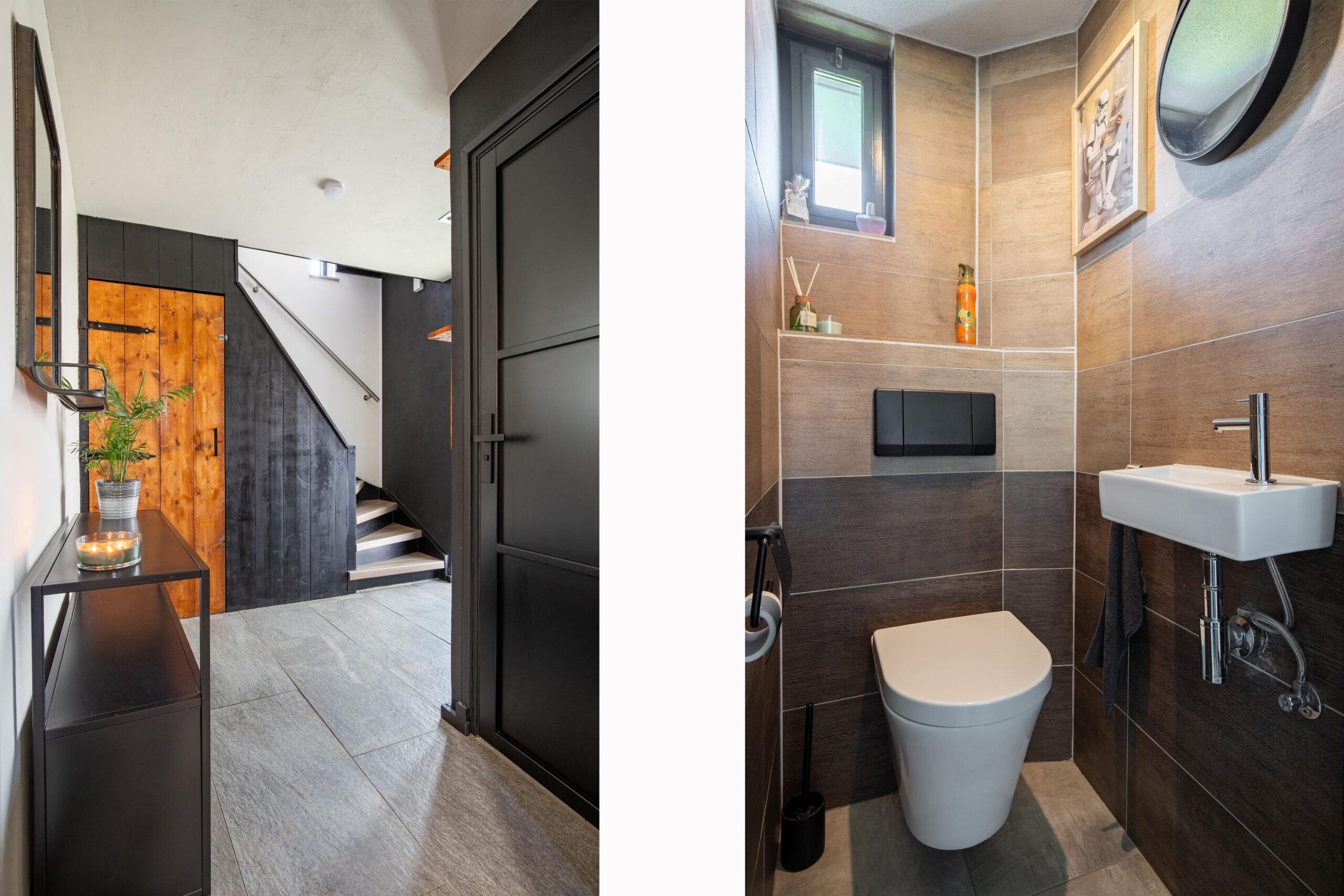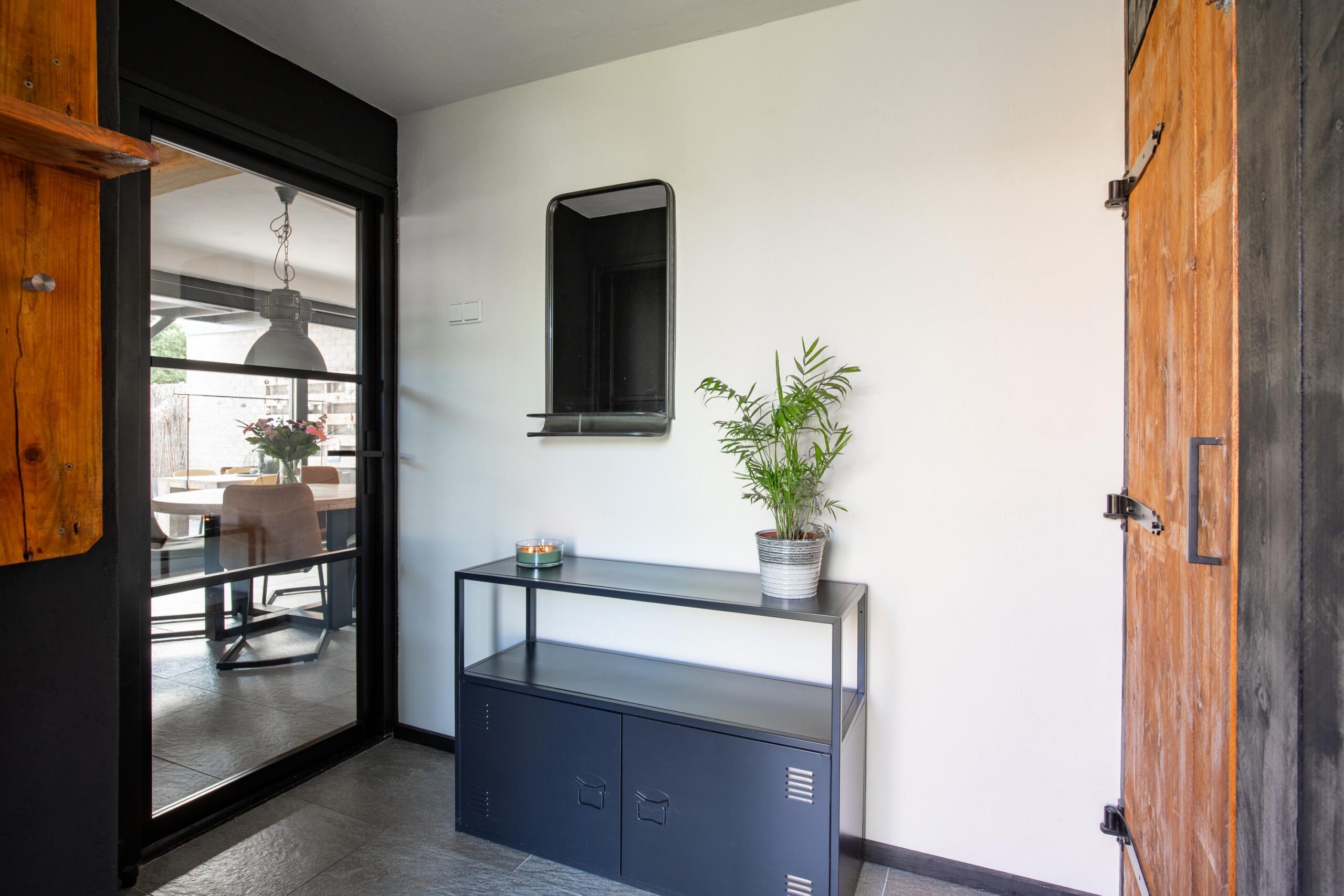 Via de royale oprit en onderhoudsarme voortuin bereikt u de overdekte entree. Vanuit de ruime hal met garderobe heeft u toegang tot een royale inbouwkast waarin zich de vernieuwde meterkast en de omvormer ten behoeve van de 12 zonnepanelen bevinden. Tevens bevindt zich hier het geheel betegelde vrijhangende toilet met fontein.