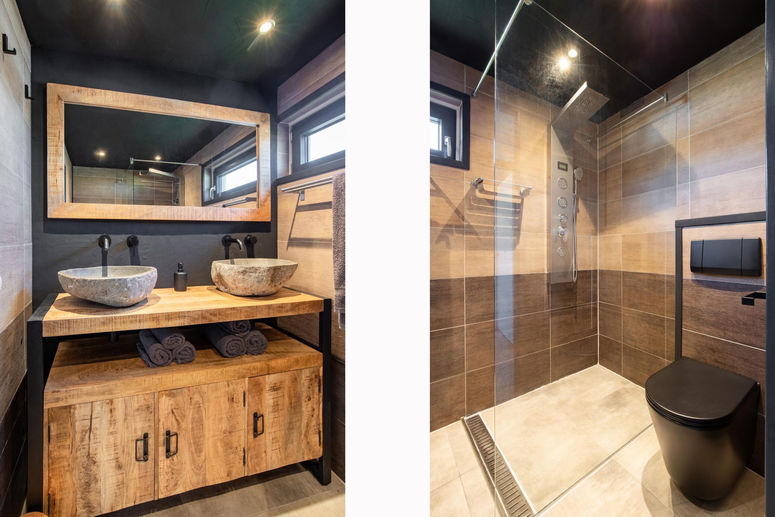 - Badkamervoorzieningen Toilet, dubbele wastafel, wastafelmeubel, inloopdouche, vloerverwarming