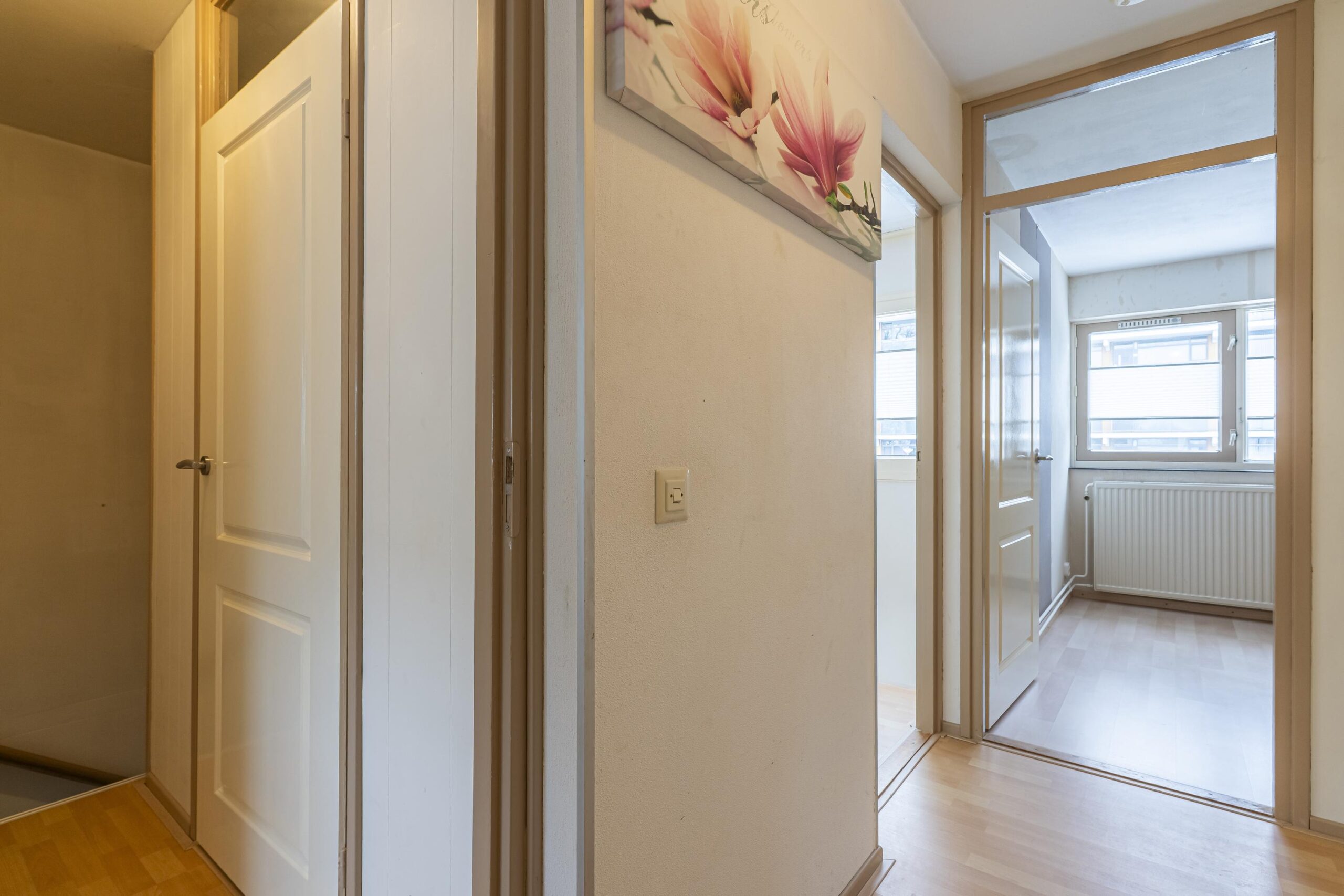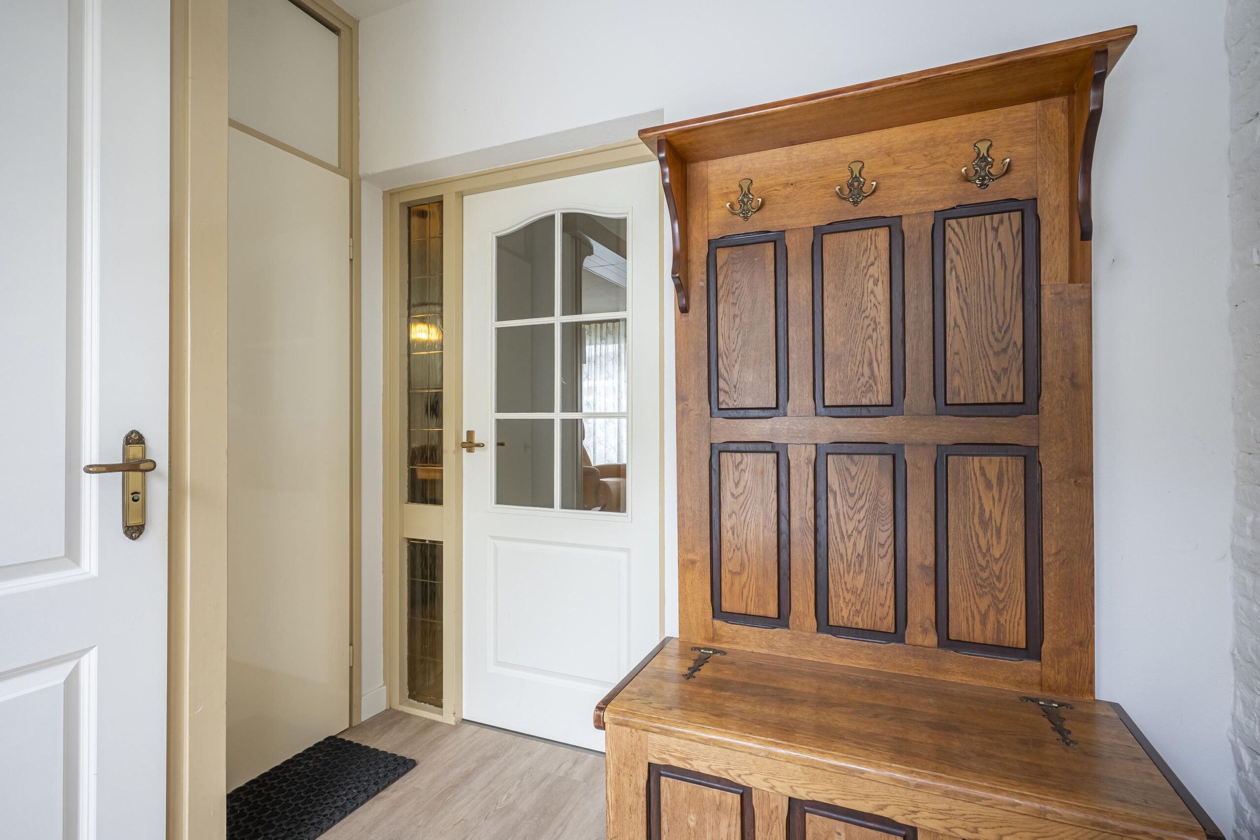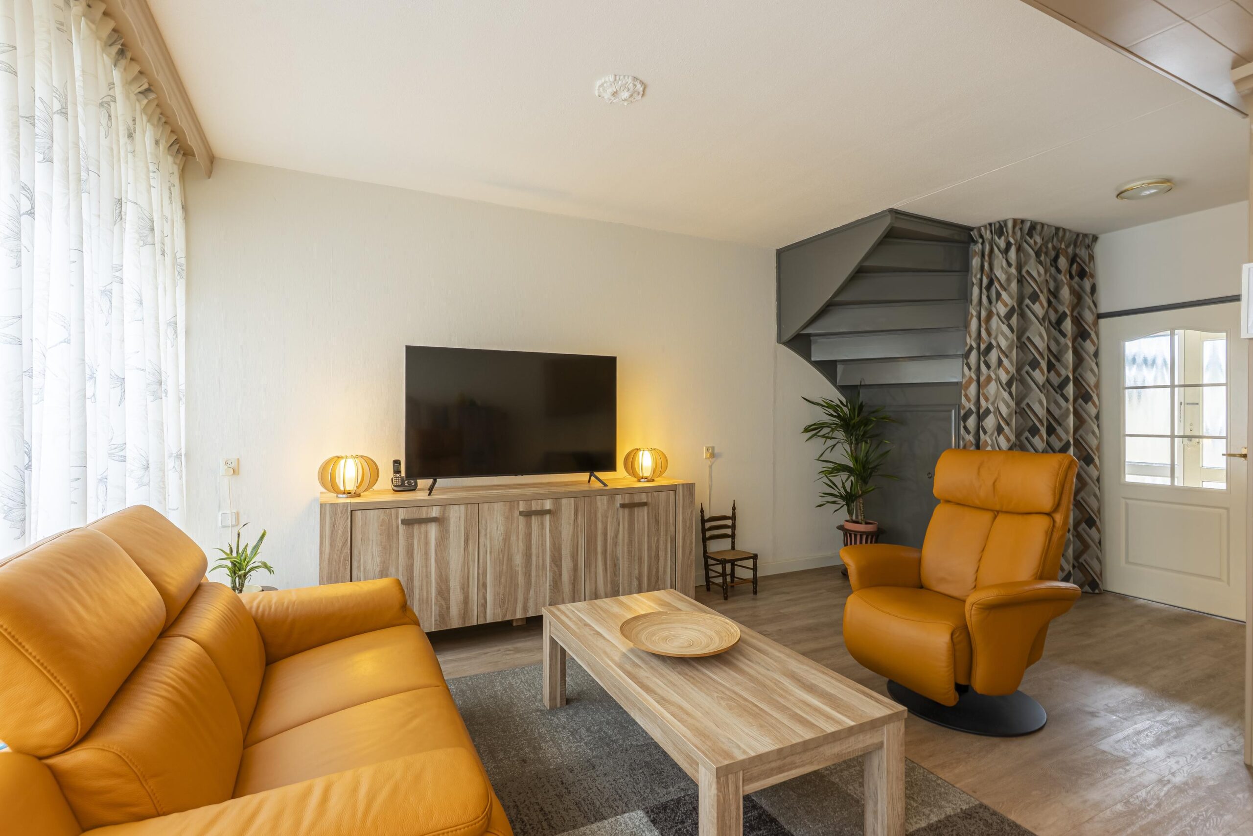 De entree biedt toegang tot de hal met toilet voorzien van fontein, meterkast en doorgang naar de woonkamer. De woonkamer is afgewerkt met een pvc-vloer en staat in open verbinding met de keuken, met uitzicht op de tuin.