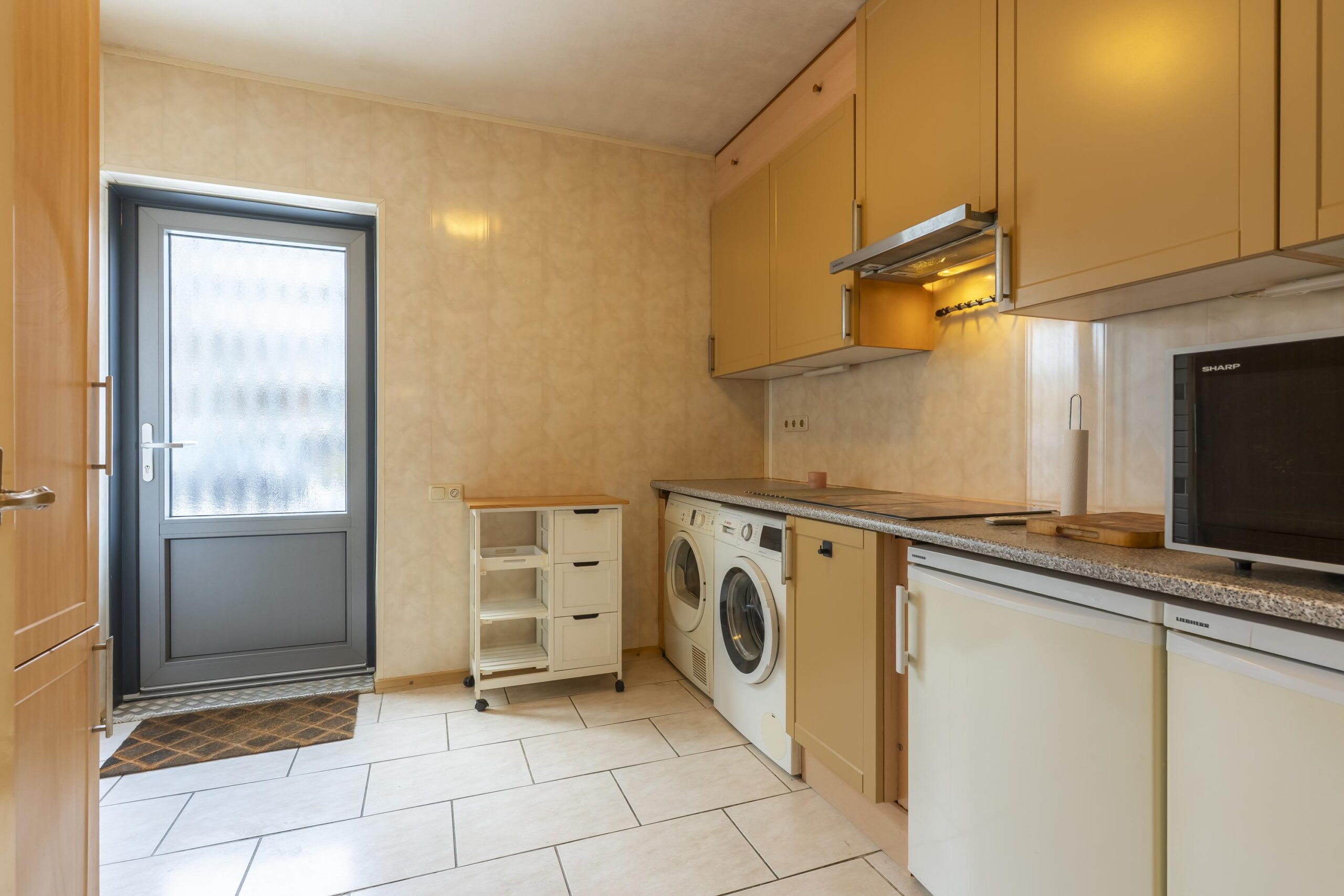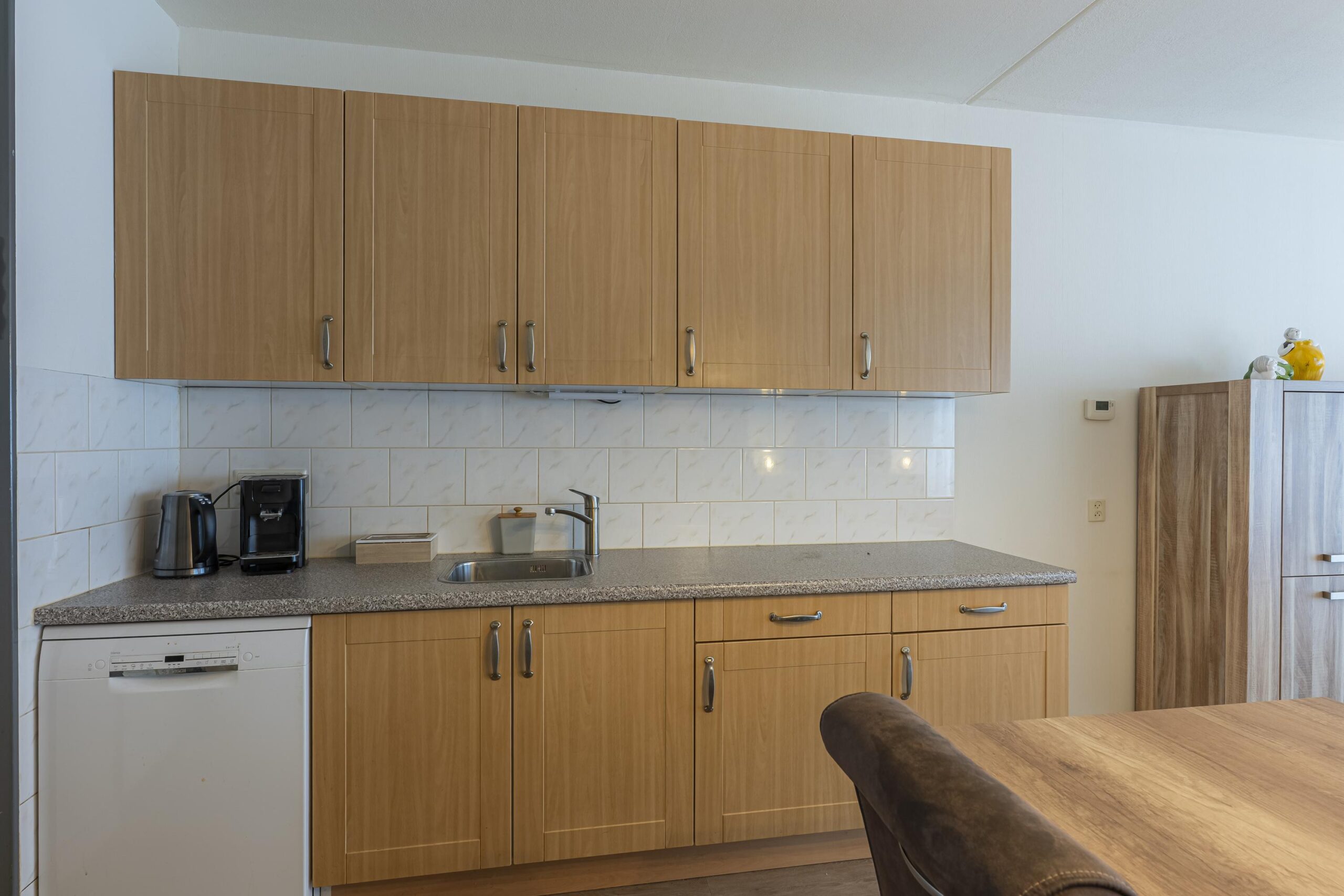 De open keuken is voorzien van een spoelbak en een aansluiting voor de vaatwasser. Vanuit de keuken bereikt u de bijkeuken, waar zich een aanrechtblad, inductiekookplaat, uittrekbare afzuigkap, aansluiting voor wasapparatuur en een koel-/vriescombinatie bevinden. Tevens is er een ontsluiting aan de voorzijde van de woning.