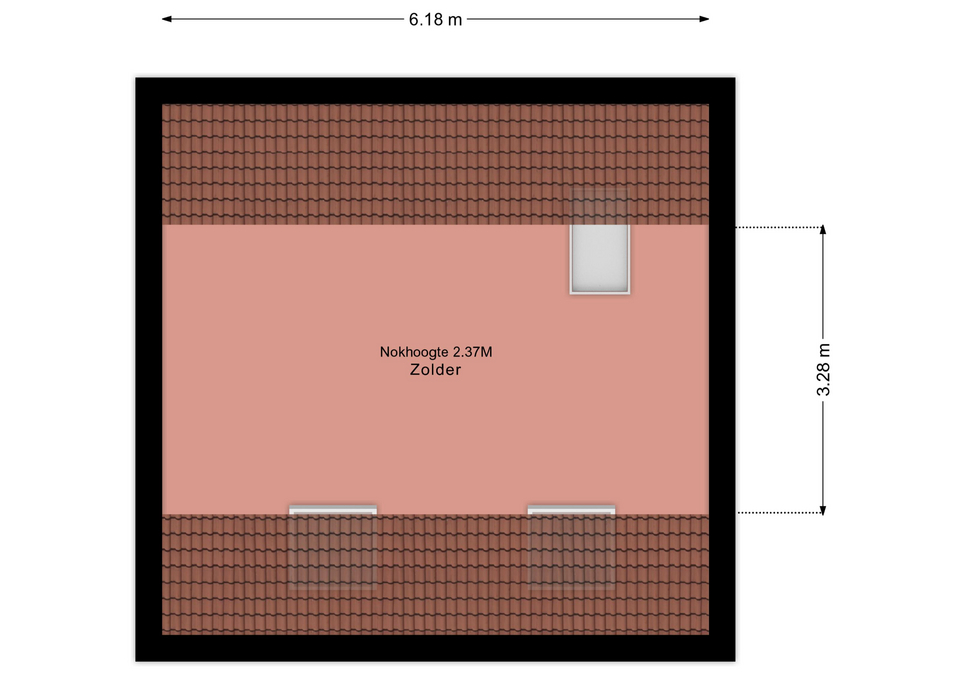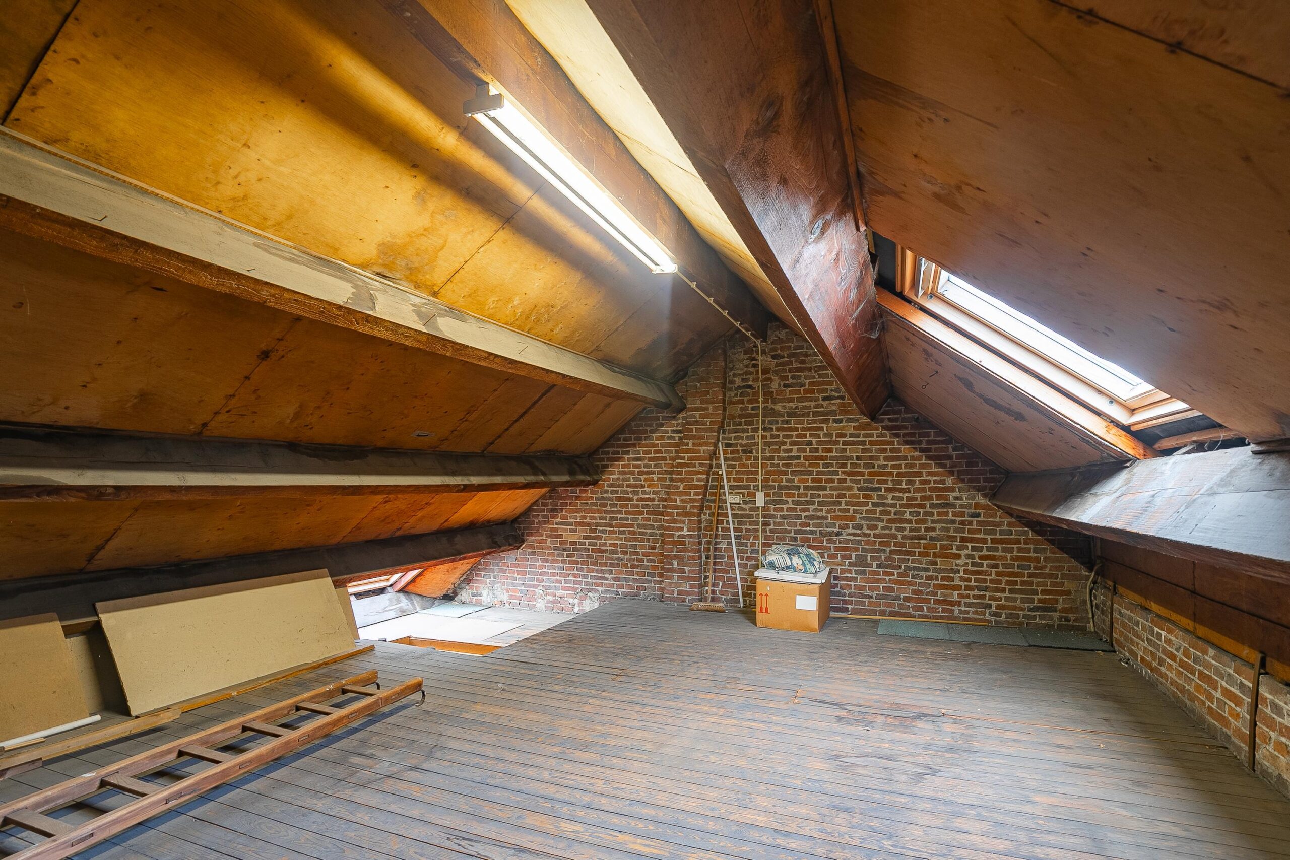 Via een vlizotrap te bereiken ruime zolder, ideaal als bergruimte en voorzien van twee dakramen.