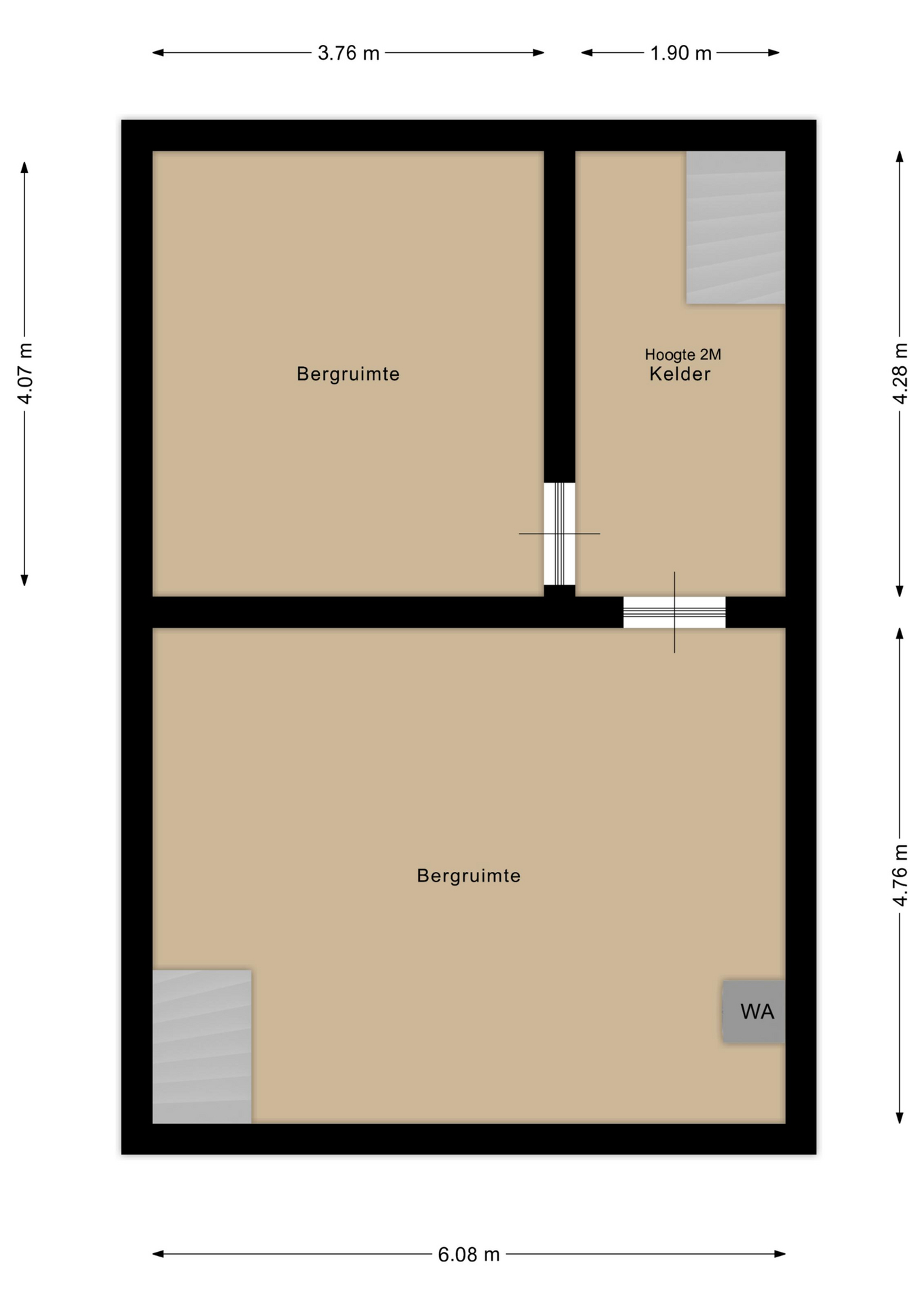 De woning beschikt over een ruime kelder, verdeeld in twee royale bergruimtes van ca. 29 m² en 16 m². Deze ruimtes bieden volop opslagmogelijkheden en zijn daardoor zeer praktisch in gebruik. Daarnaast bevinden zich in de kelder de aansluitingen voor het witgoed.