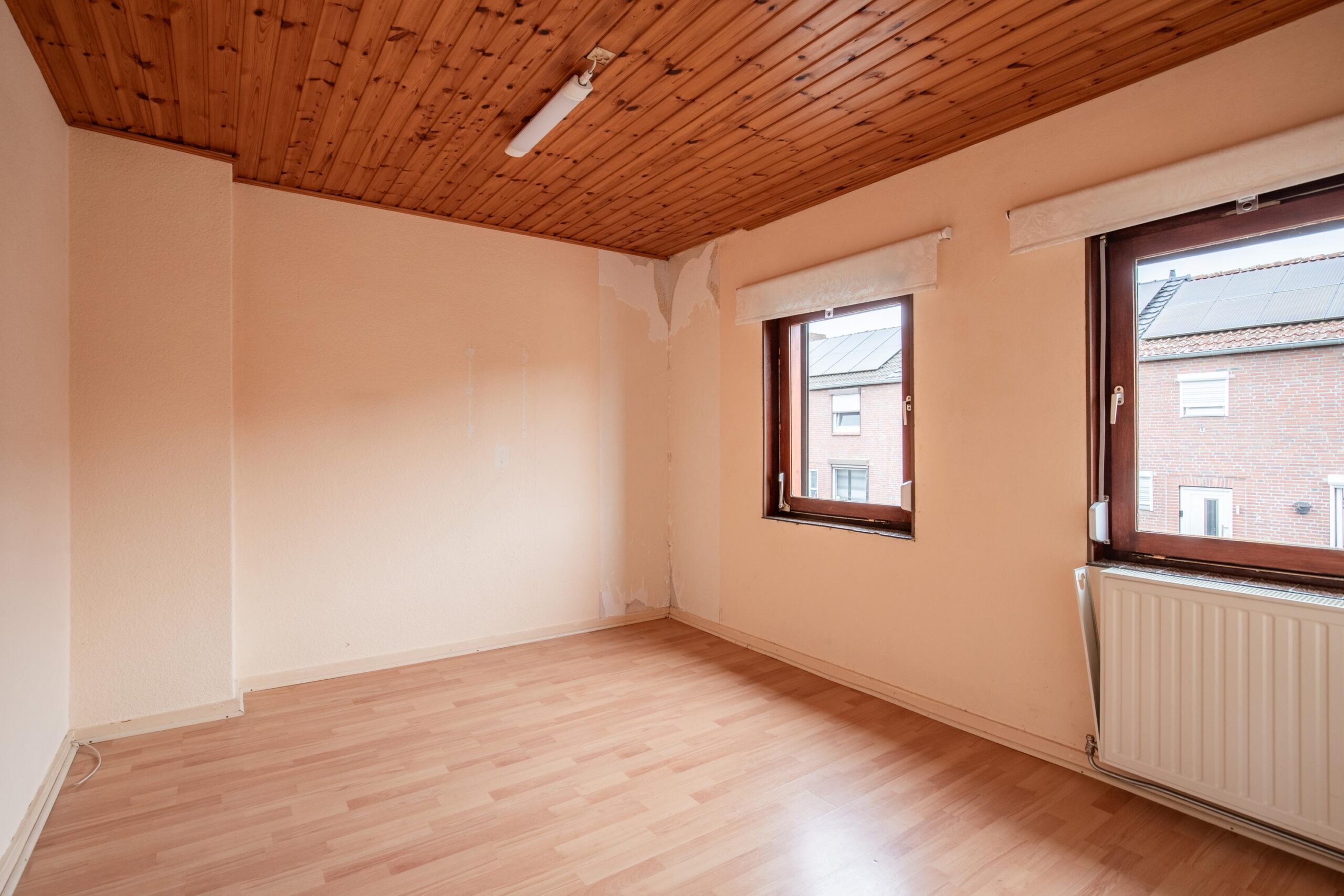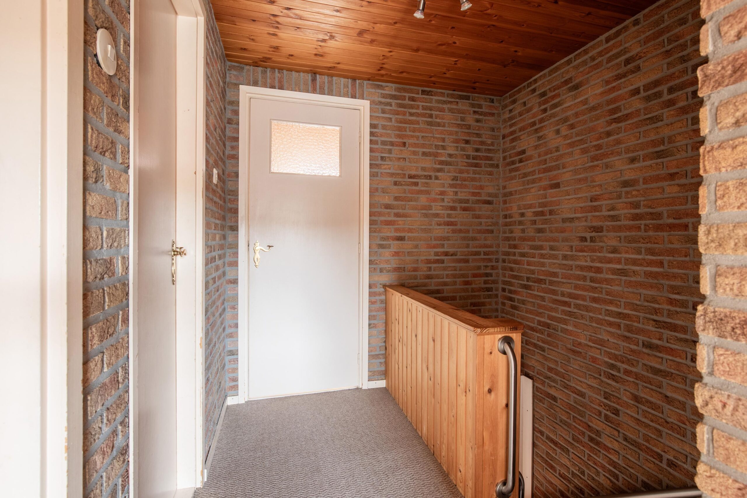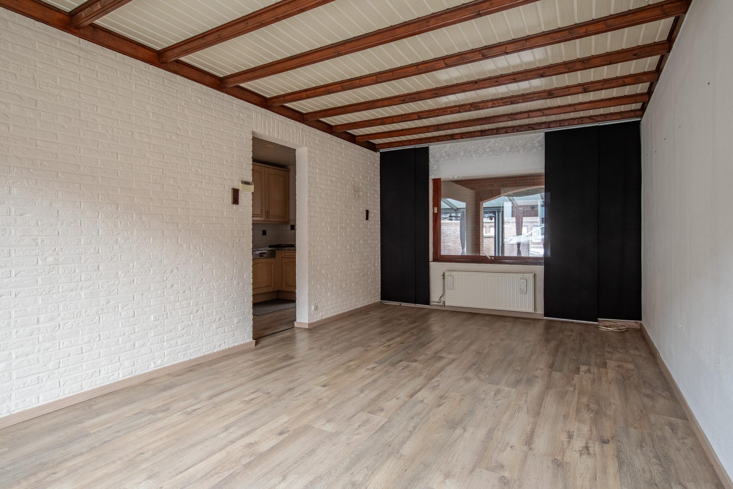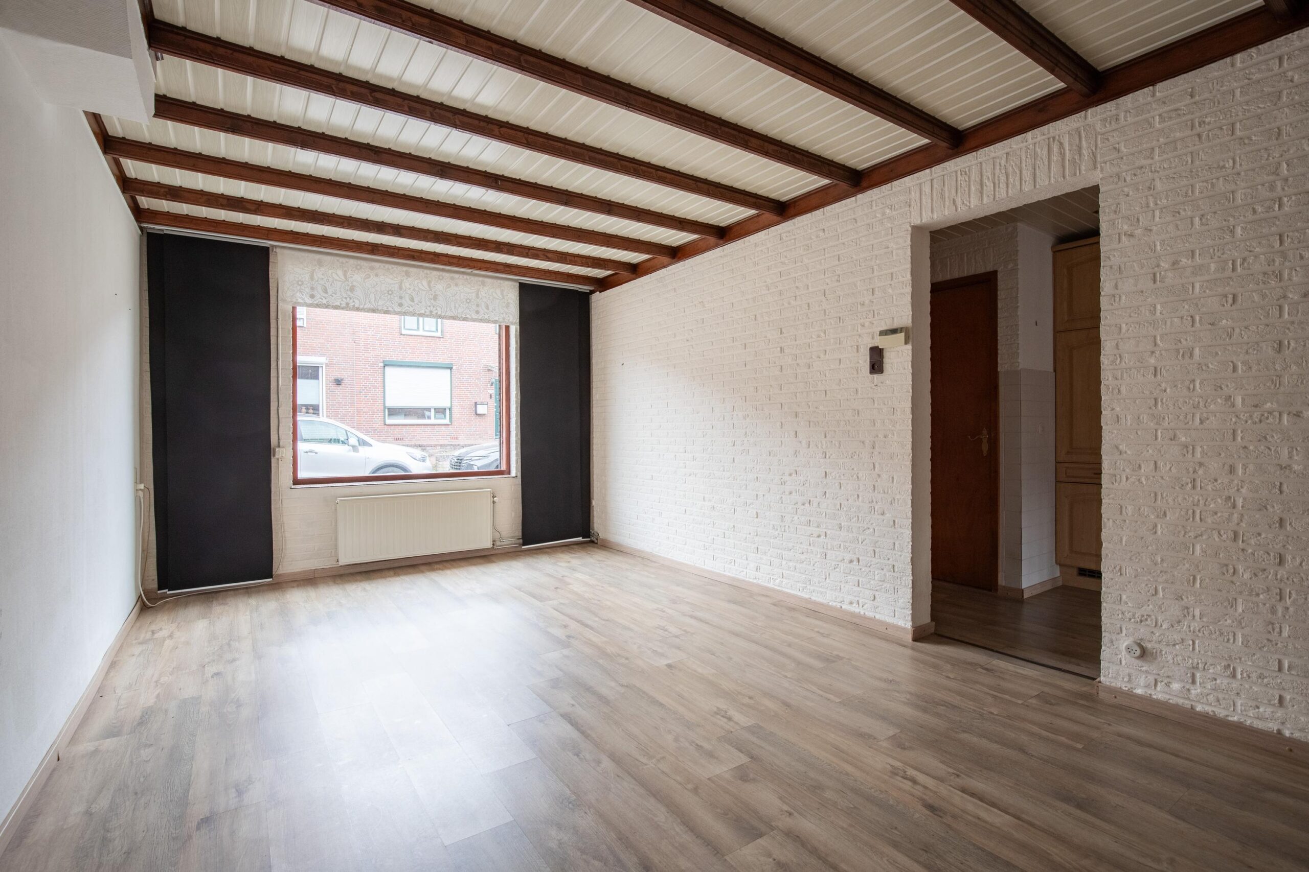 De doorzonwoonkamer is licht en ruim, met deels schoon metselwerk wat zorgt voor een karaktervolle uitstraling.
