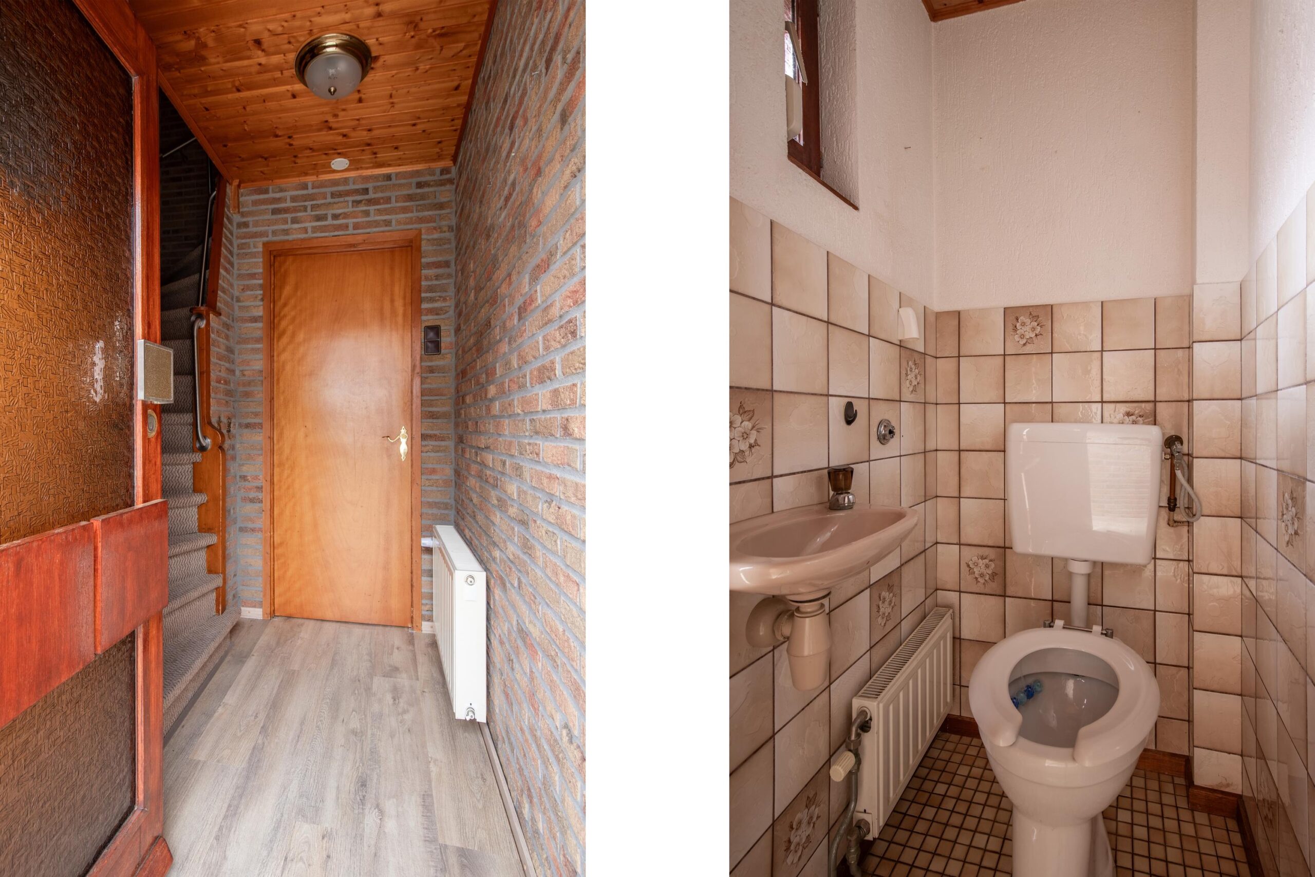 Via de entree/hal met vernieuwde Hager meterkast, trapopgang en een betegeld toilet met fontein betreedt u de woning.
