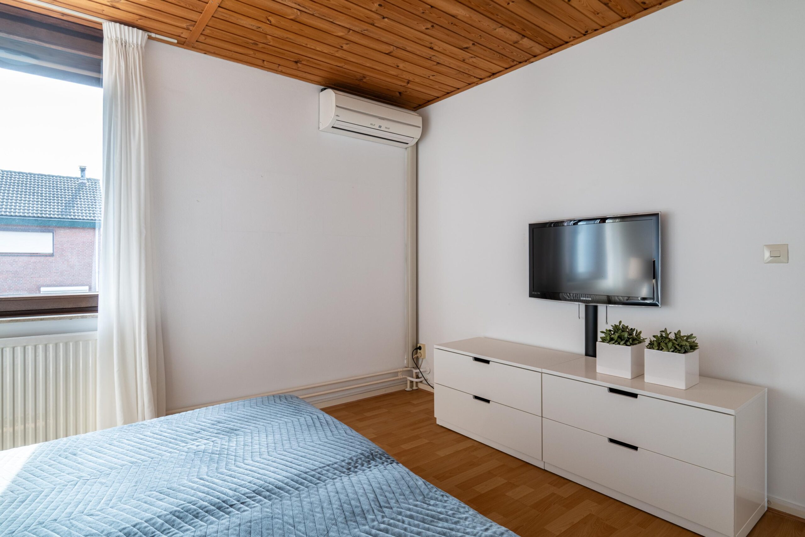 1) 3.52 m x 3.41 m — De master bedroom is uitgerust met een Fujitsu airconditioning.