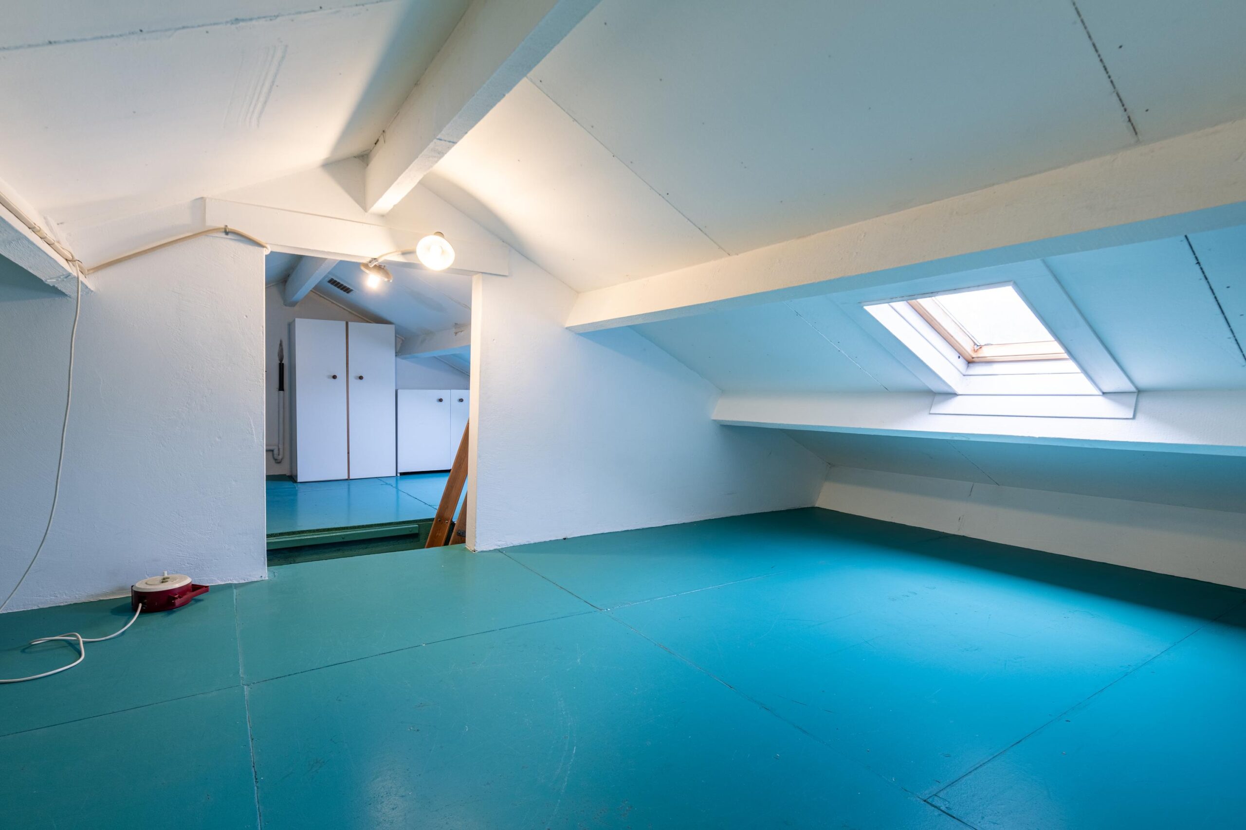 Middels een vlizotrap bereikt u de zolderverdieping met twee dakramen, ideaal te gebruiken als bergruimte.