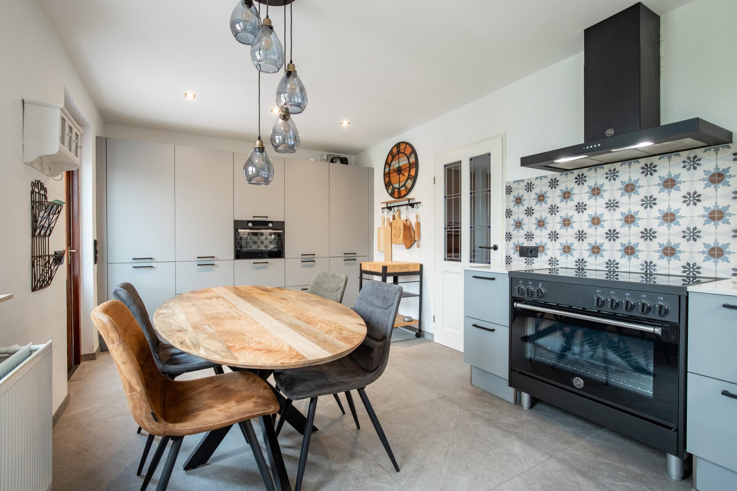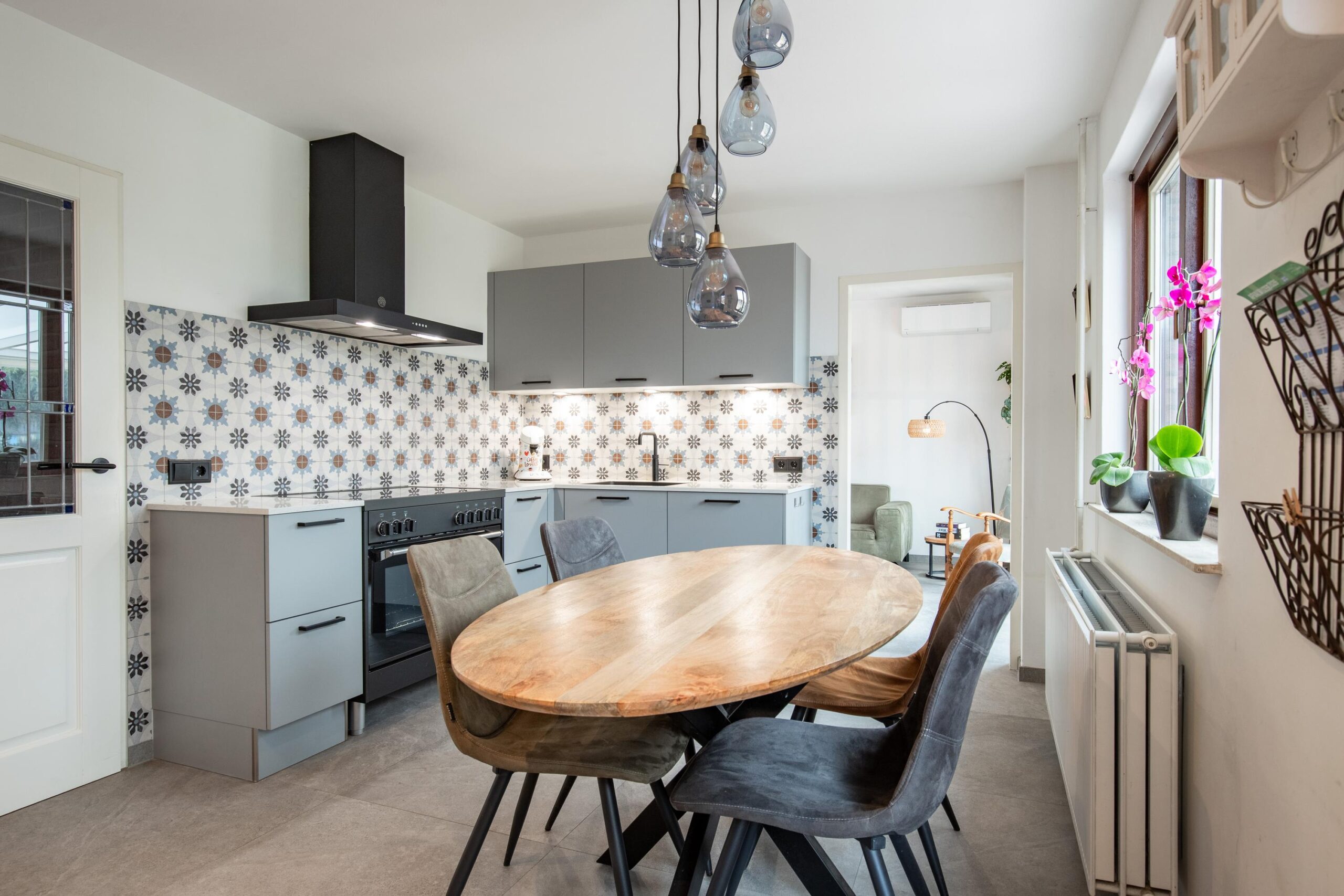 Vanuit de hal loop je door naar de ruime en recent vernieuwde keuken. Deze is opgesteld met oog voor zowel functionaliteit als comfort en biedt een mooi uitzicht op de tuin. De keuken is compleet uitgerust met diverse inbouwapparatuur, waaronder een inductiefornuis met oven, een afzuigkap, een combi-magnetron, een vaatwasser, koelkast en vriezer. De grote spoelbak met moderne Quooker kraan maakt het geheel compleet. Dankzij de praktische indeling is er voldoende werk- en opbergruimte aanwezig. Vanuit de keuken heb je bovendien directe toegang tot de overkapping in de tuin, wat het binnen- en buitenleven mooi met elkaar verbindt.