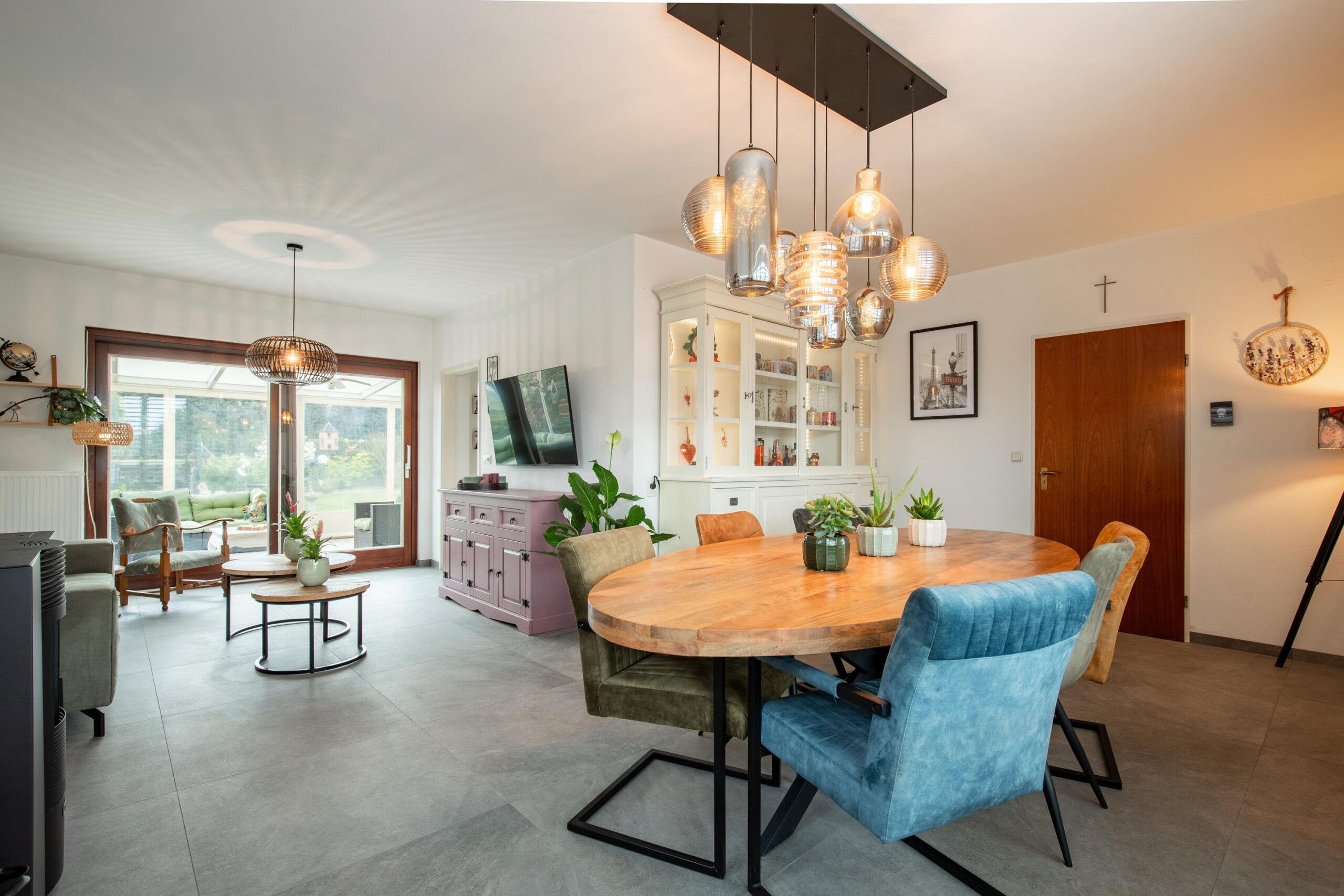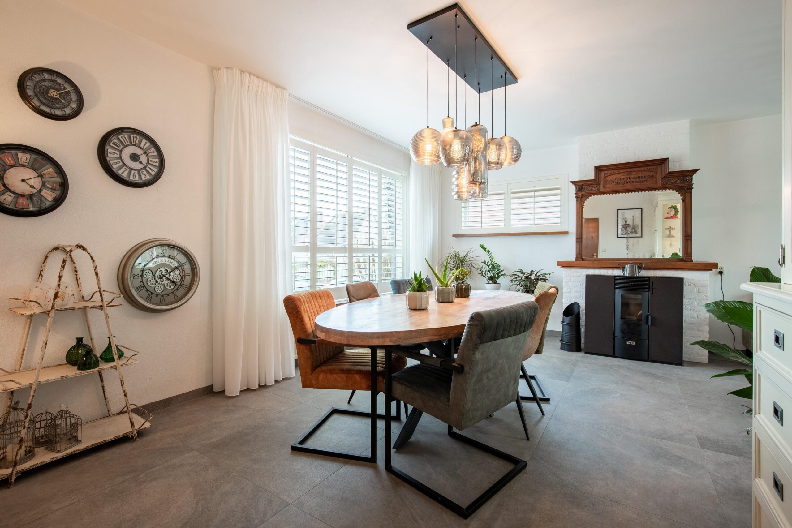 De eethoek sluit naadloos aan op de woonkamer en biedt volop ruimte voor een grote eettafel. Dankzij de vele ramen geniet je hier van een prettige lichtinval. De gehele woning is bovendien voorzien van HR++ glas, wat bijdraagt aan een goede isolatie en energiezuinigheid.