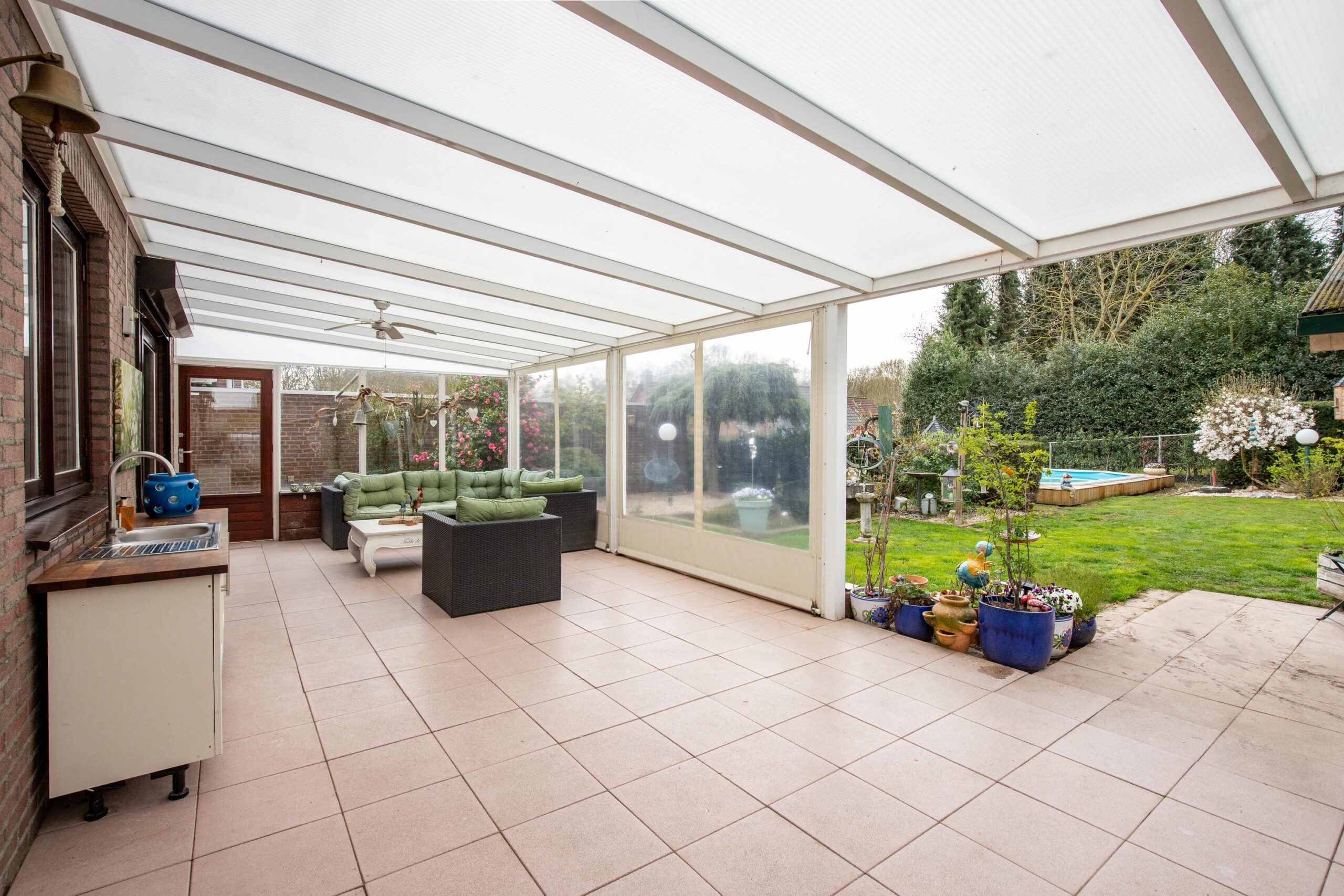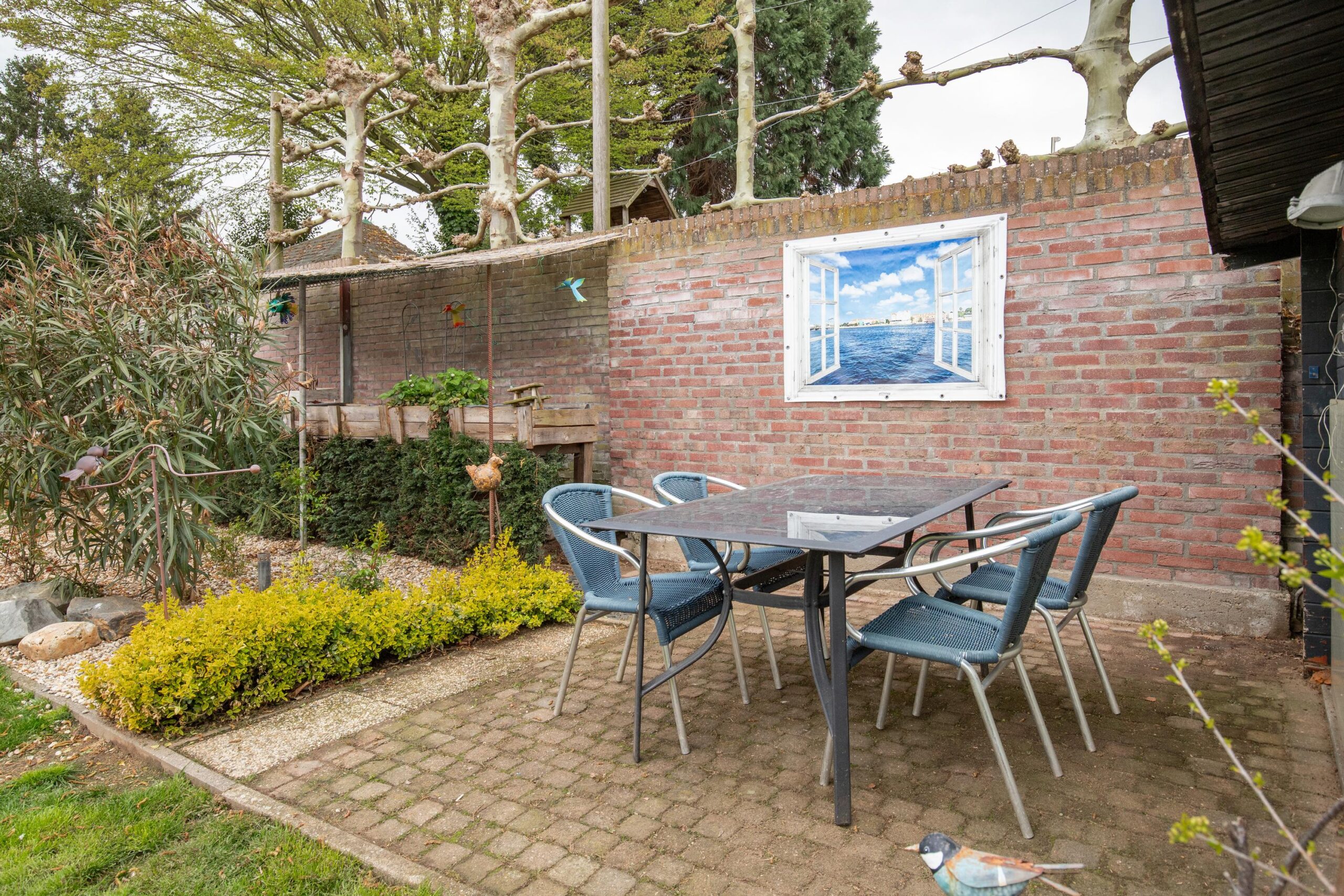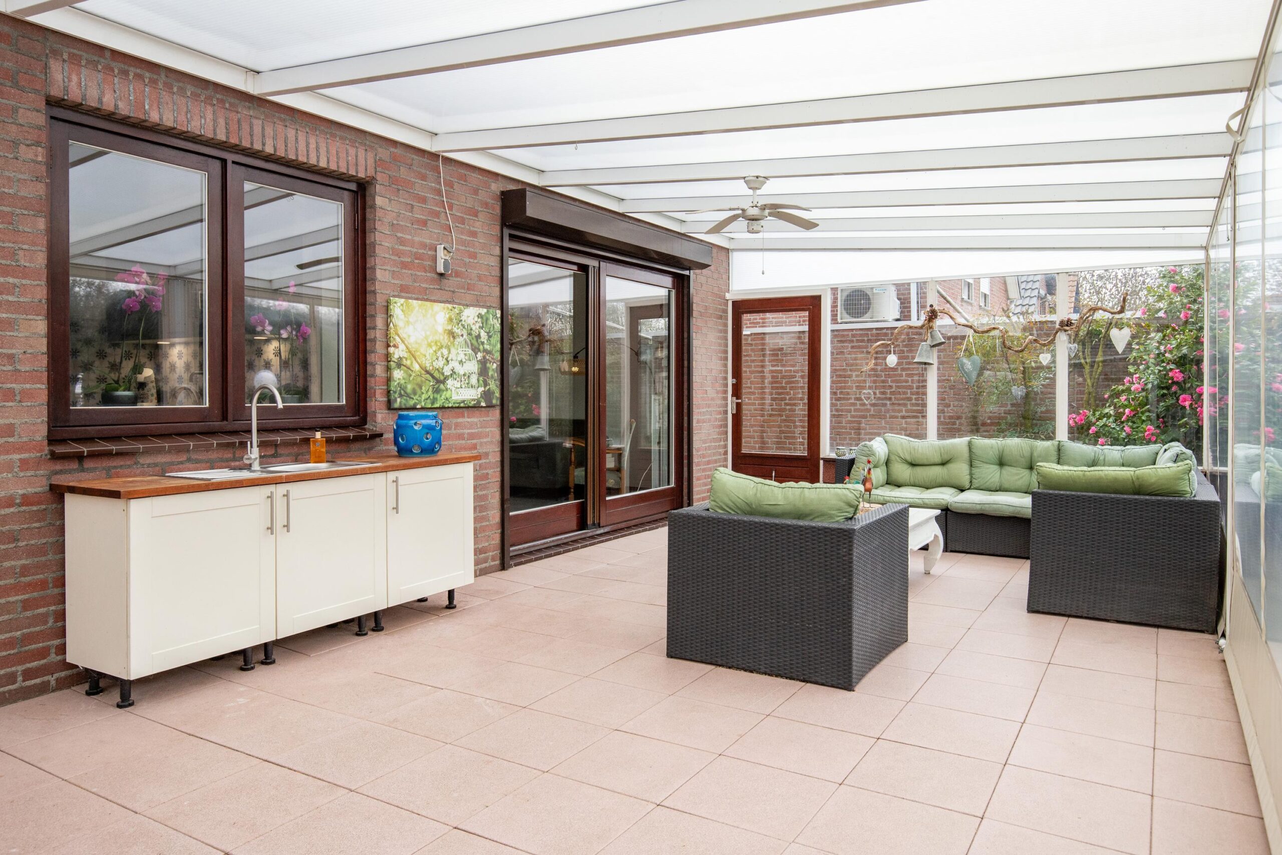De tuin is verzorgd aangelegd en biedt een fijne combinatie van groen, privacy en ontspanningsmogelijkheden. Aan de woning bevindt zich een ruime overkapping, die deels is afgesloten waardoor een serre-achtig effect ontstaat. Hierdoor kun je hier al vroeg in het voorjaar en tot laat in het najaar comfortabel buiten zitten, beschut tegen wind en weersinvloeden.
