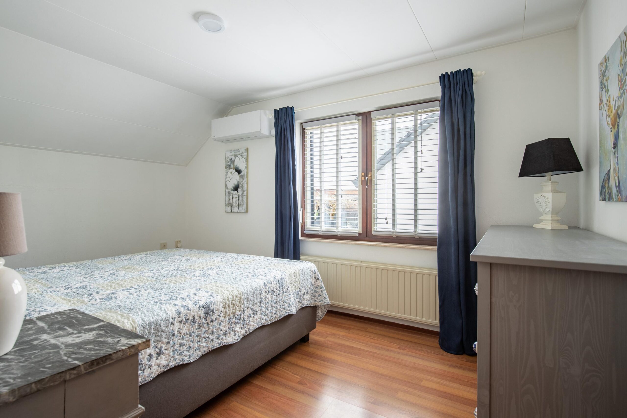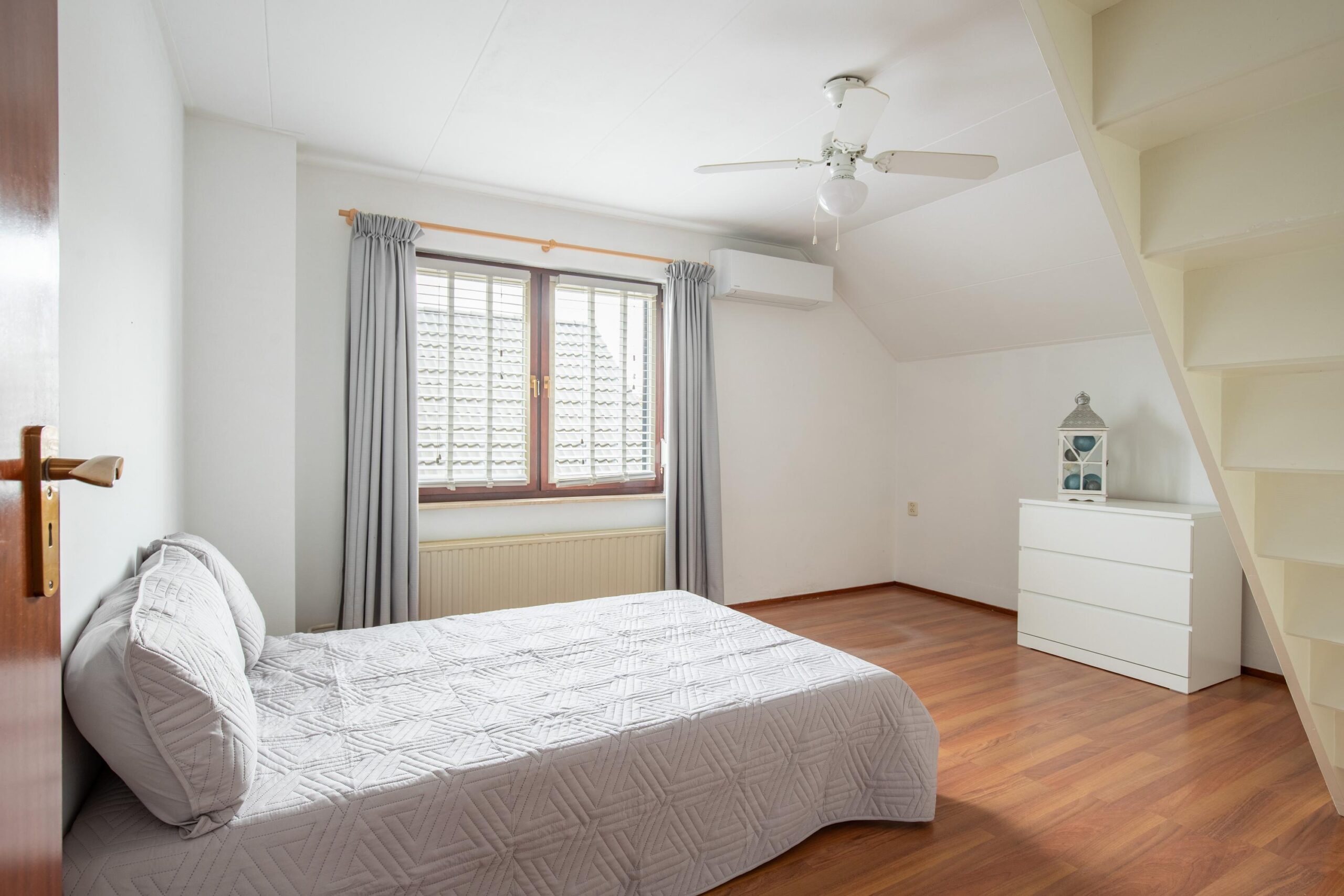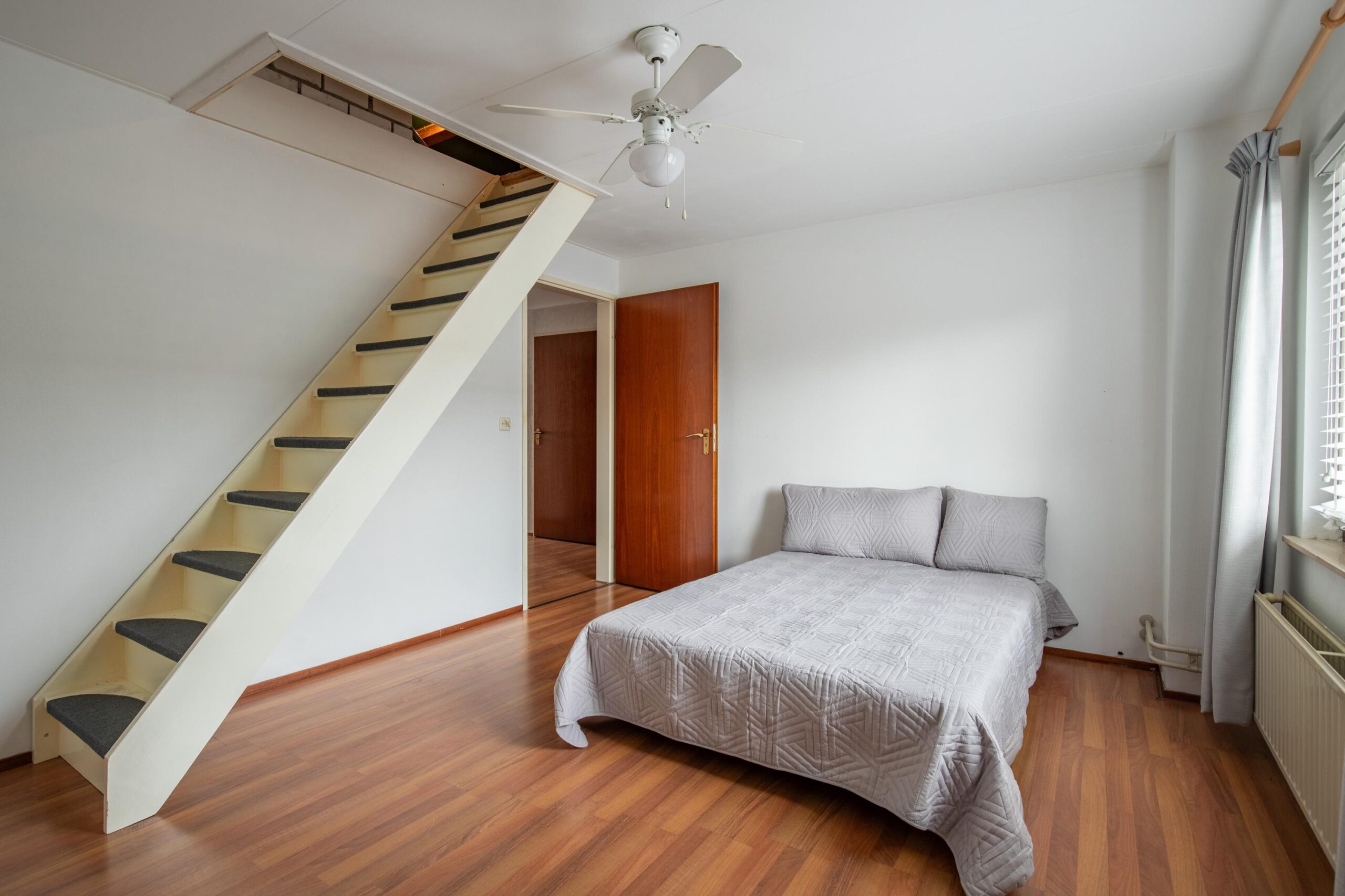 De verdieping beschikt over drie goed bemeten slaapkamers van circa 15 m², 11,8 m² en 9,7 m². De grootste slaapkamer biedt extra comfort dankzij een vaste trap naar de bergzolder, wat zorgt voor extra bergruimte of mogelijkheden voor verdere invulling.