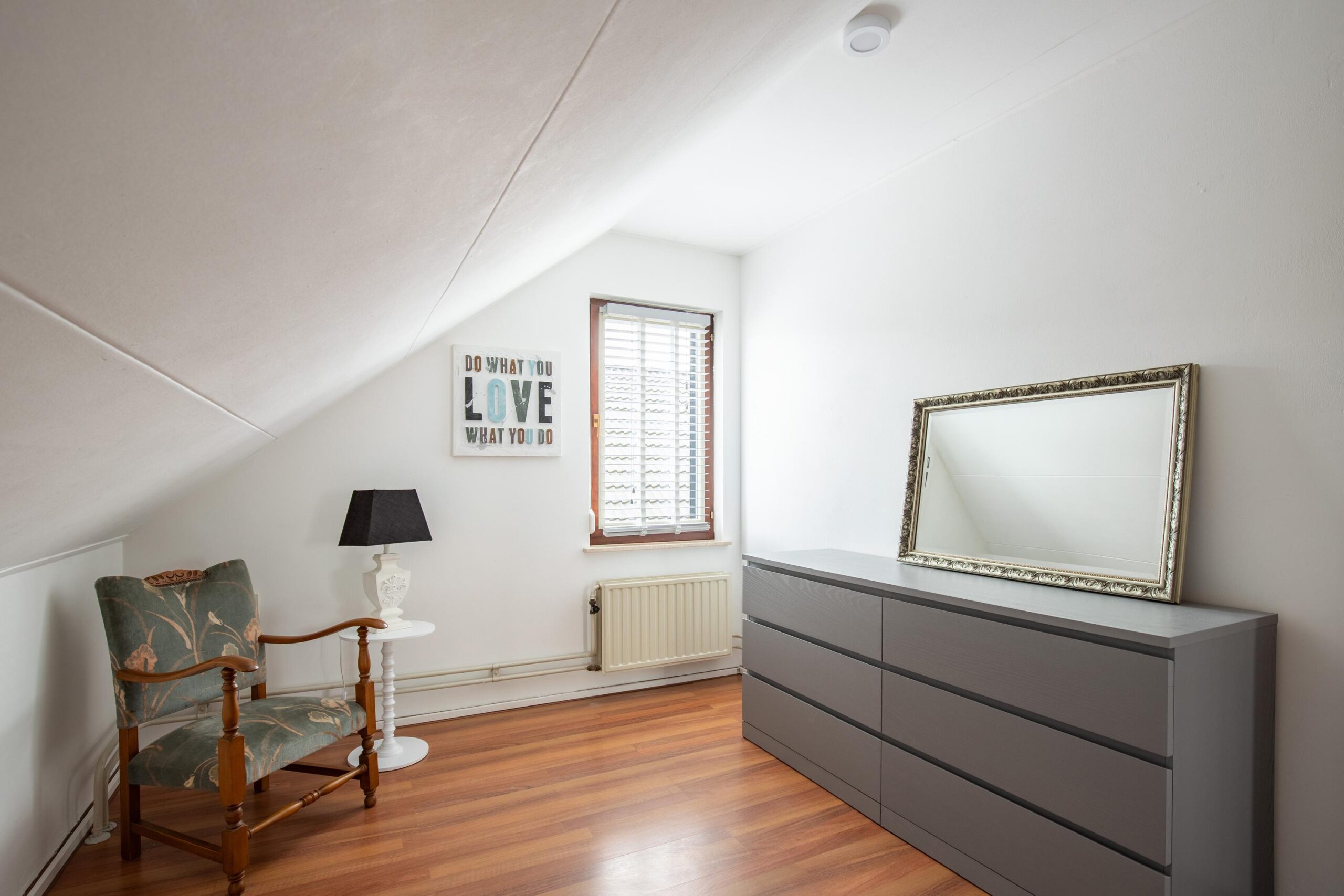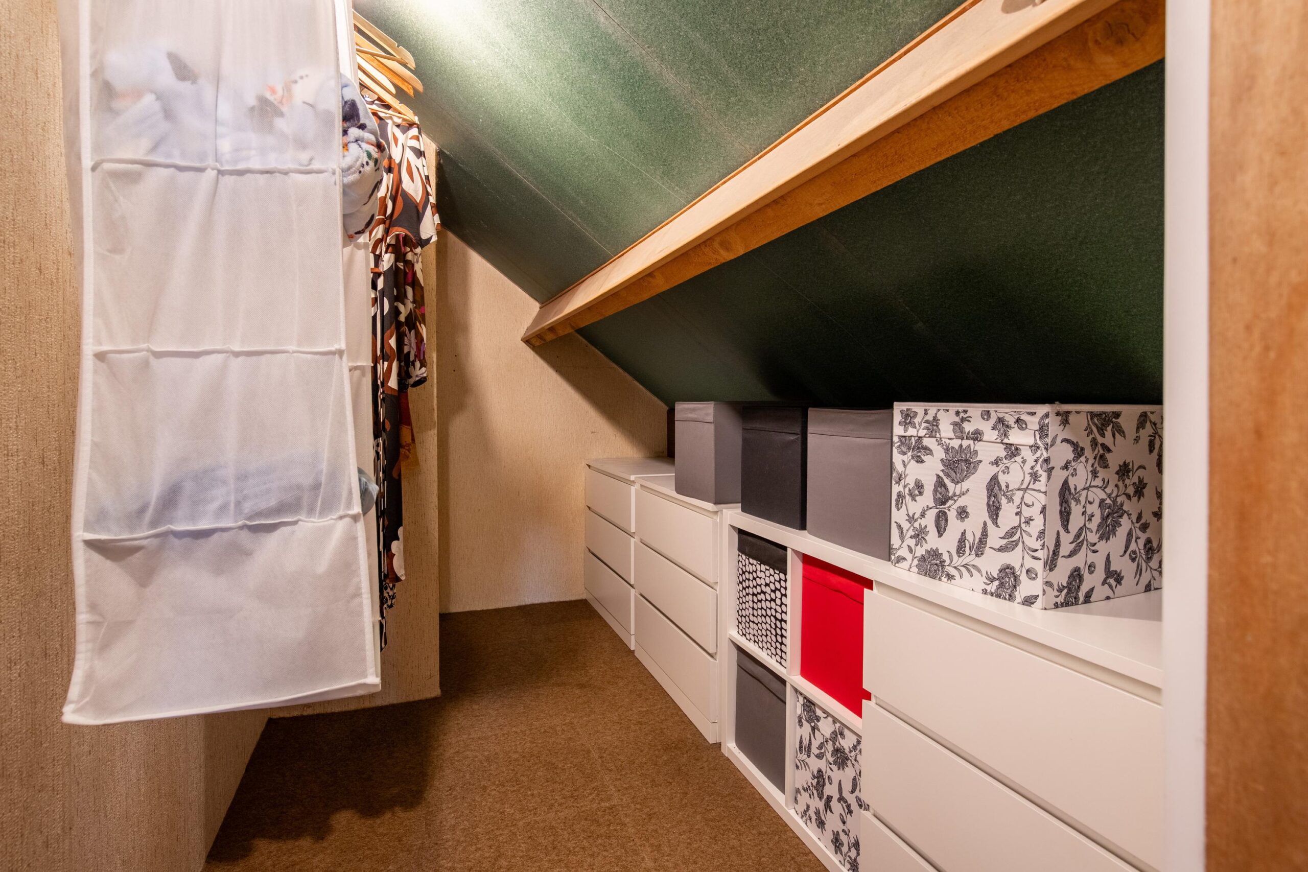 Daarnaast is er een praktische bergruimte onder het schuine dak aanwezig. Hier bevinden zich de witgoedaansluitingen en is er voldoende ruimte voor het plaatsen van kasten en extra opslag.