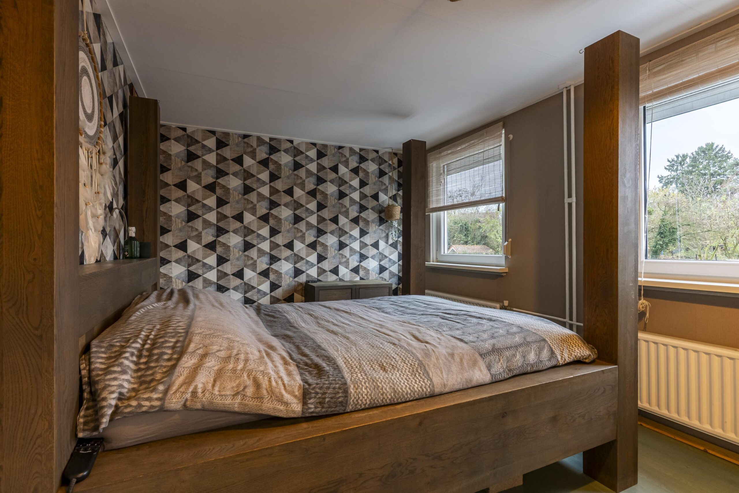 De slaapkamer aan de achterzijde, met uitzicht op de diepe tuin, beschikt over een inbouwkast en meet ca. 3,0 x 5,25 m.