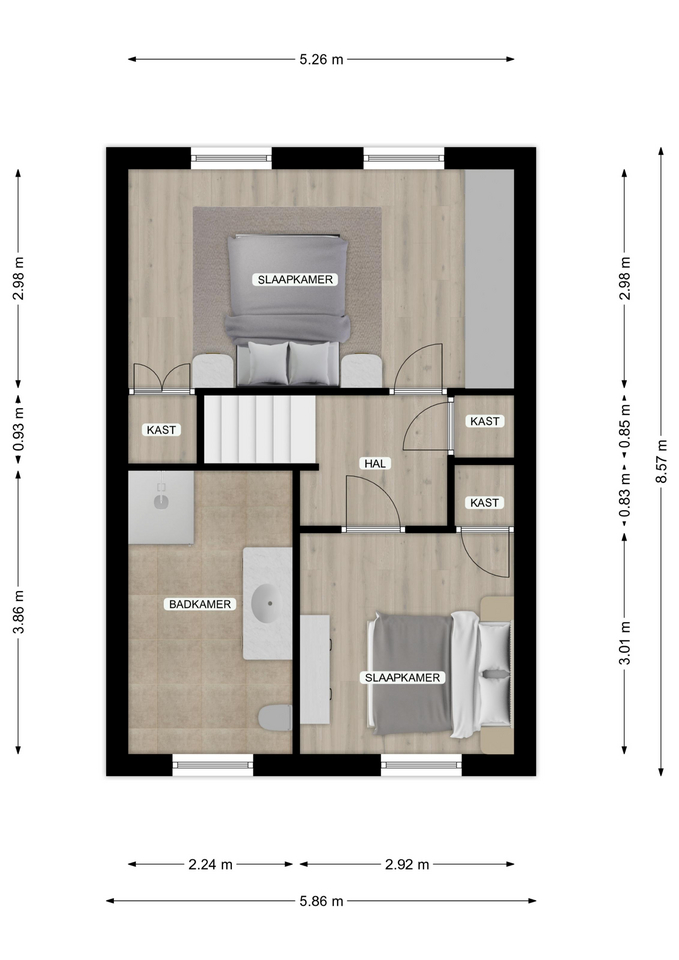 Beide kamers zijn afgewerkt met een laminaatvloer.