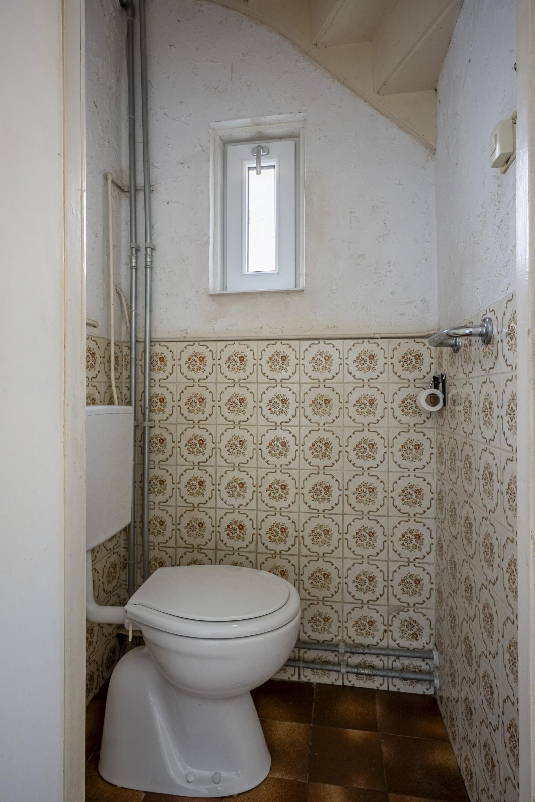 Via de oprit en voortuin (gemeentegrond) bereik je de entree van de woning. In de hal bevinden zich de trapopgang naar de eerste verdieping, de meterkast en een deels betegeld toilet.