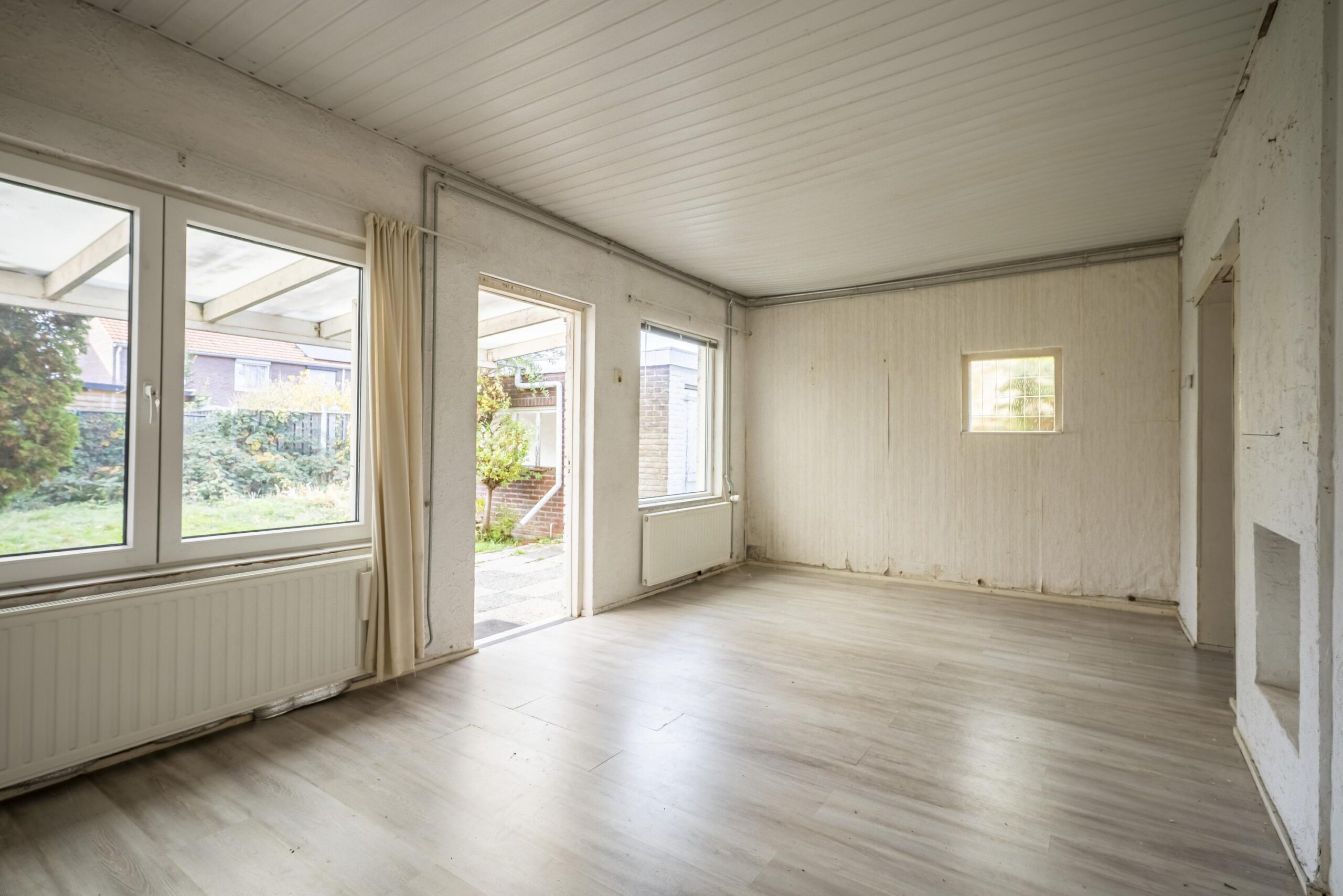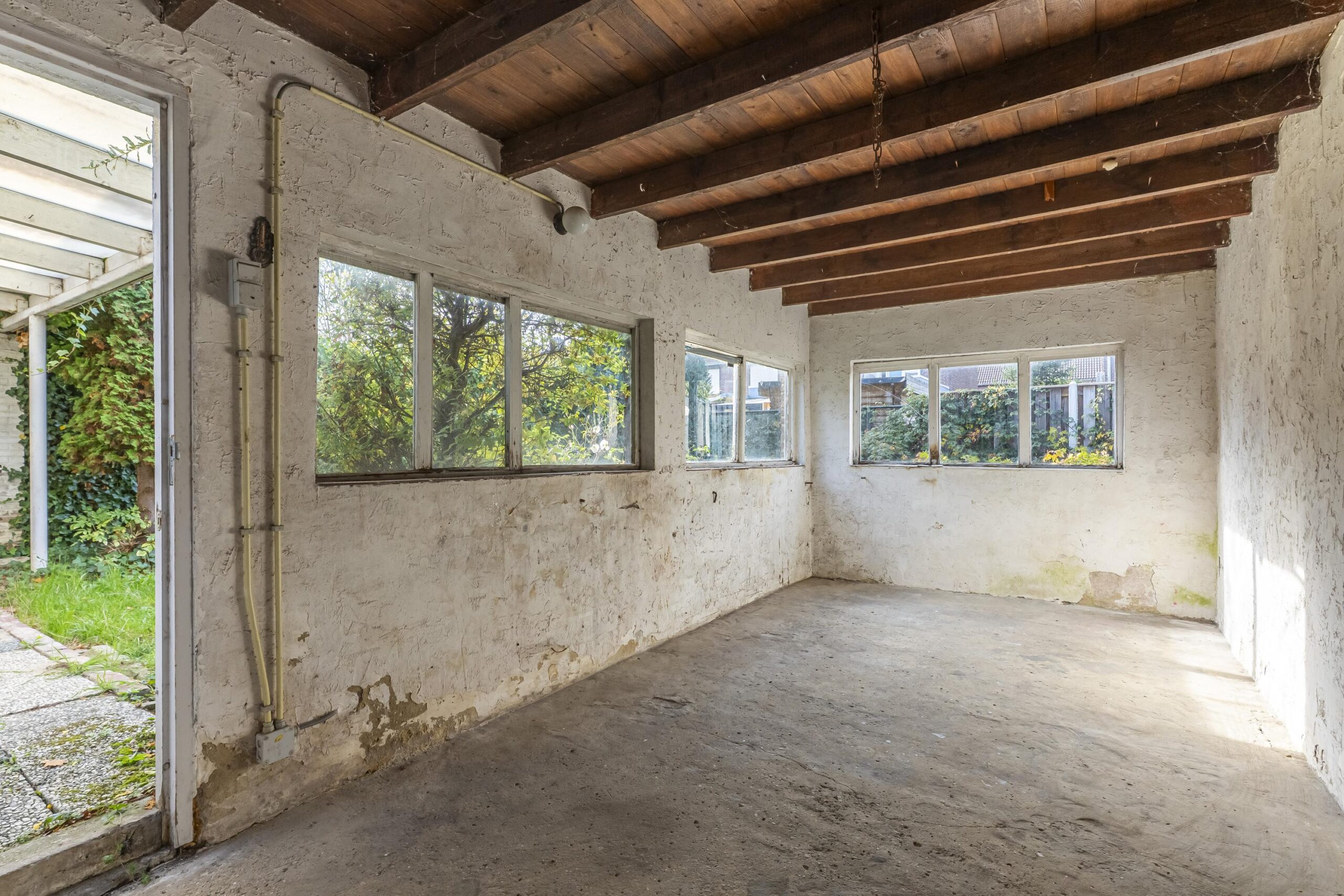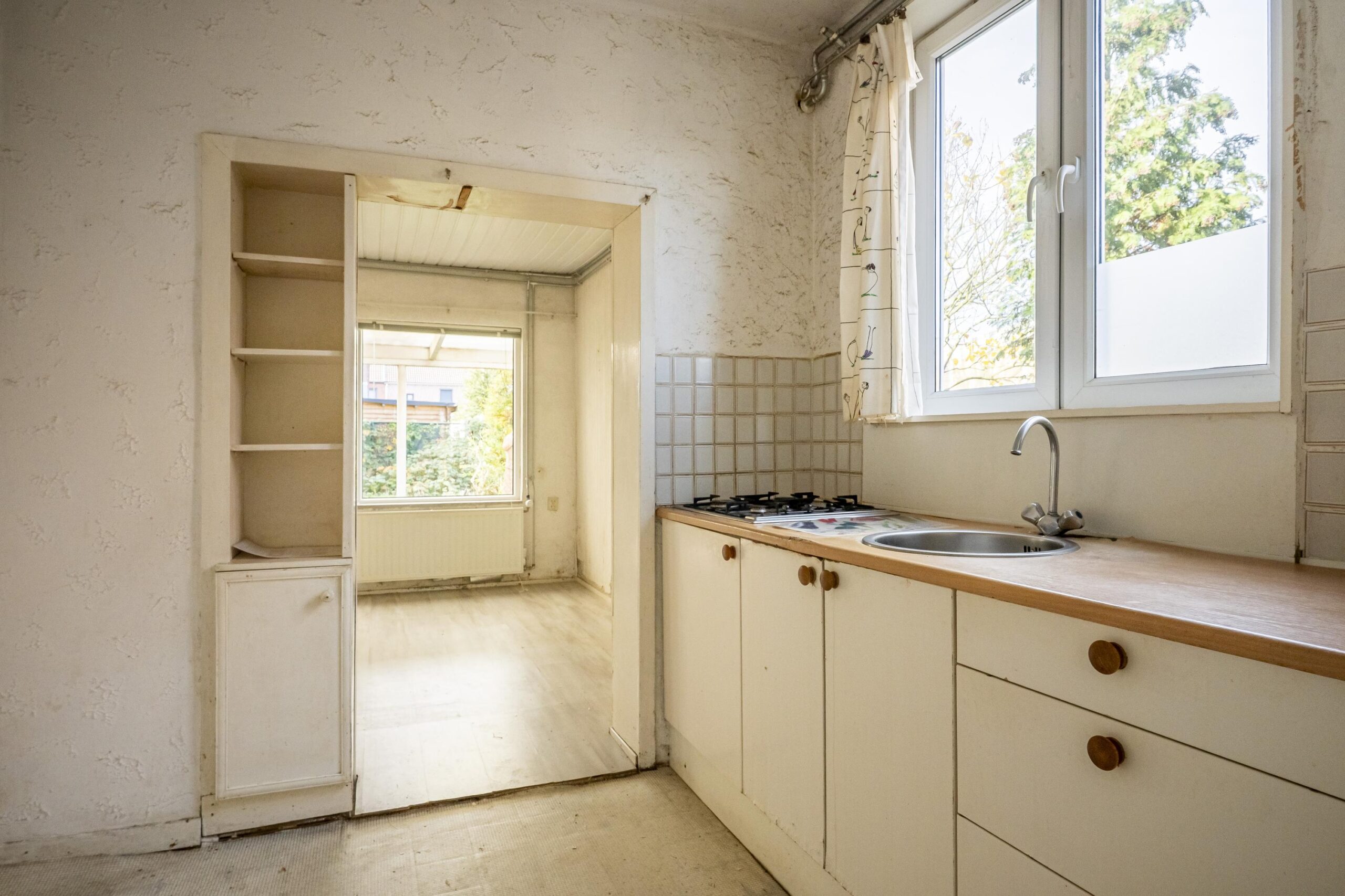 De keuken bevindt zich aan de zijkant en is uitgerust met een spoelbak en een 4-pits gaskookplaat, met prettig uitzicht op de oprit. De ruime aanbouw aan de achterzijde biedt volop mogelijkheden voor een eet- of zitgedeelte en staat in directe verbinding met de achtertuin.