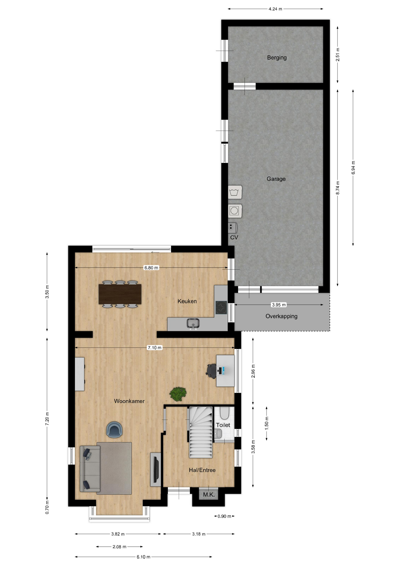 - Oppervlakte gebouwgebonden ca. 7 m2