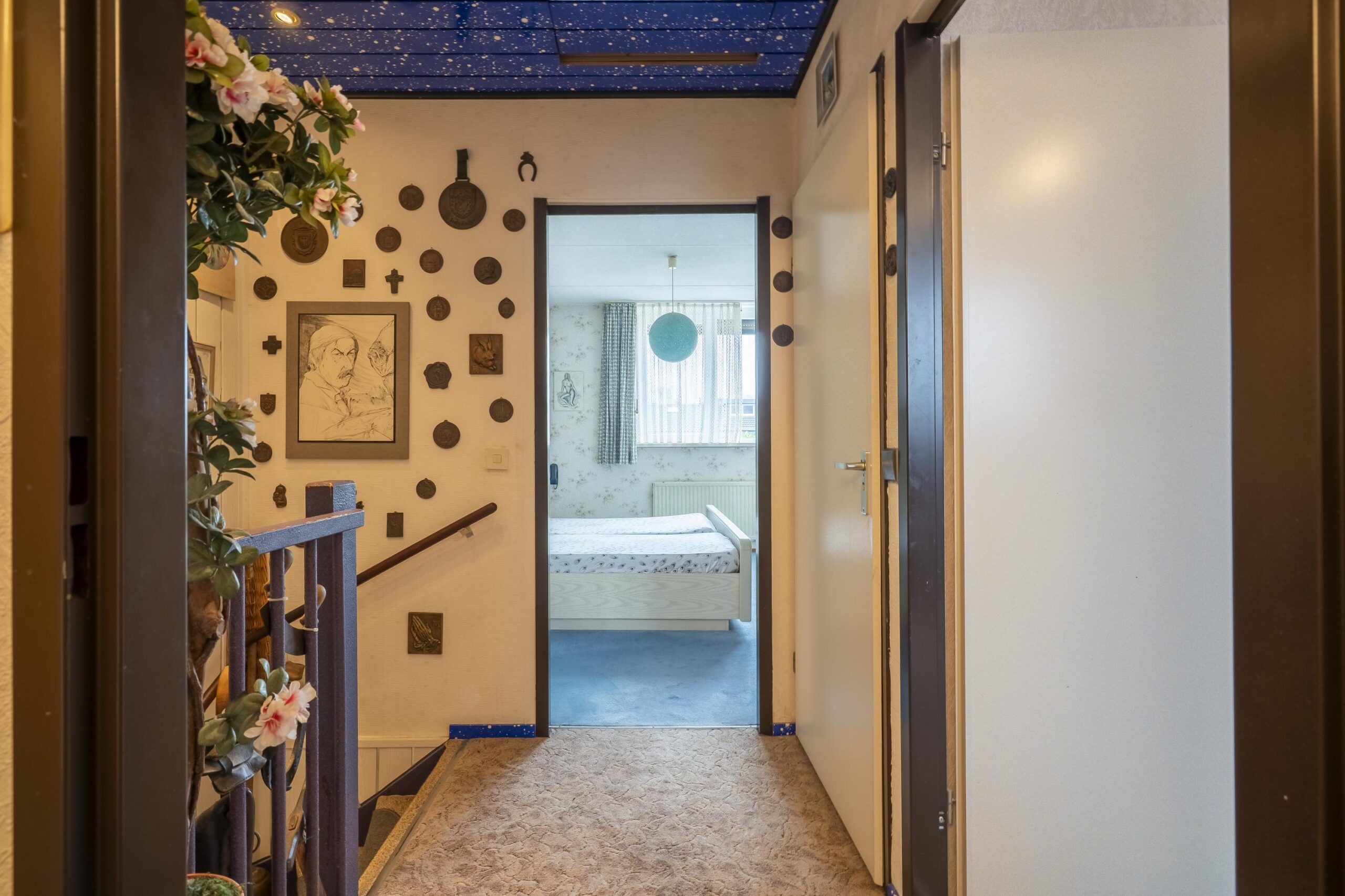 Eerste verdieping: overloop, drie slaapkamers met laminaatvloer. De badkamer met ligbad, douche, vaste wastafel, 2e toilet en wasmachine-aansluiting.